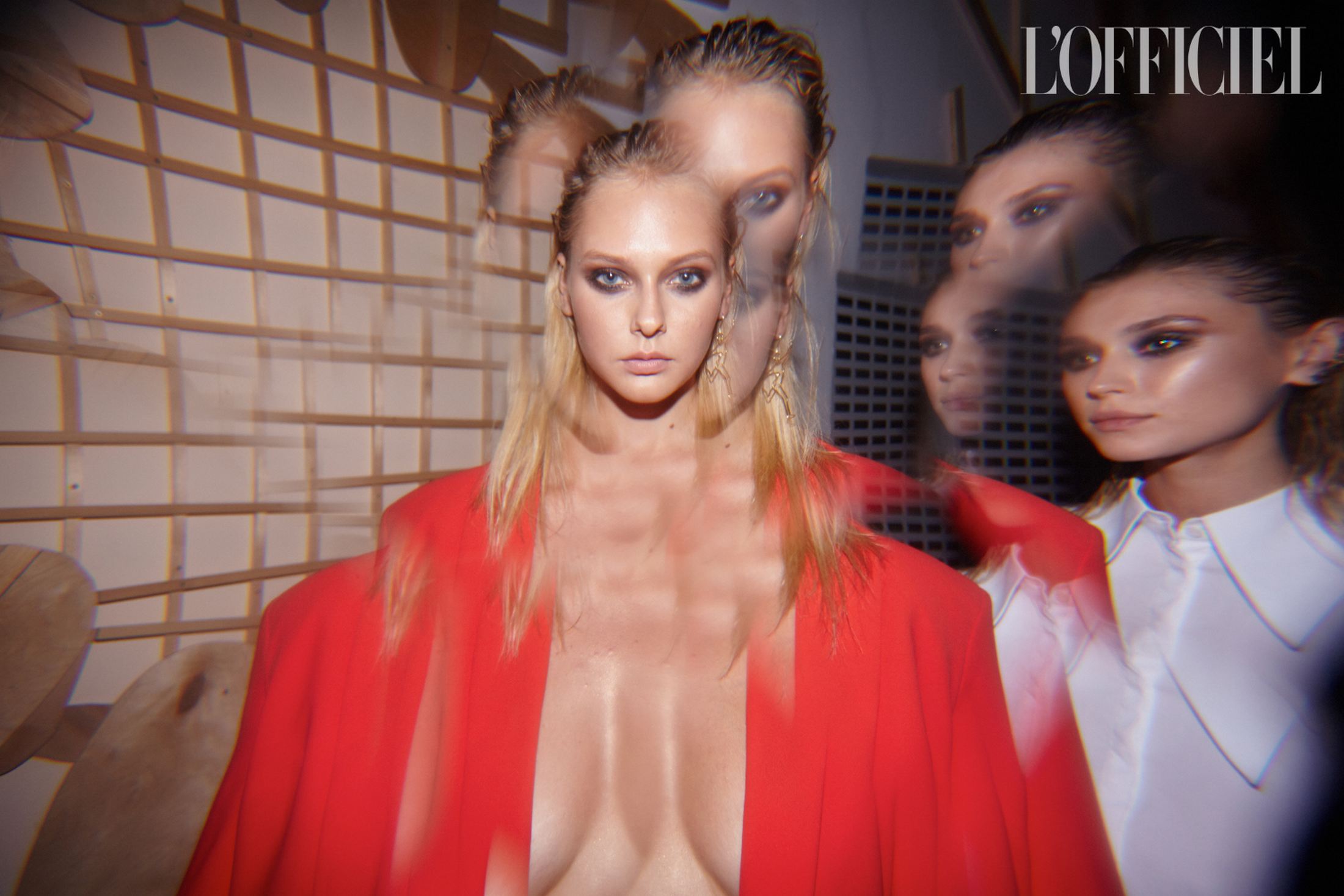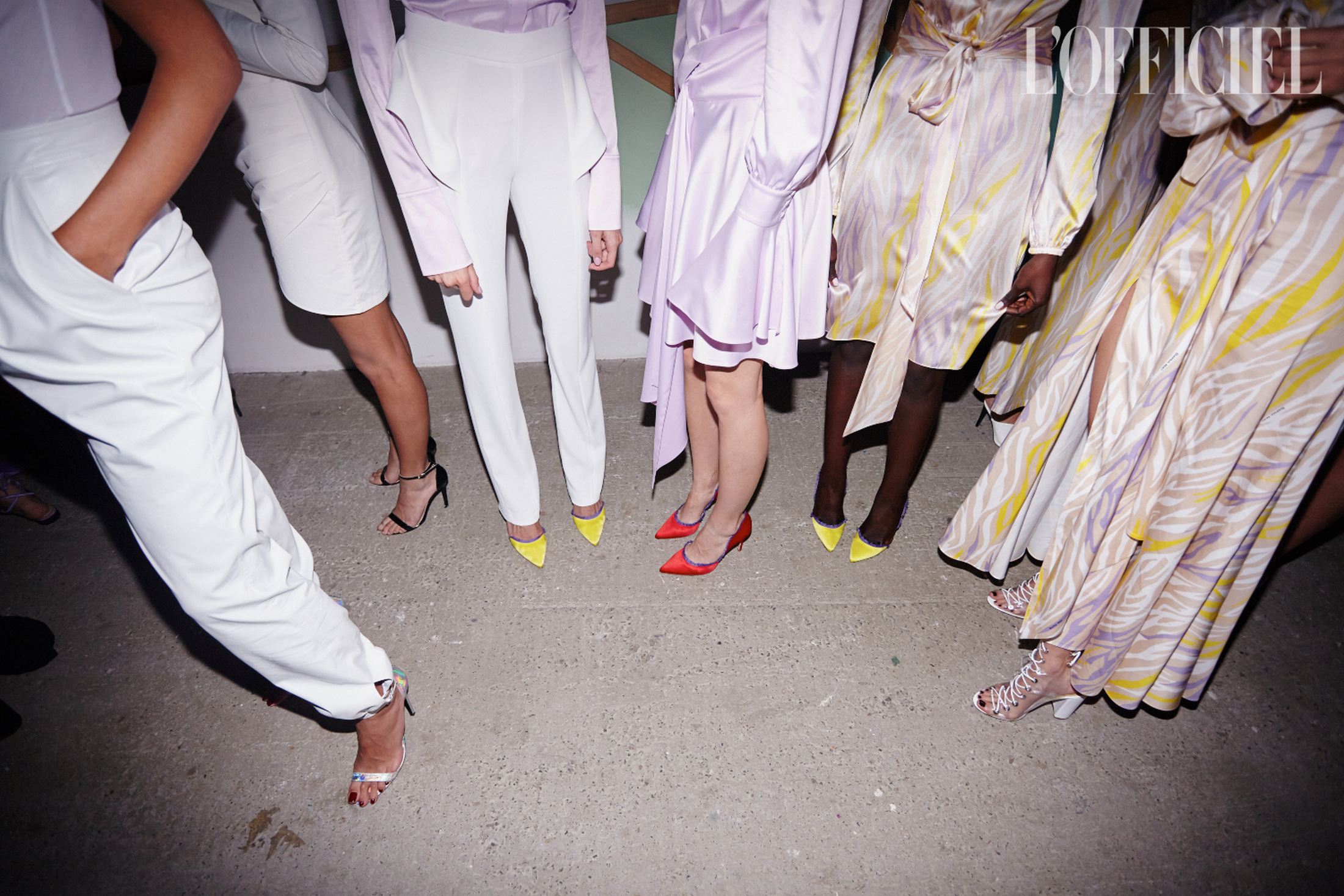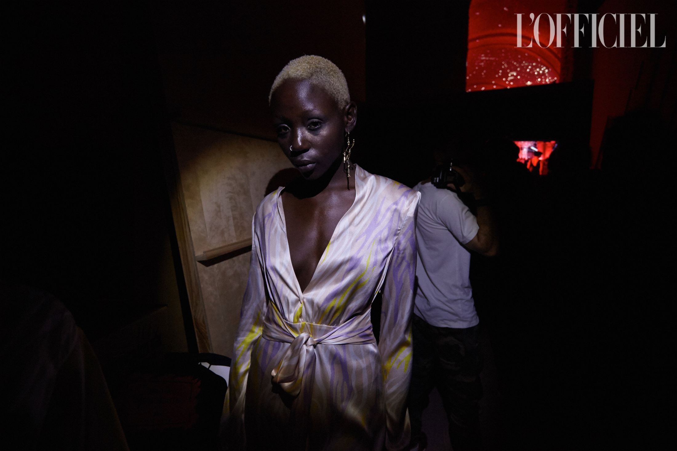 Фраки на голое тело, плащи из красной лакированной и голографической экокожи, костюмы из шелка, словно усыпанного глиттером, платье с рукавами-буфами и из блестящего шифона с капюшоном цитировали разноплановые образы Грейс с вечеринок 70-х годов. Завершала показ серия нарядов для особых случаев: вечерние шелковые костюмы, комбинезоны с акцентированными плечами и глубоким декольте, а также платья в пайетках — все запринтованные "зеброй".
