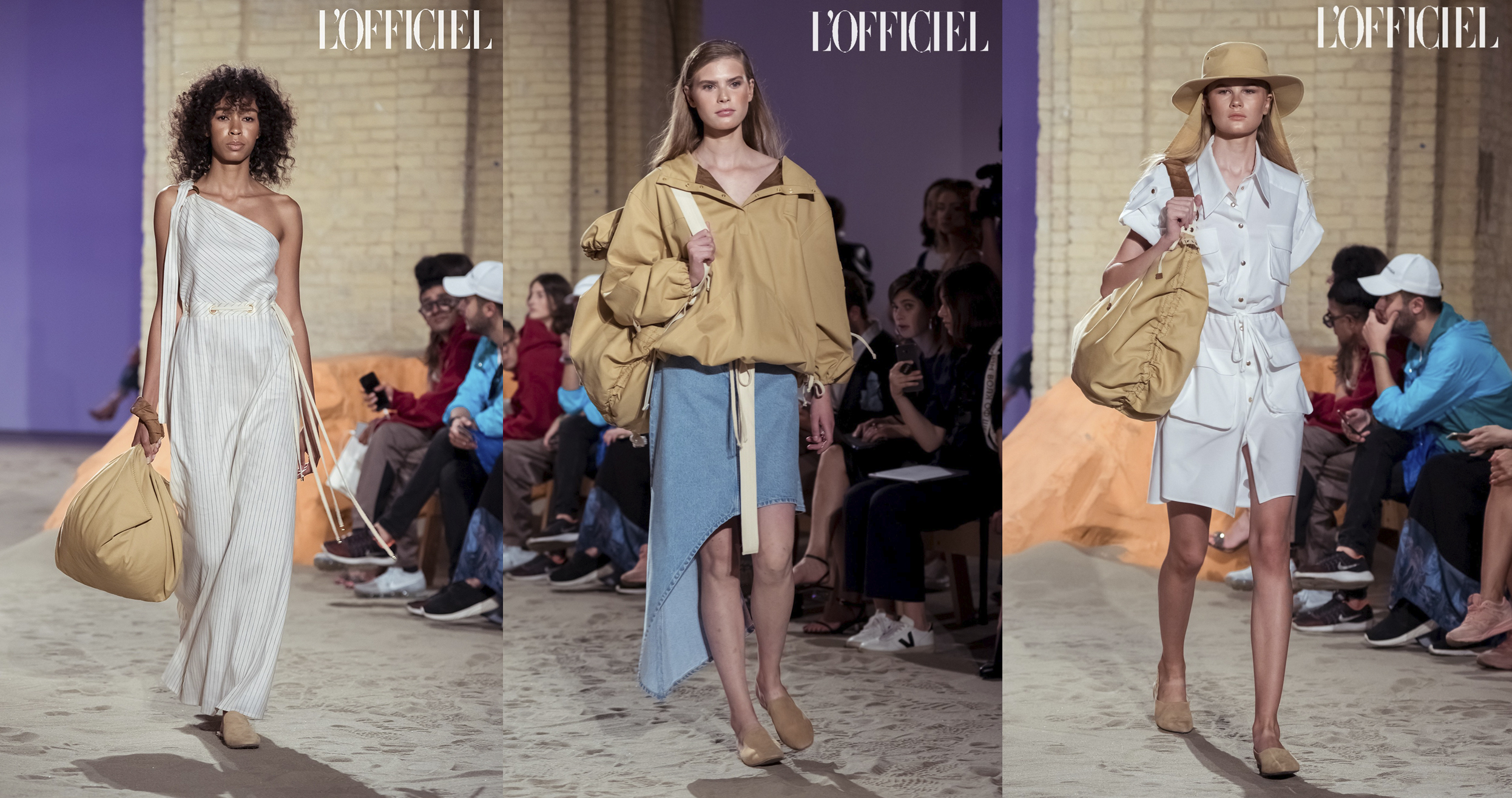 "Мы взяли образы бедуинов, одежду для сафари и адаптировали их для городской жизни", — рассказала после показа Виктория Баланюк, дизайнер Flow The Label. Для презентации коллекции весна-лето — 2019 они засыпали песком целый зал в правом крыле Мыстецкого Арсенала, создав небольшую пустыню в центре Киева. Чемодан для экспедиции в жаркую Африку Flow The Label предлагают паковать вещами из исключительно натуральных тканей — тонкого и плотного хлопка, денима, жатого шифона и текстурного шелка.