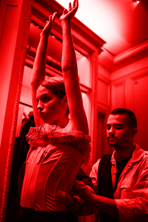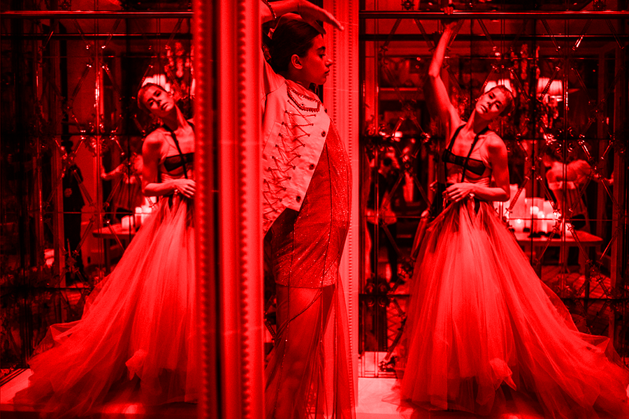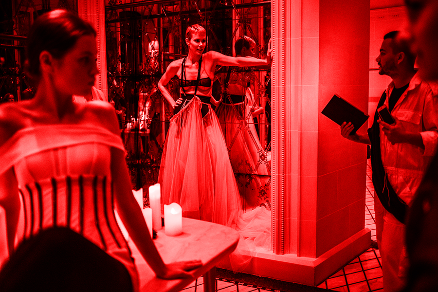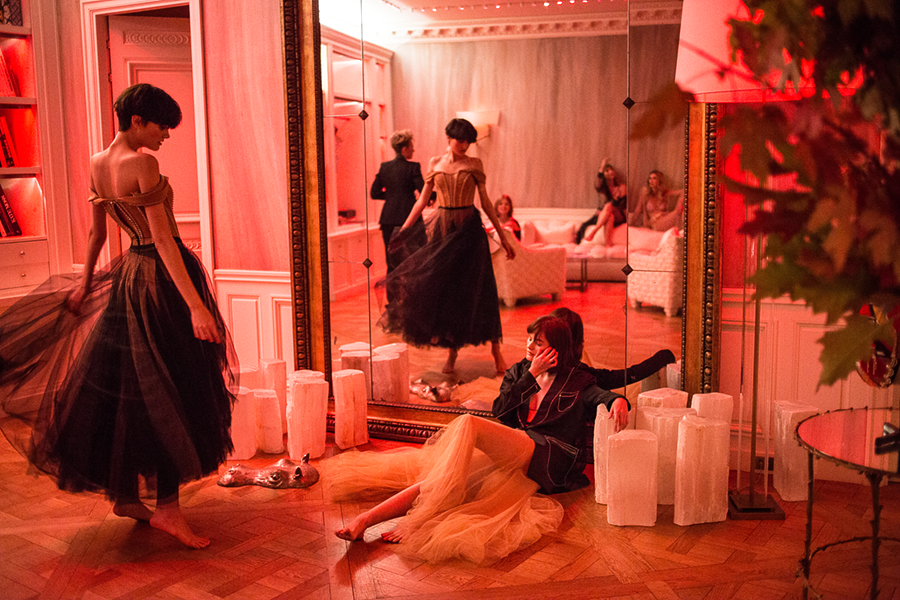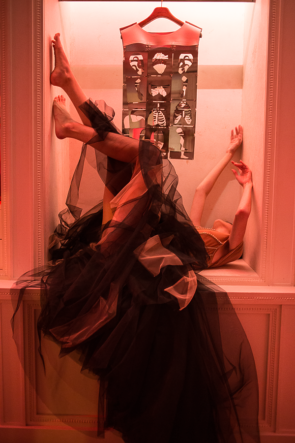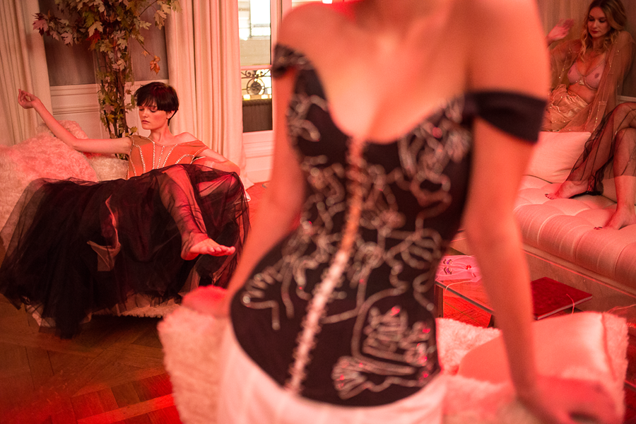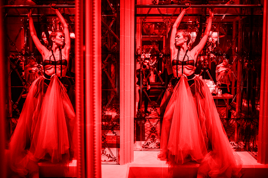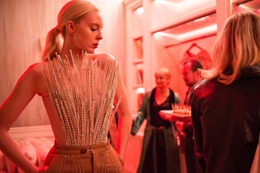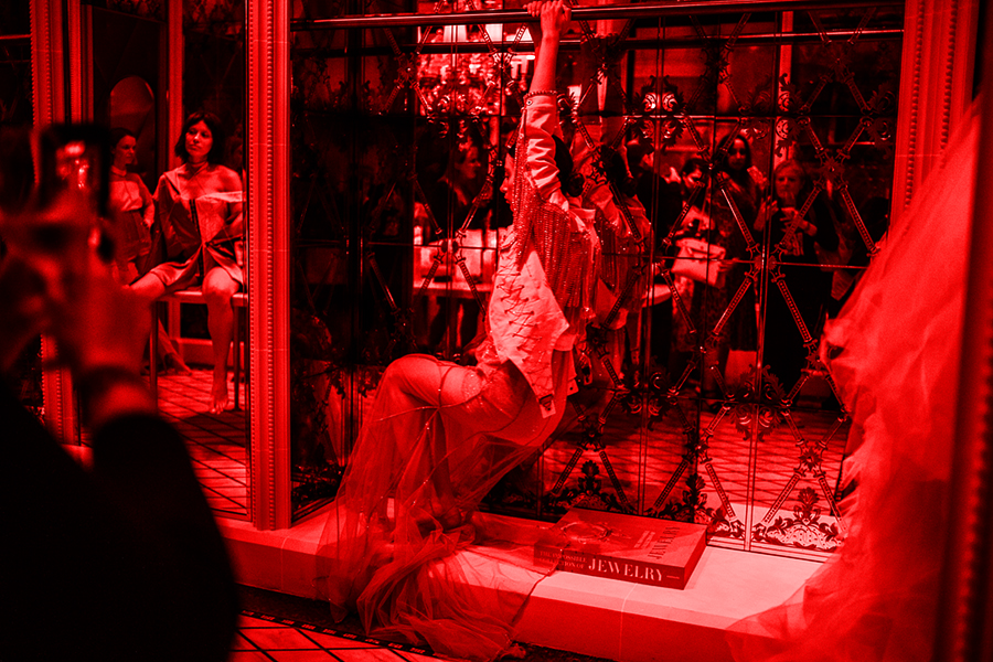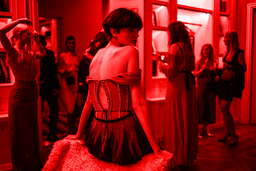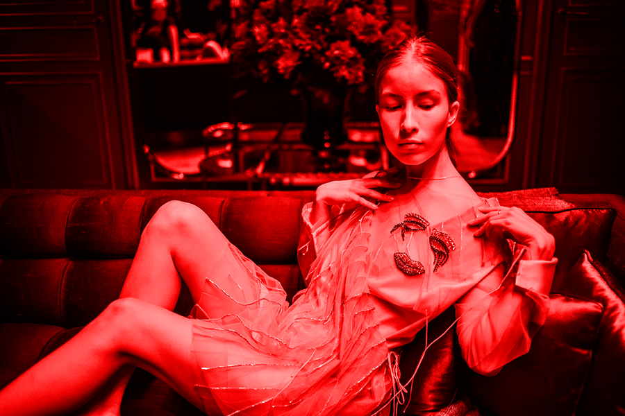 В честь пятилетия бренда Frolov впервые шоу перенесли из Киева в Париж, в кутюрный бутик Les Suites в самом центре города. Для показа пространство полностью перевоплотили в соответствии с концепцией бренда intelligent provocation: на входе и витринах повесили атласные шторы, добавили мерцающий красный свет, а на потолок спроецировали изображение сердца. Локация для проведения презентации коллекции Frolov весна-лето – 2019 была выбрана неслучайно: именно Les Suites 3 года назад стал первым ретейлером, который начал закупать коллекции украинского бренда.