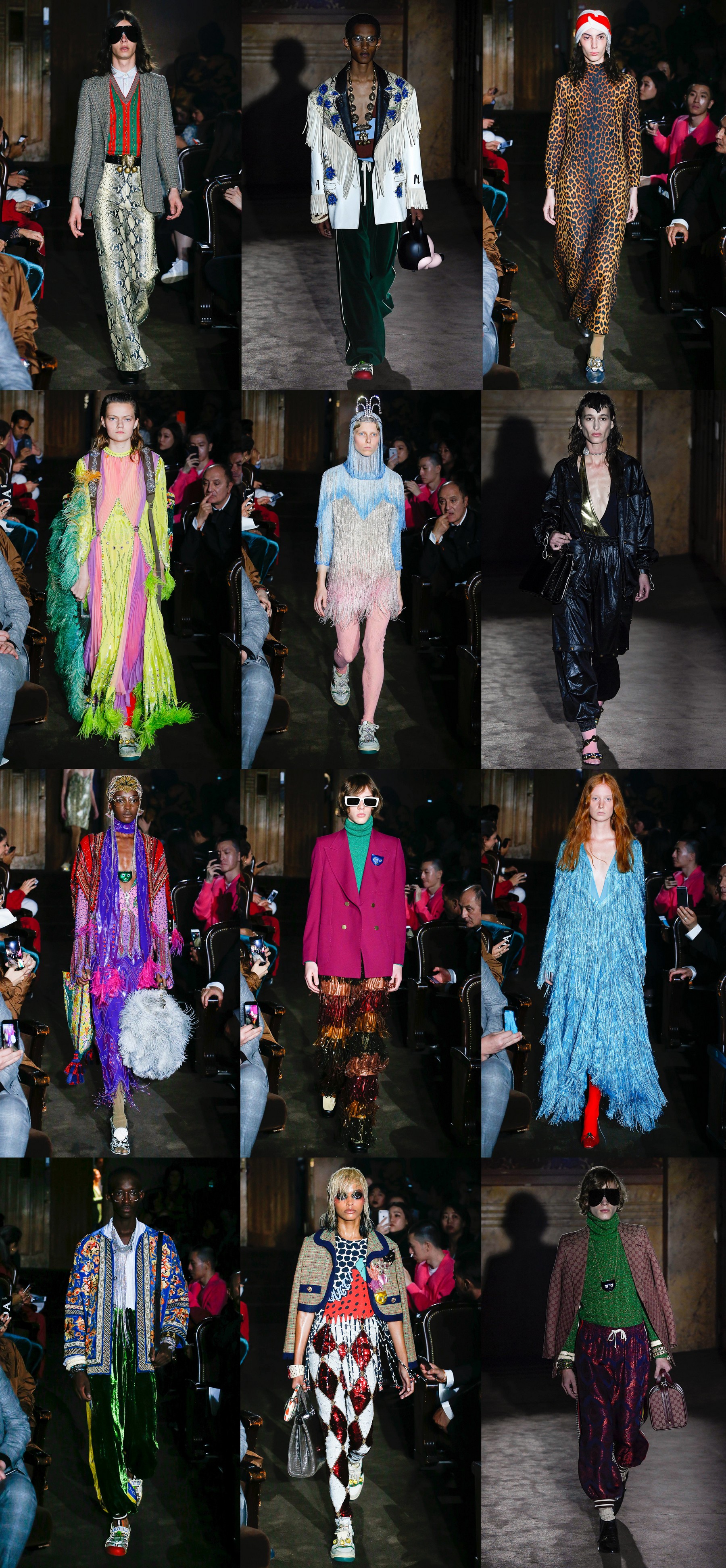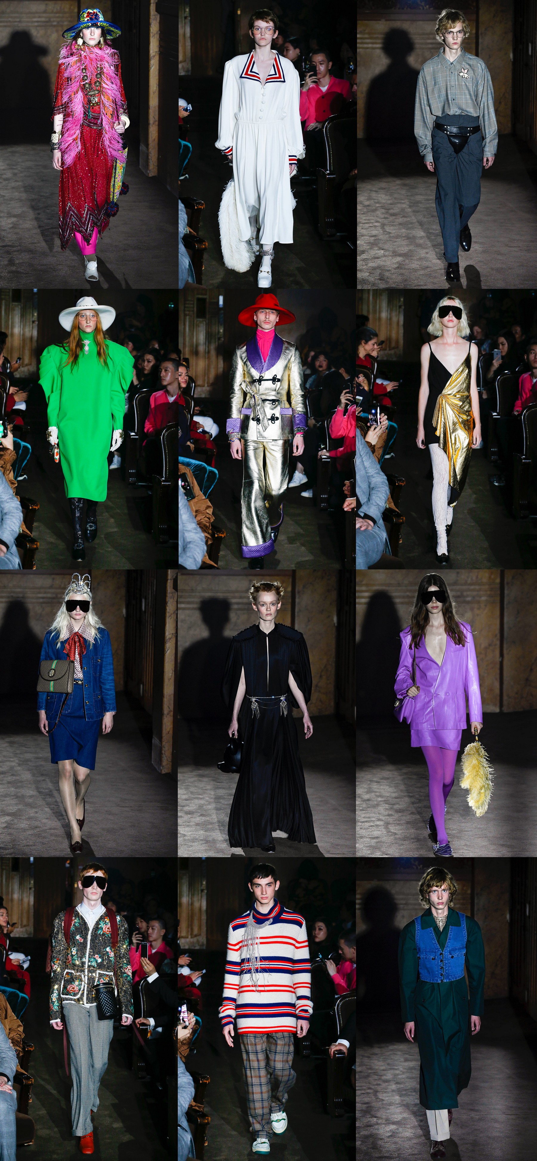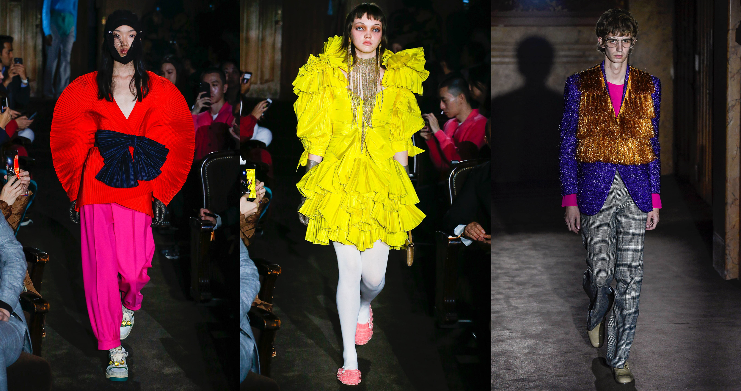 Алессандро Микеле – признанный мастер вплетать фантазии и события прошлого в канву сегодняшней реальности. Для показа коллекции весна-лето 2019 он “переехал” с Миланской недели моды в Париж, чтобы привести гостей в полузаброшенный клуб Le Palace – легенду ночной жизни 70-х наравне с нью-йоркским Studio 54. И там он черпал вдохновение в экстравагантном творчестве театральных режиссеров и постановщиков той поры – Лео де Берардинис и Перлы Перагалло.