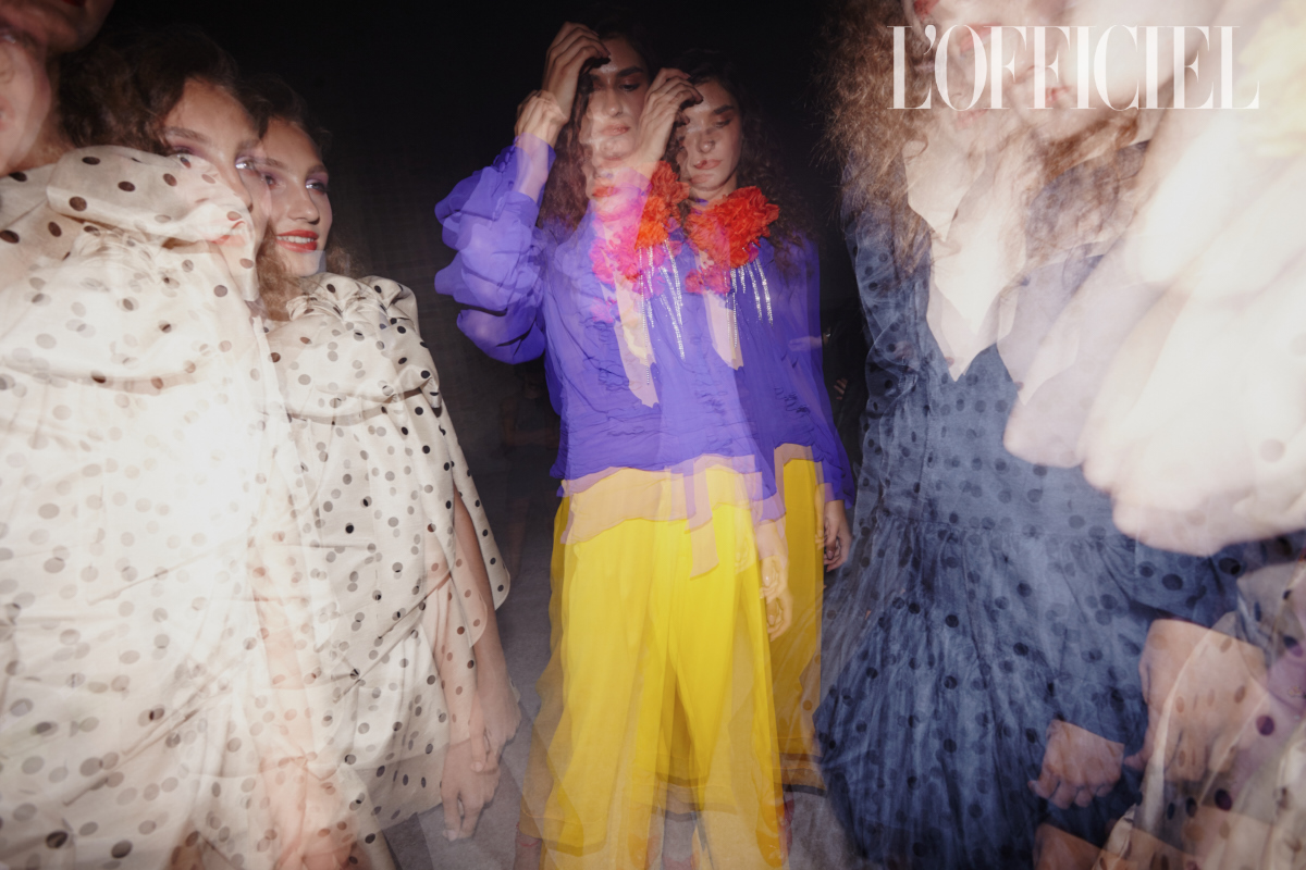 Не обошлось на показе и без знаковых для бренда беретов и, конечно, бантов, которые в этот раз украшали платья на одно плечо. Сочные оттенки, напоминающие домики на Амальфитанском побережье Италии, Марианна Сенчина разбавляла своим фирменным принтом гороха. Причем на некоторых платьях в роли горошин выступали сверкающие кристаллы, напоминая о том, что 80-е – это все же шумная вечеринка на всю ночь, а не тихая прогулка вдоль набережной.