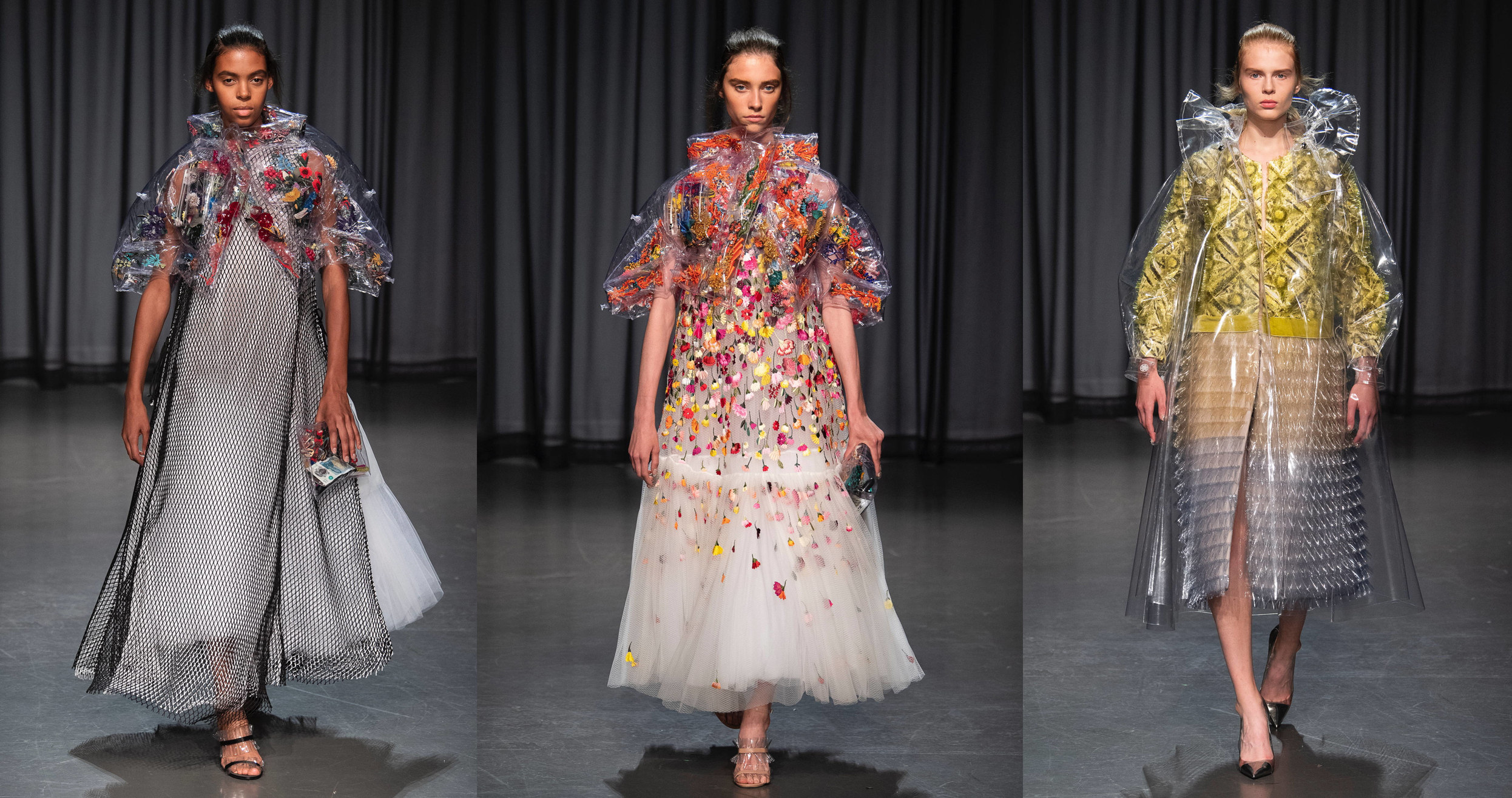 Свою юбилейную коллекцию Мэри посвятила коллекционерам. "Коллекция коллекций", — шутила она перед показом. И вправду, здесь и переосмысленные реплики ее предыдущих сезонов — что и стало лейтмотивом коллекции, — и большое собрание почтовых марок с изображениями бабочек, цветов и минералов, геральдических элементов и банкнот. И весь этот причудливый максимализм кажется более легким и динамичным, чем когда-либо. На воздушных платьях, накидках и плащах с объемными рукавами она выпустила стаи бабочек и рассыпала букеты живых цветов. Например, дизайнер предложила "надутое" пластиковое болеро, внутрь которого поместила всевозможные морские растения и кораллы вперемешку с морскими звездами и бусинами. Уверены, многие модницы захотят его в свою коллекцию. К нему — летящие платья из белоснежных тюля и сетки, которые Мэри расшила наивными полевыми цветочками, повторяющими цветовую гамму накидки.