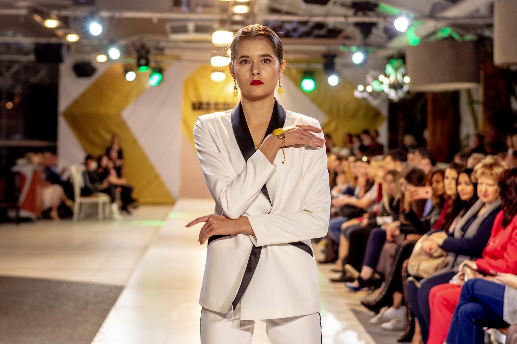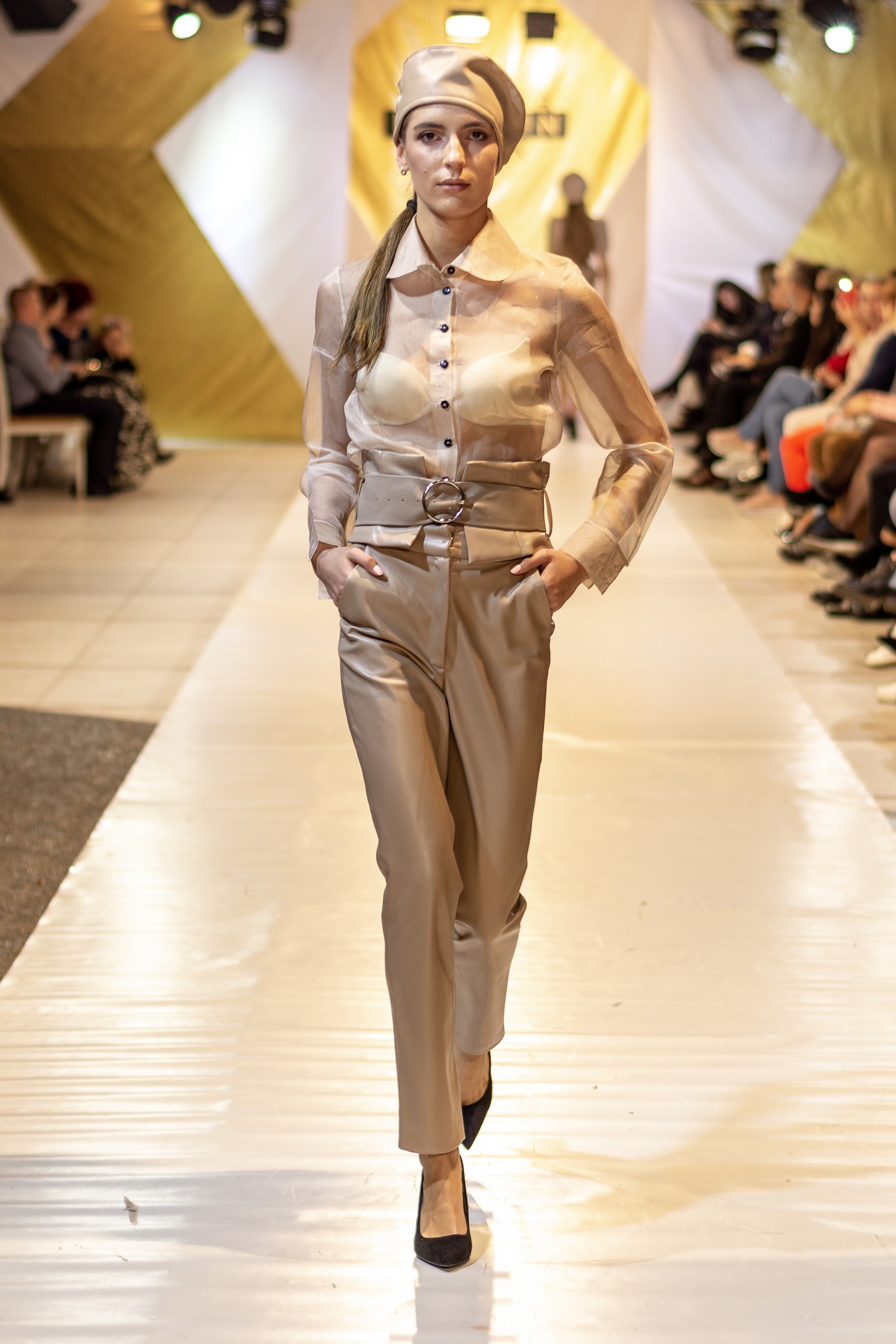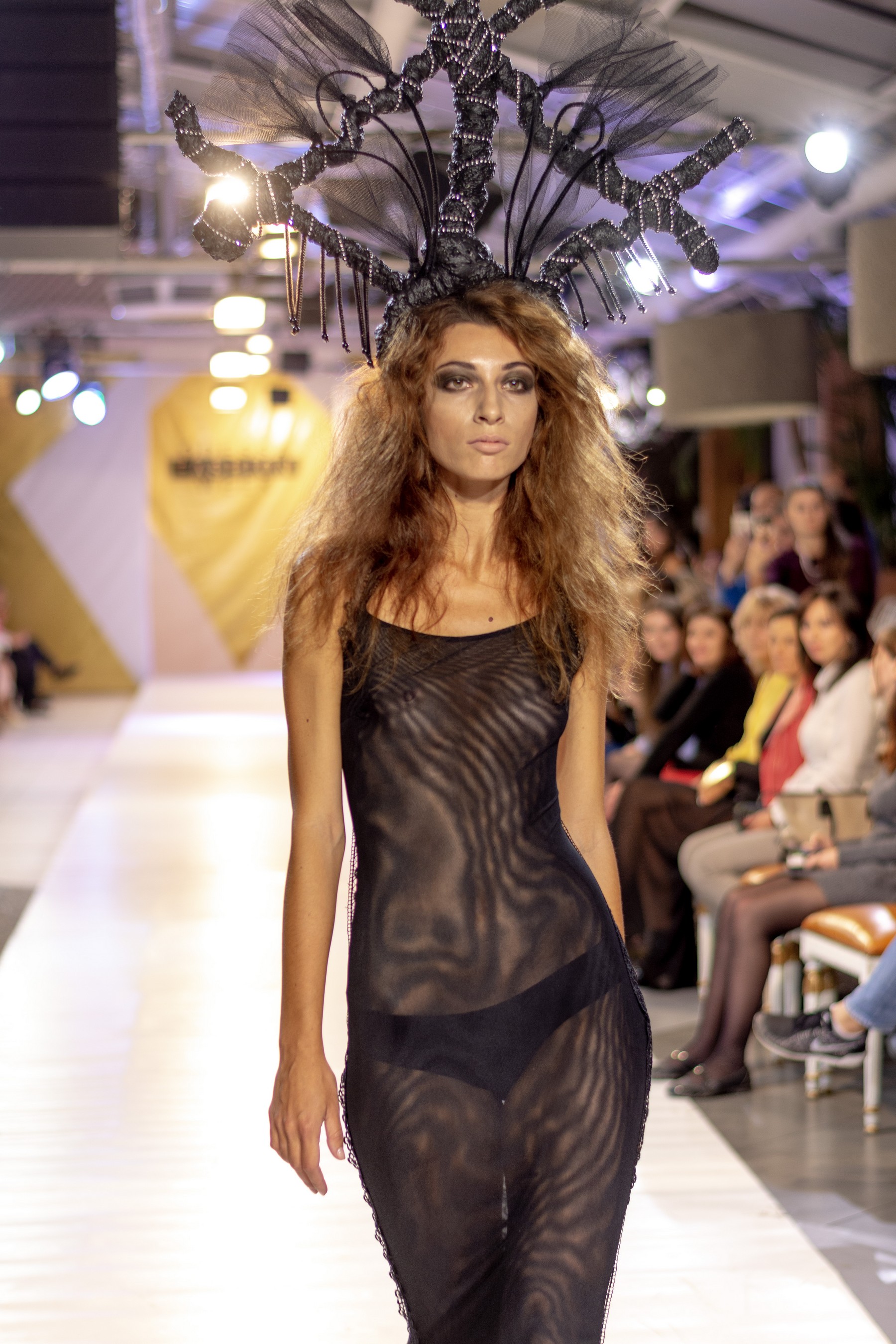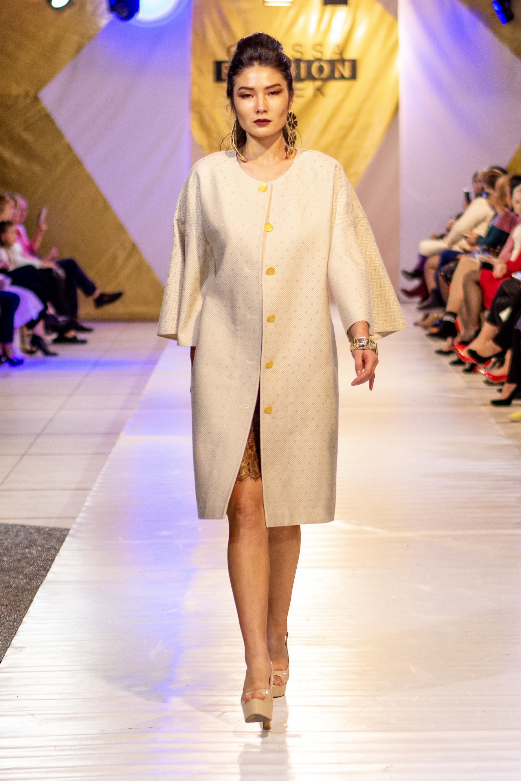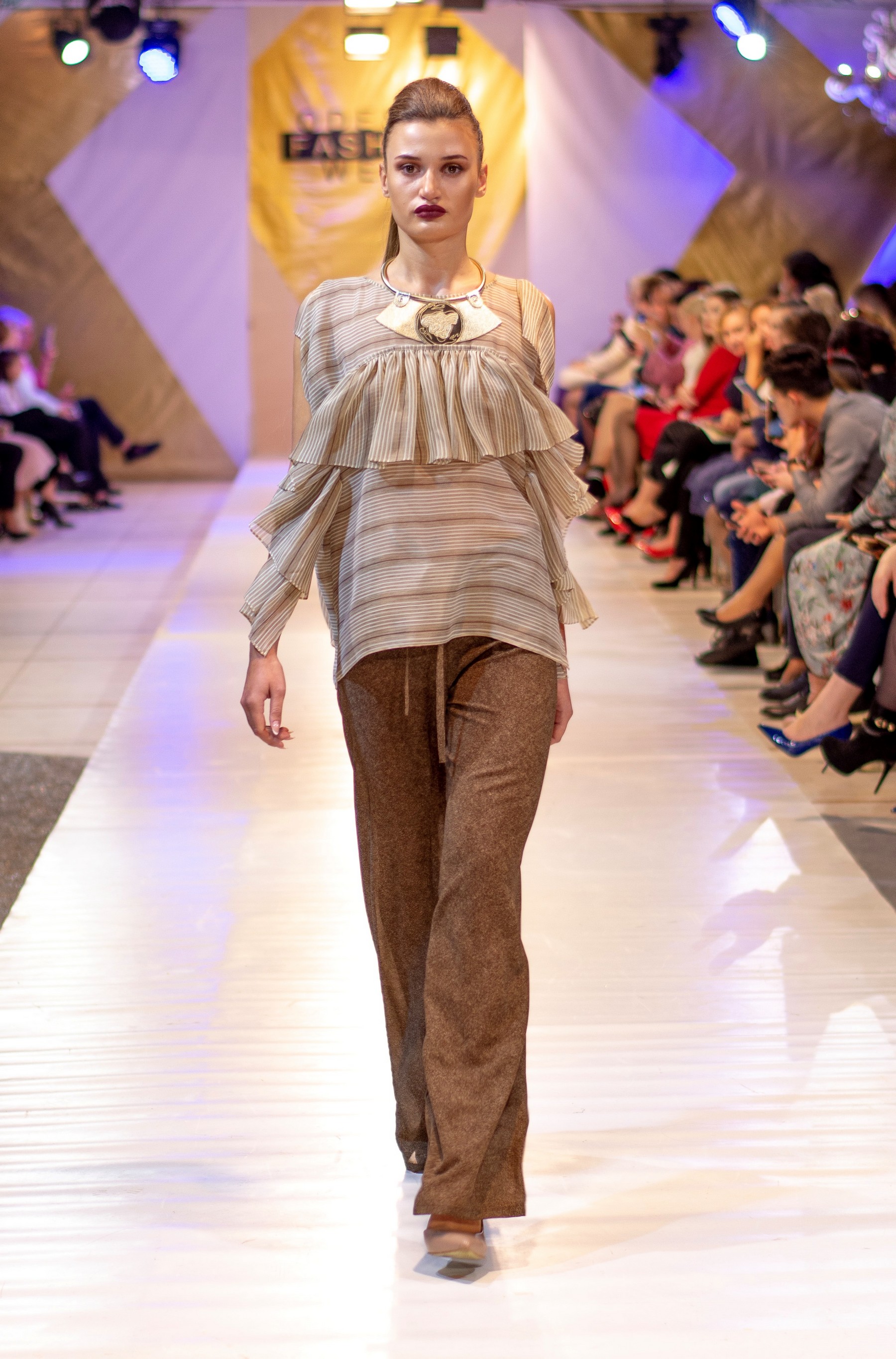 Коллекция бренда Elen Godis пронизана теплым светом осеннего солнца и посвящена загадочной истории скифов. Назвав ее "Скифское золото", дизайнер комбинировала мягкую белую шерсть с органзой медового цвета и шифоном шоколадного оттенка. А браслеты, пояса и колье украсили изображения сказочных грифонов, пантер и золотых оленей.