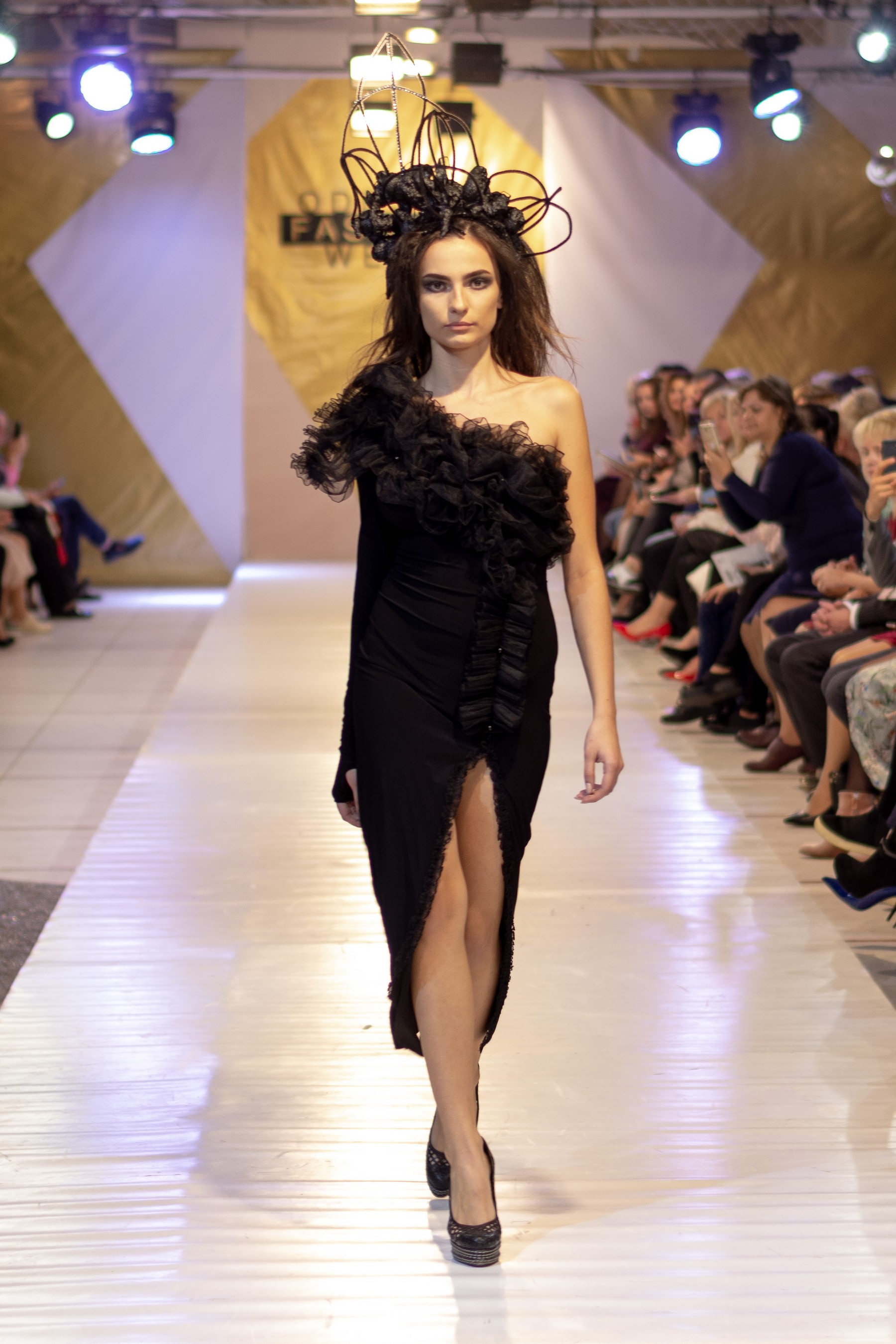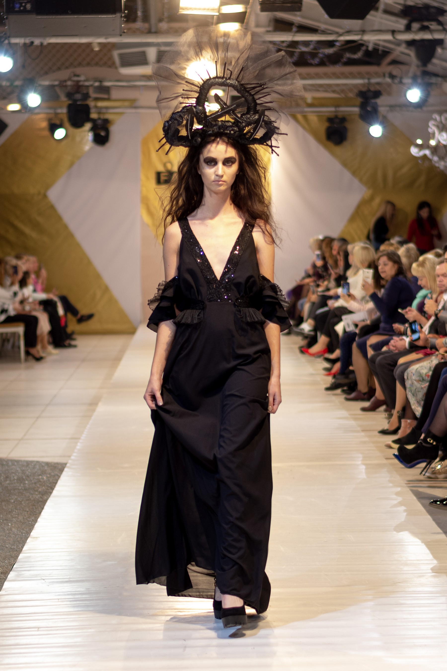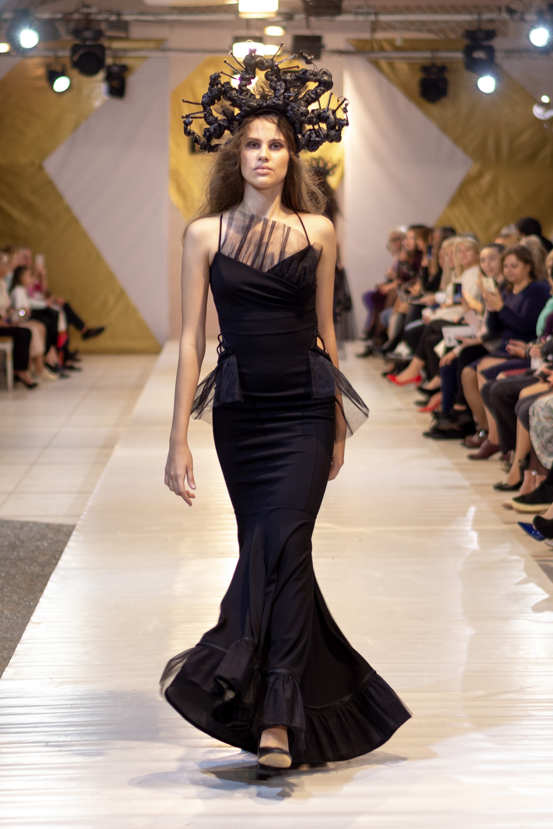 Свою коллекцию женских вечерних платьев дизайнер Денис Гуляев назвал #забвениечастьпервая. Вечная борьба между добром и злом и не имеющий смысла спор между женским и мужским началом дизайнер раскрывает через игру с объемами и разными фактурами.
