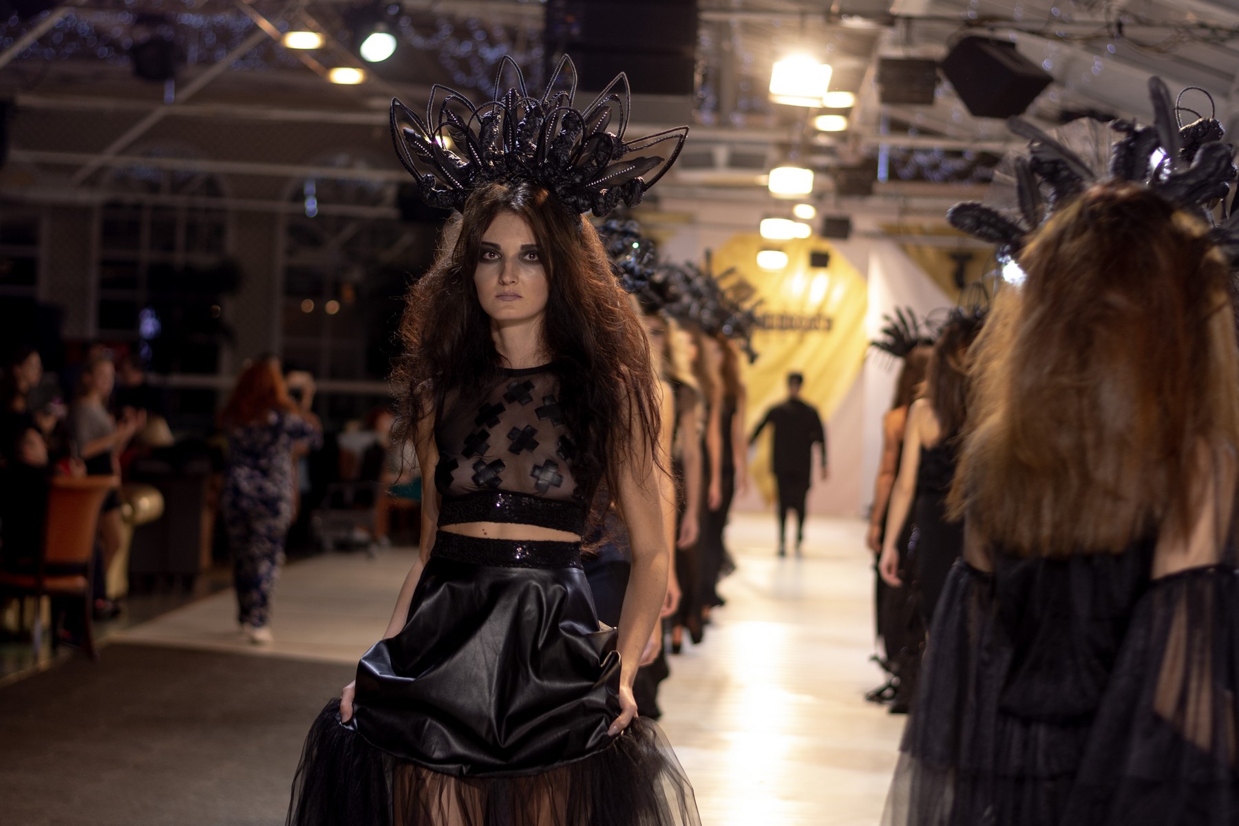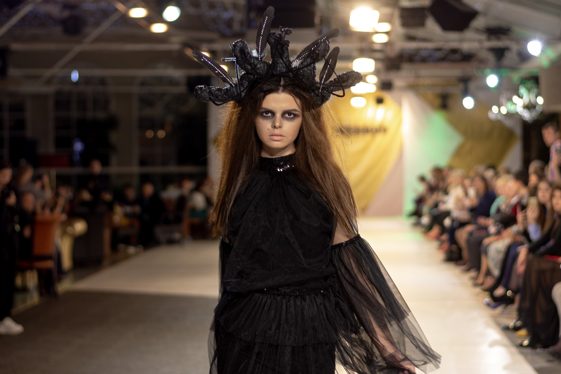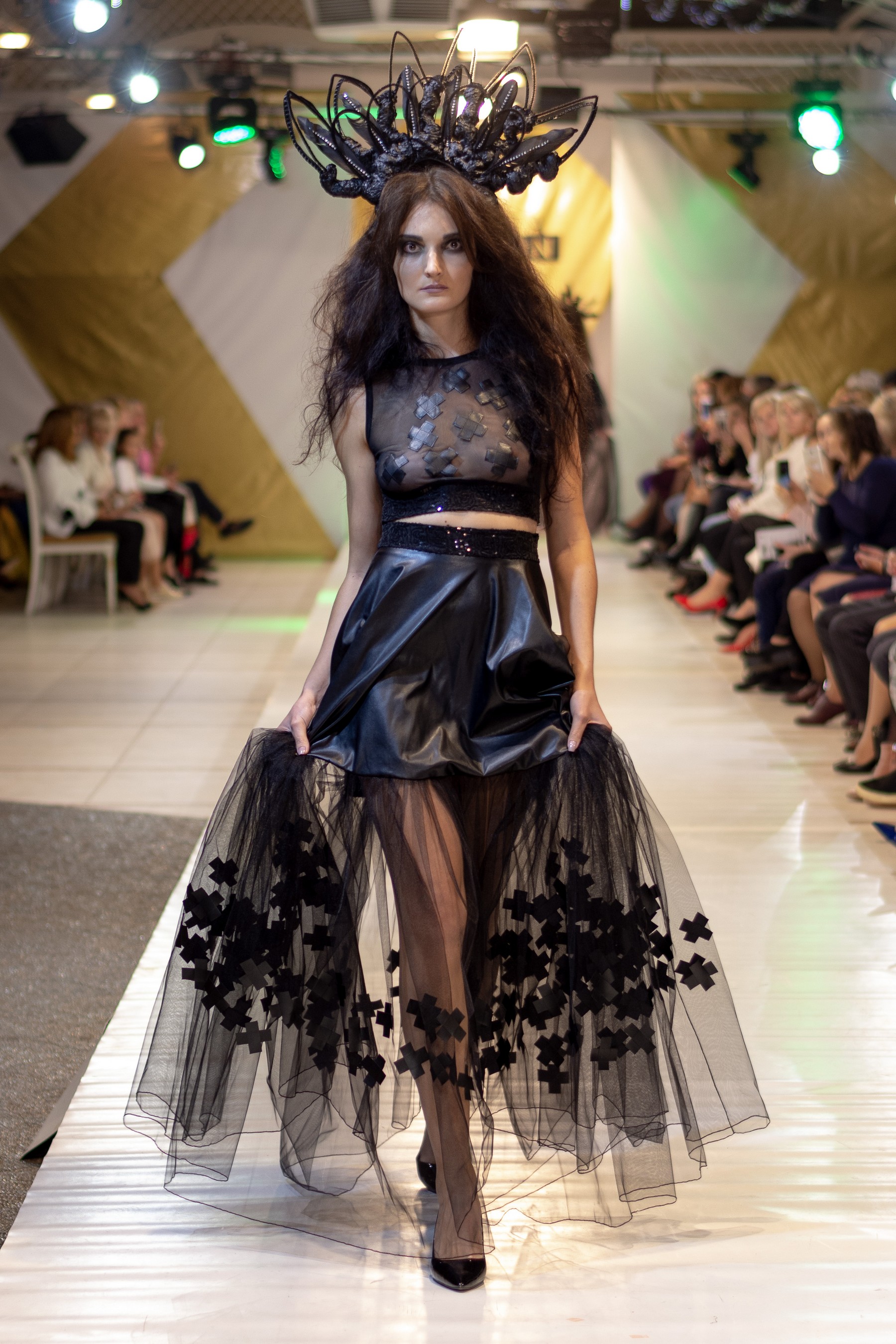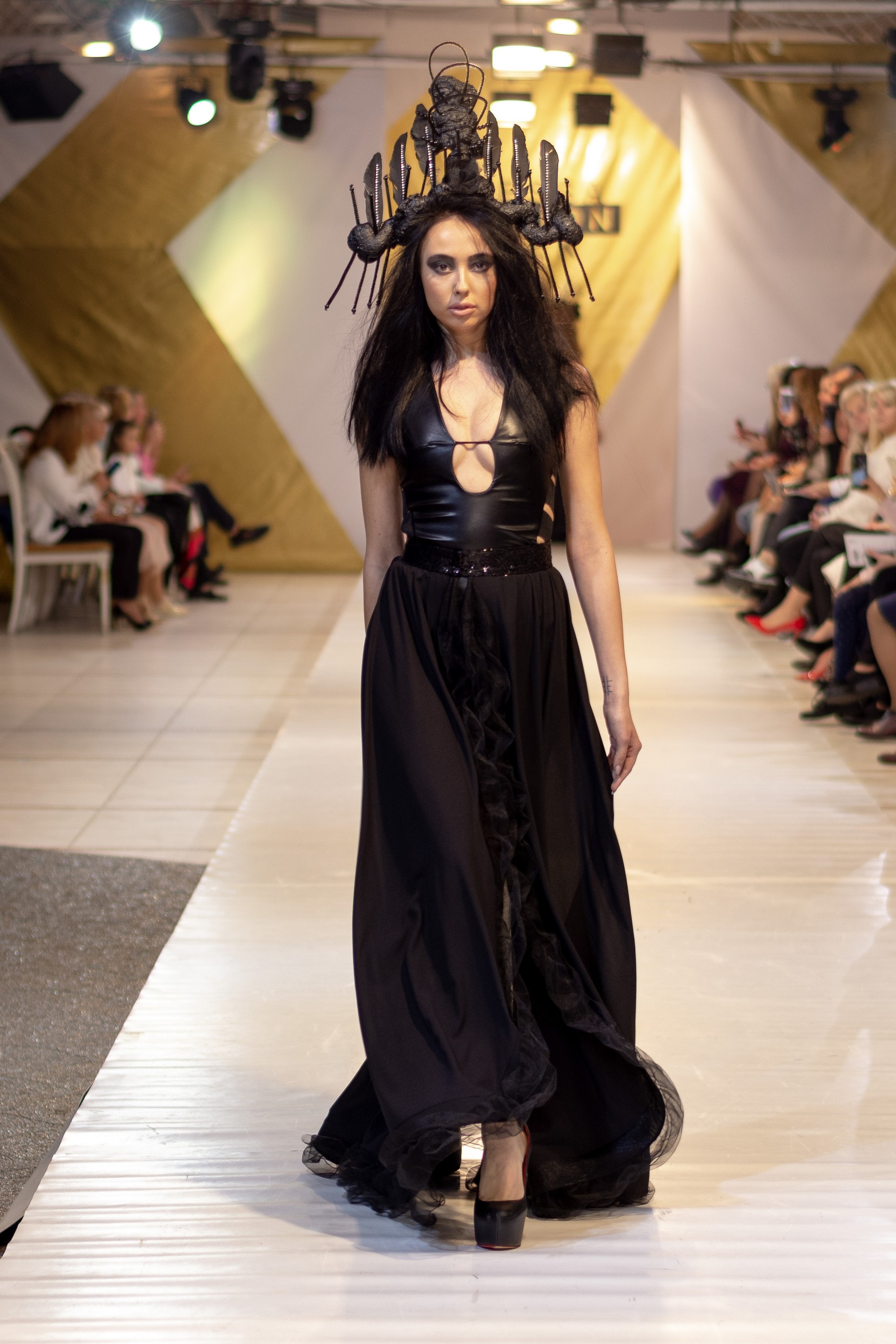 Свою коллекцию женских вечерних платьев дизайнер Денис Гуляев назвал #забвениечастьпервая. Вечная борьба между добром и злом и не имеющий смысла спор между женским и мужским началом дизайнер раскрывает через игру с объемами и разными фактурами.