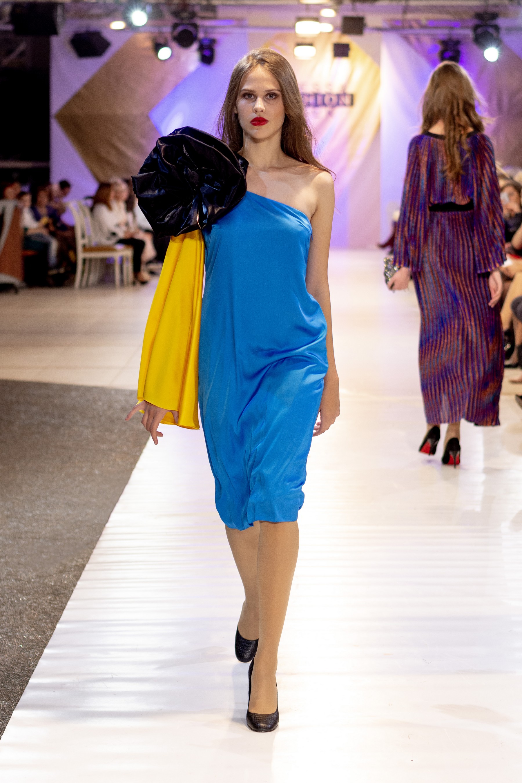 Индийский дизайнер Шалини Тоди посвятила новую коллекцию украинскому народу. Например, в одном из платьев черный цвет - это рассказ о революции, которая произошла в Украине, желтый - повесть о смелости и единстве людей, а голубой - не всегда заметная глазу эмоциональная поддержка, которую люди оказывали друг другу.