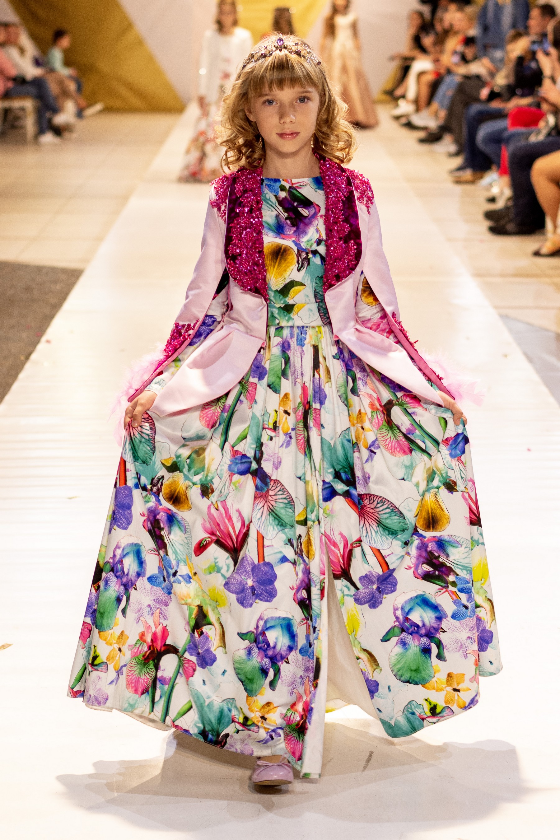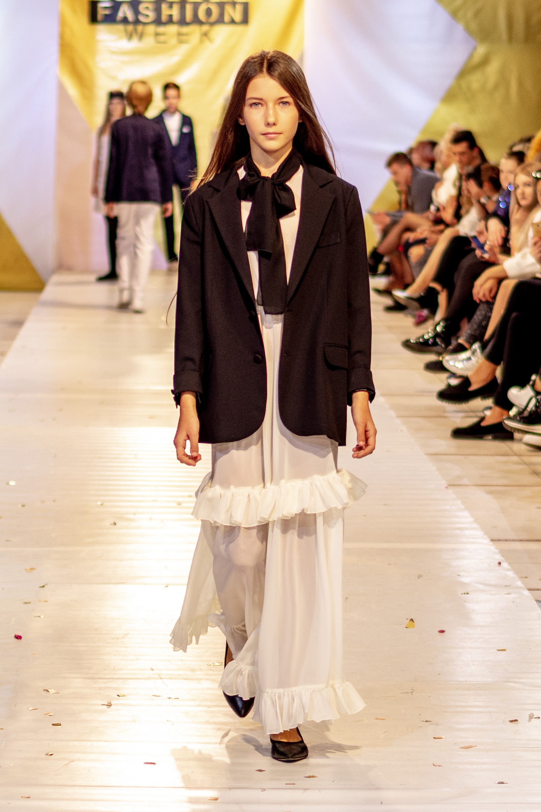 В новом сезоне бренд Miss DM вновь представил коллекцию одежды для девочек и подростков, назвав ее Delight. Яркий и позитивный характер одежды подчеркивали насыщенные оттенки желтого и малинового, создавая приподнятое настроение на показе.