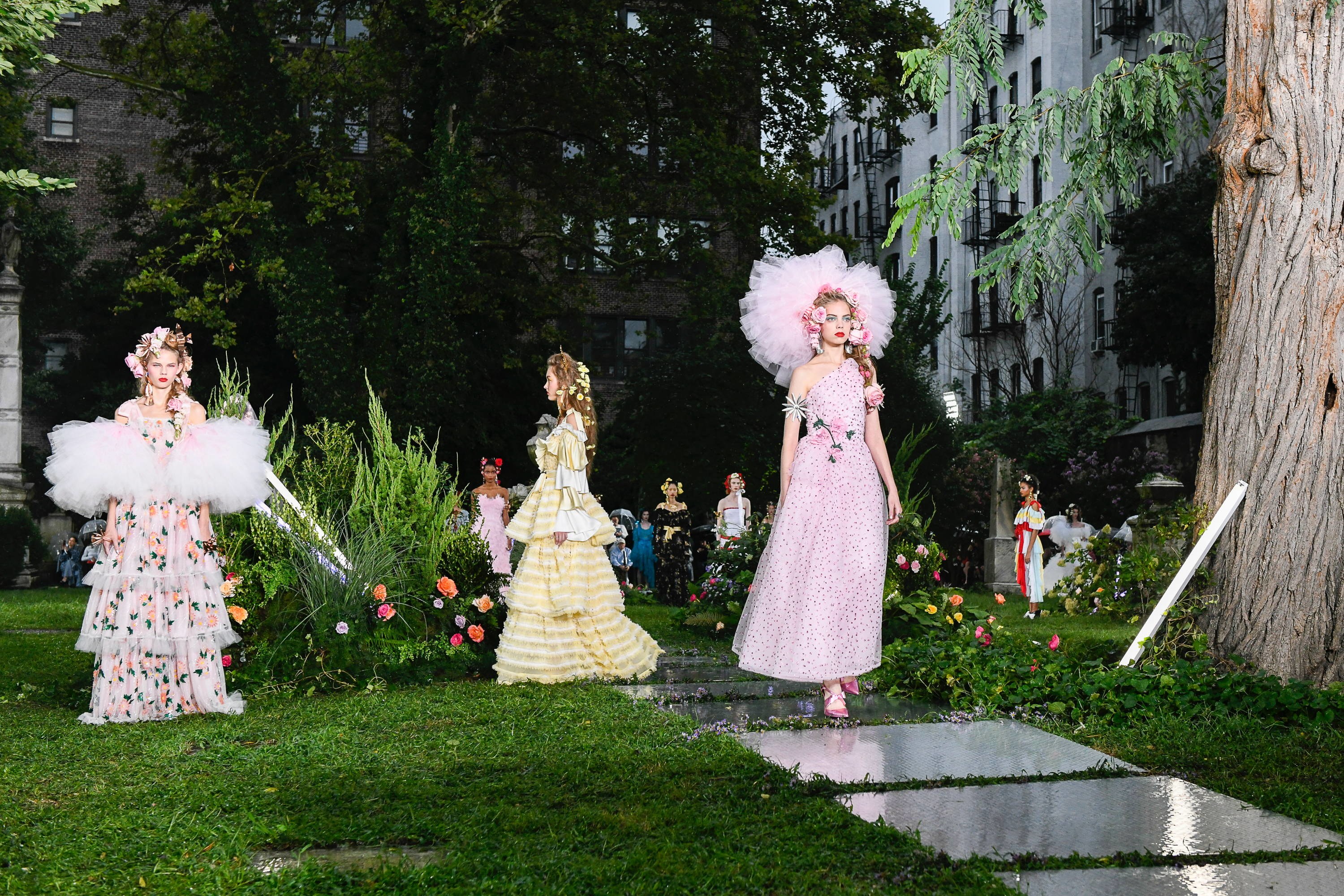 Последние два года Rodarte показывали свои коллекции на парижских подиумах, покинув родной Нью-Йорк. В этом году они вновь возвращаются домой — и должны сказать, что это очень радует поклонников американской Недели моды. И не просто потому, что это прекрасные Rodarte с их цветущими аппликациями и вышивками, но и потому, что Нью-Йорк переживает не лучшие времена: отсюда съезжают дизайнеры. Был ли выбор локации для показа связан с шатким положением NYFW — неизвестно, но свою коллекцию весна-лето – 2019 Rodarte представили на историческом кладбище XIX века — The New York City Marble Cemetery.