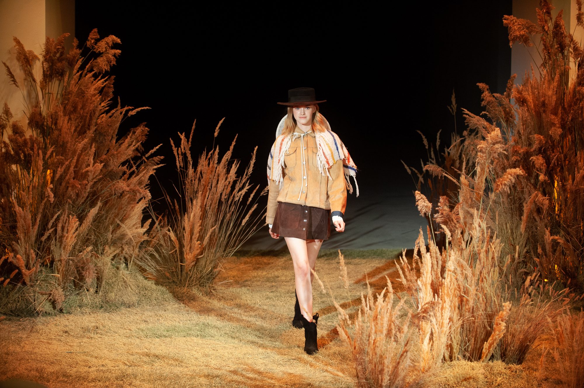 Все настроение коллекции и ее цветовая гамма — прямая цитата к флоре и фауне заповедника, а ещё к свободолюбивой американе 1970-х и хиппи-культуре. Презентацию открыла модель в соломенном канотье, наигрывая какие-то мотивы на укулеле — крошечной гавайской гитаре, которую иногда ласково называют "ананас", — а за ней появился босой парень в чёрной ковбойской шляпе из фетра. Вслед за ними, пританцовывая, выходили модели в канотье и федорах из мягкого фетра земляных оттенков, коттоновых панамах и кепках в клетку, замшевых беретах рыжих тонов и шляпах с широкими полями из соломы и белой сетки.