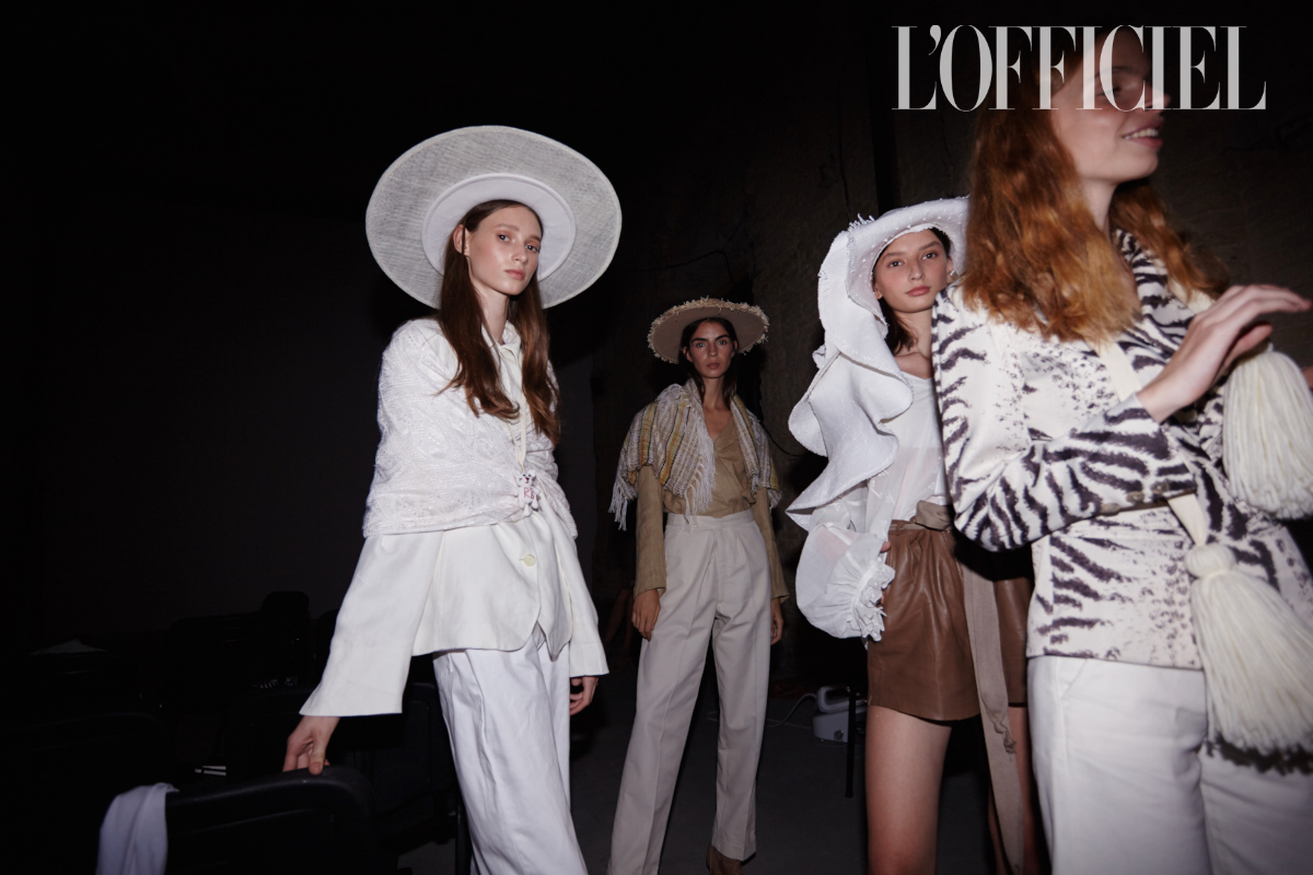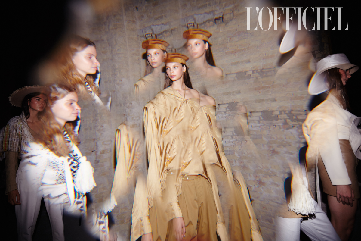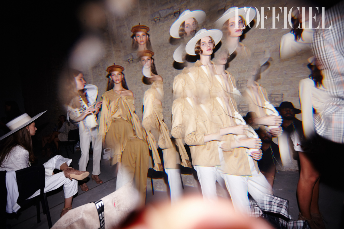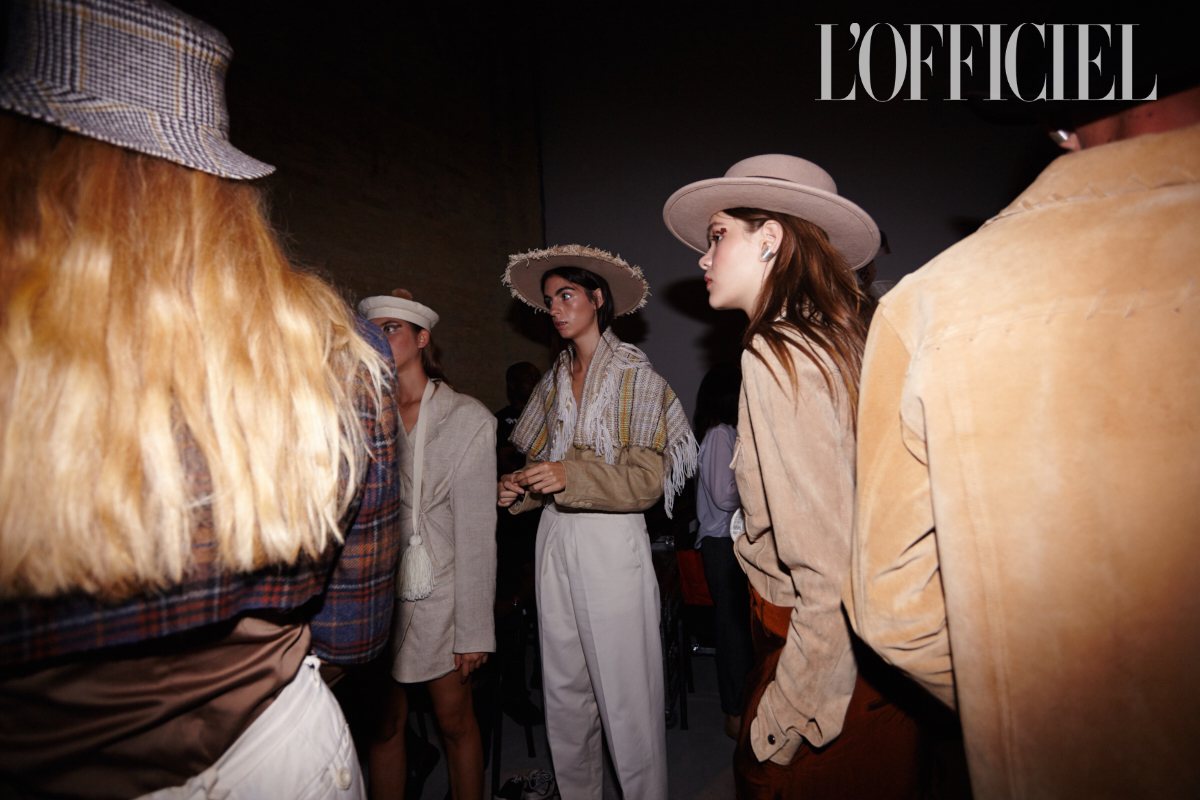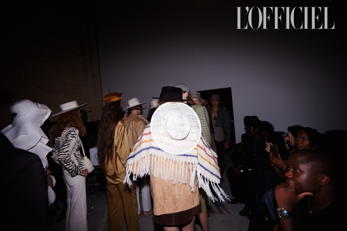 "Дело в шляпе" — примерно так можно описывать презентации Багинского: это тот самый случай, когда не шляпы подбирают под образы, а совсем наоборот. Пока одни модели скромно надевали льняные костюмы и соломенные шляпы с «растрёпанными» краями, укрывая плечи традиционными индейскими накидками с бахромой, другие облачались в рубашки и юбки из кожи и замши песочных оттенков. Были и такие, кто выходил к зрителям и вовсе с обнаженным торсом, но зато в гордой фетровой федоре. Так что мы можем смело утверждать: праздник мультикультурности удался!