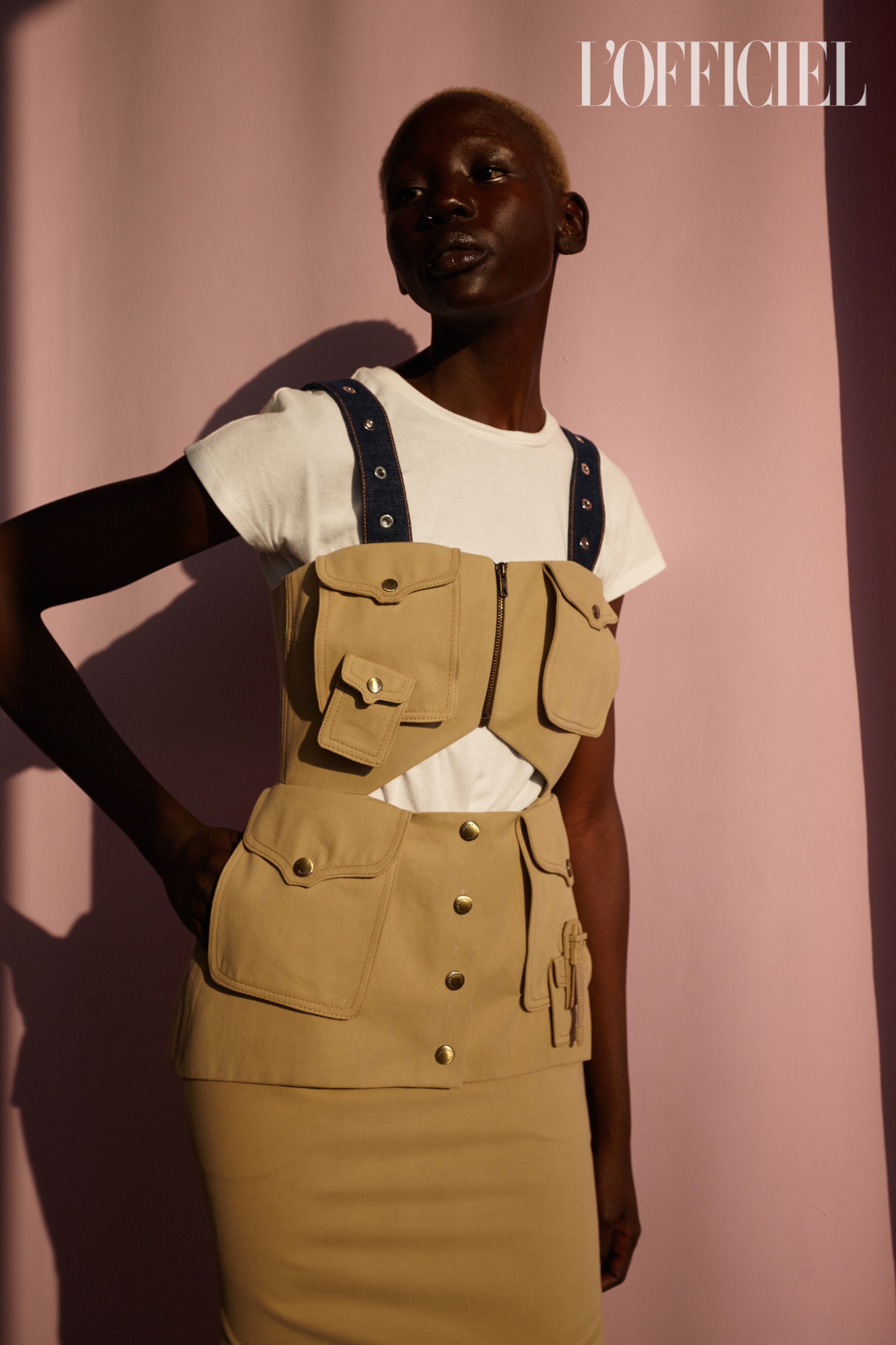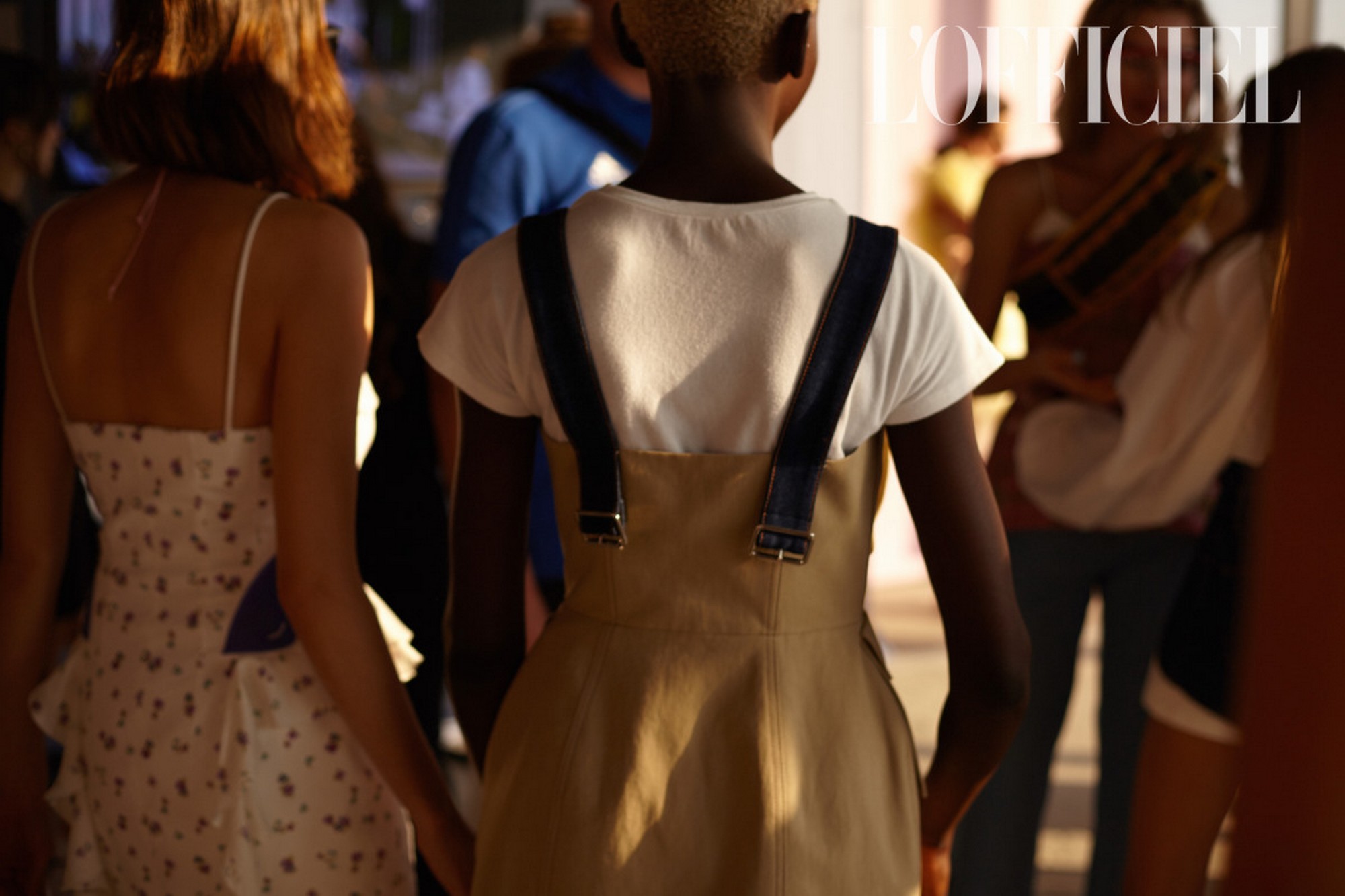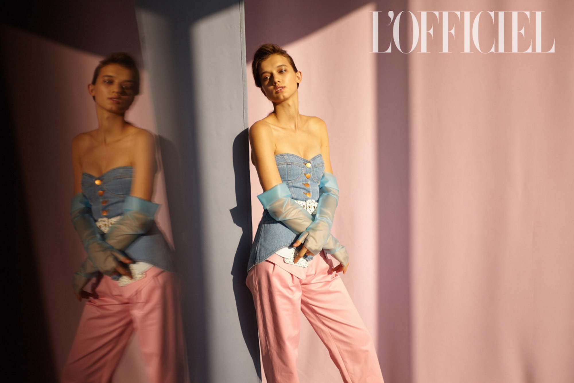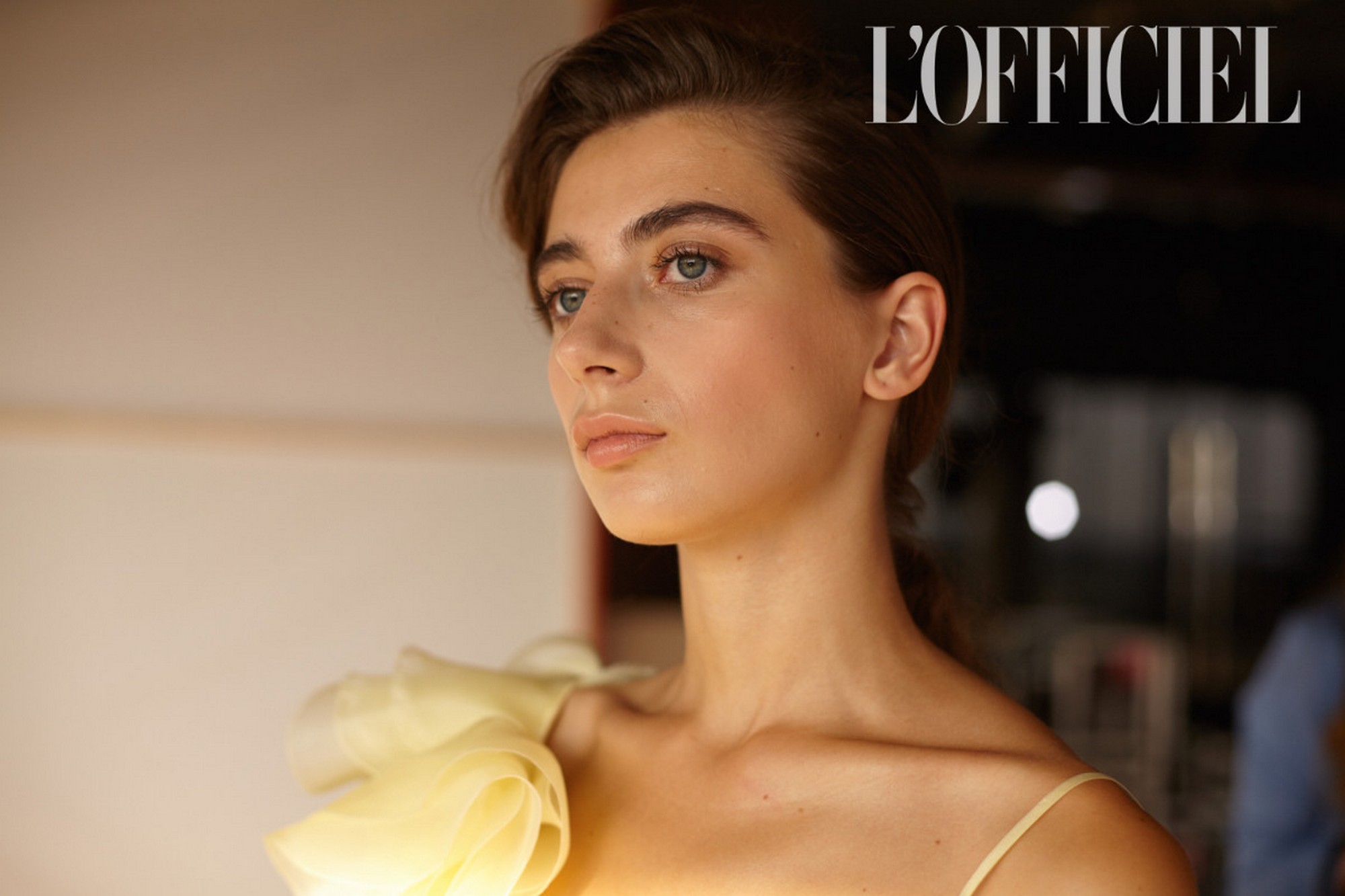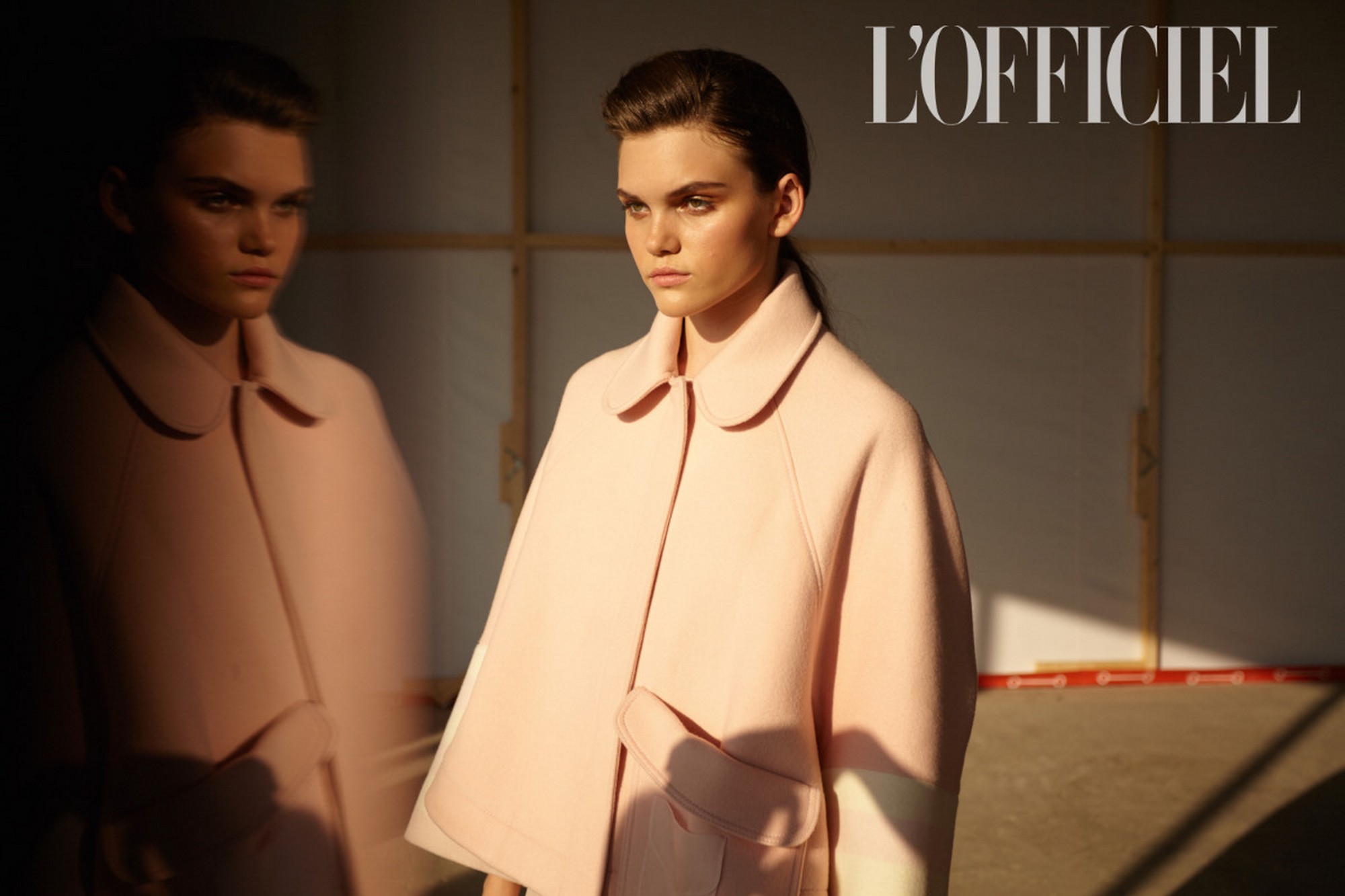 Тему показа Кати Сильченко можно было предугадать еще по приглашению на показ – вместо бумажного пригласительного гости получили прозрачные пластиковые очки, в которых обычно трудятся рабочие на стройках. Дизайнер исследовала рабочую униформу женщин послевоенного периода 40-х годов, когда женщинам приходилось выполнять всю тяжелую работу наравне с мужчинами. "Женщины не отходили от станка, при этом умудрялись быть любящими мамами и заботливыми женами. Я думаю, что благодаря их вере, труду и отваге вернулась жизнь", — рассказывает Катя.