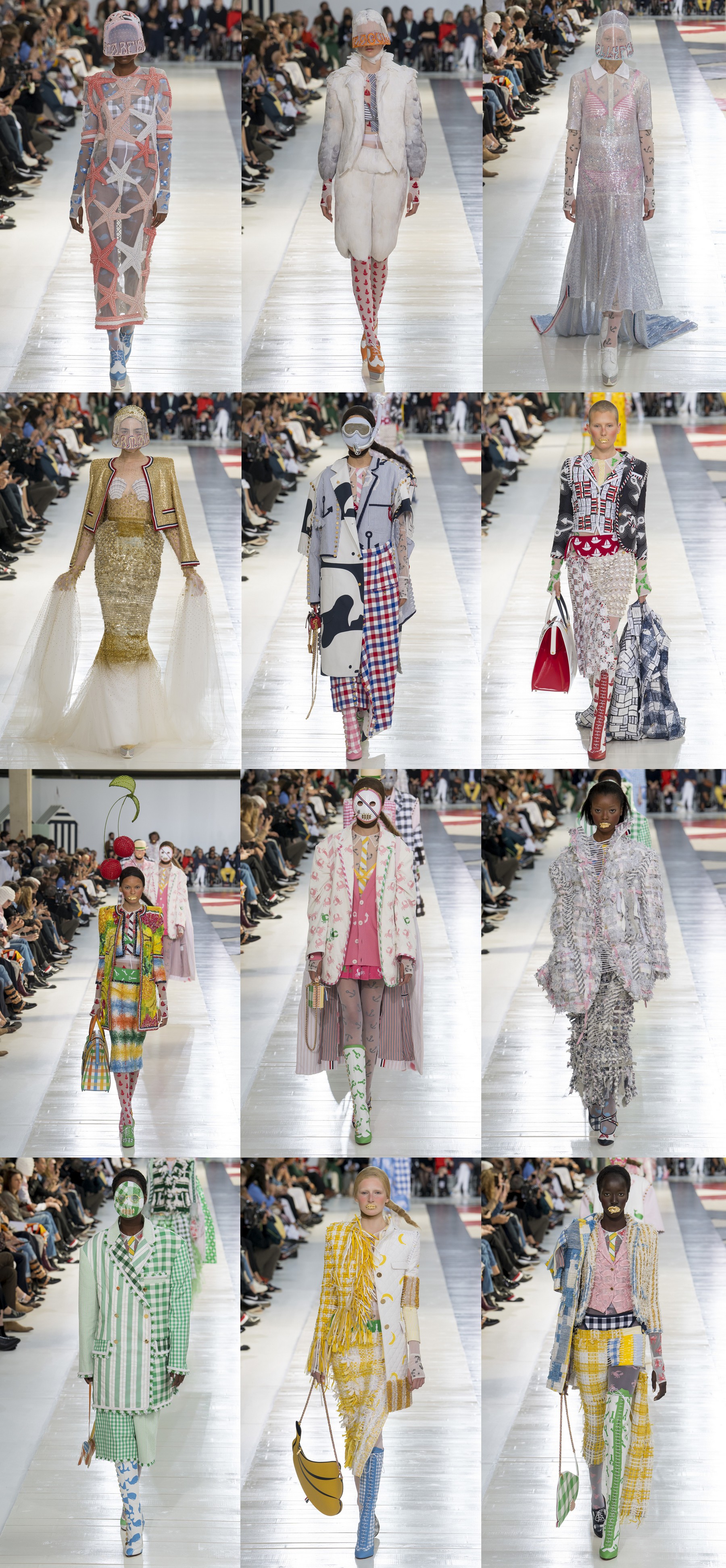 Прямой цитатой Браун оставил только образ русалки – модель плавно "плыла" в расшитом золотыми пайетками платье годе с прозрачными белыми рукавами (не исключено, что это платье мы еще увидим на красных дорожках киноцеремоний). Основную же часть коллекции составили традиционные для бренда эклектичные костюмы, в которых дизайнер смешал сразу несколько видов клетки, разные фактуры, слои и асимметричный крой.