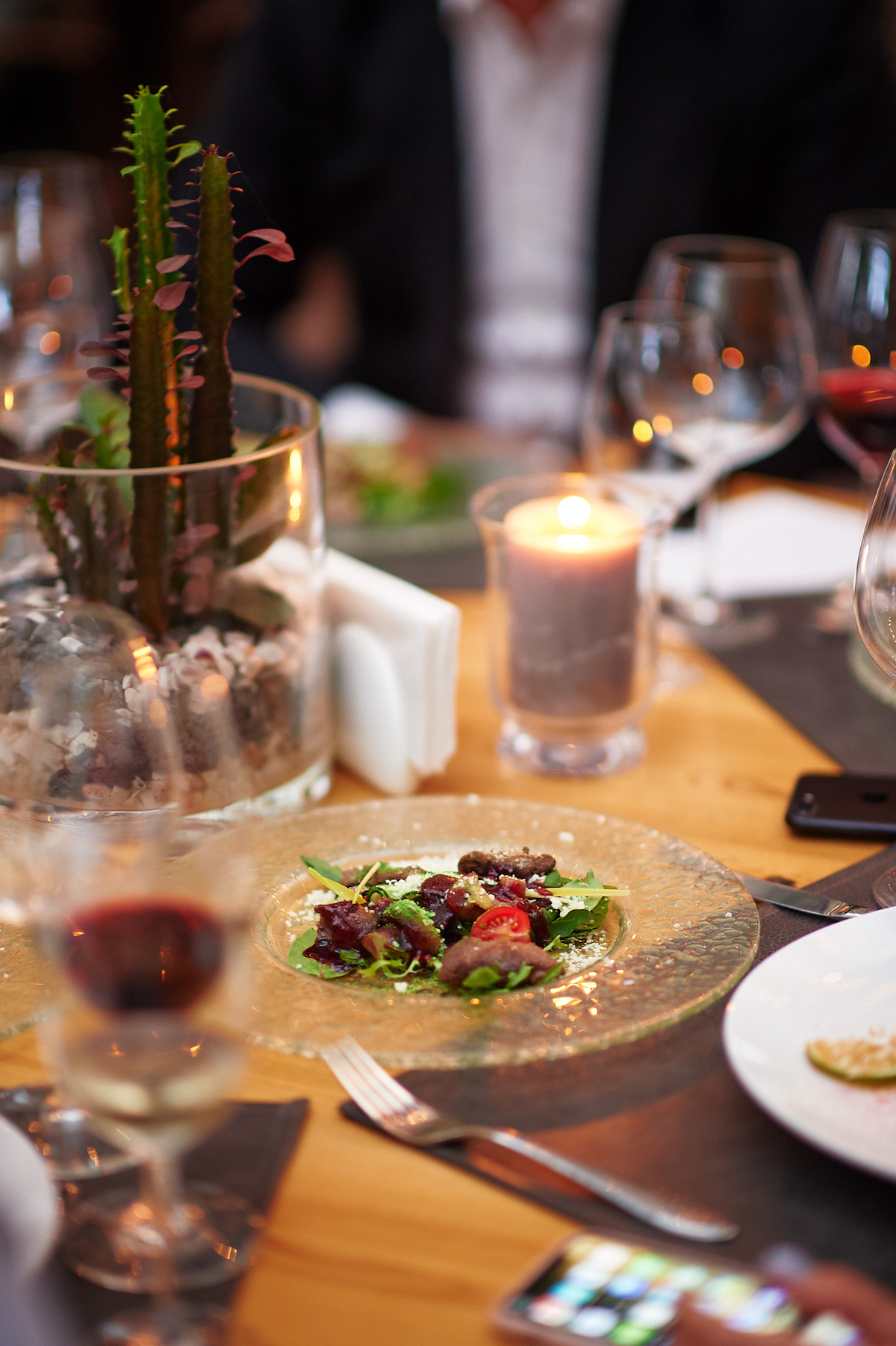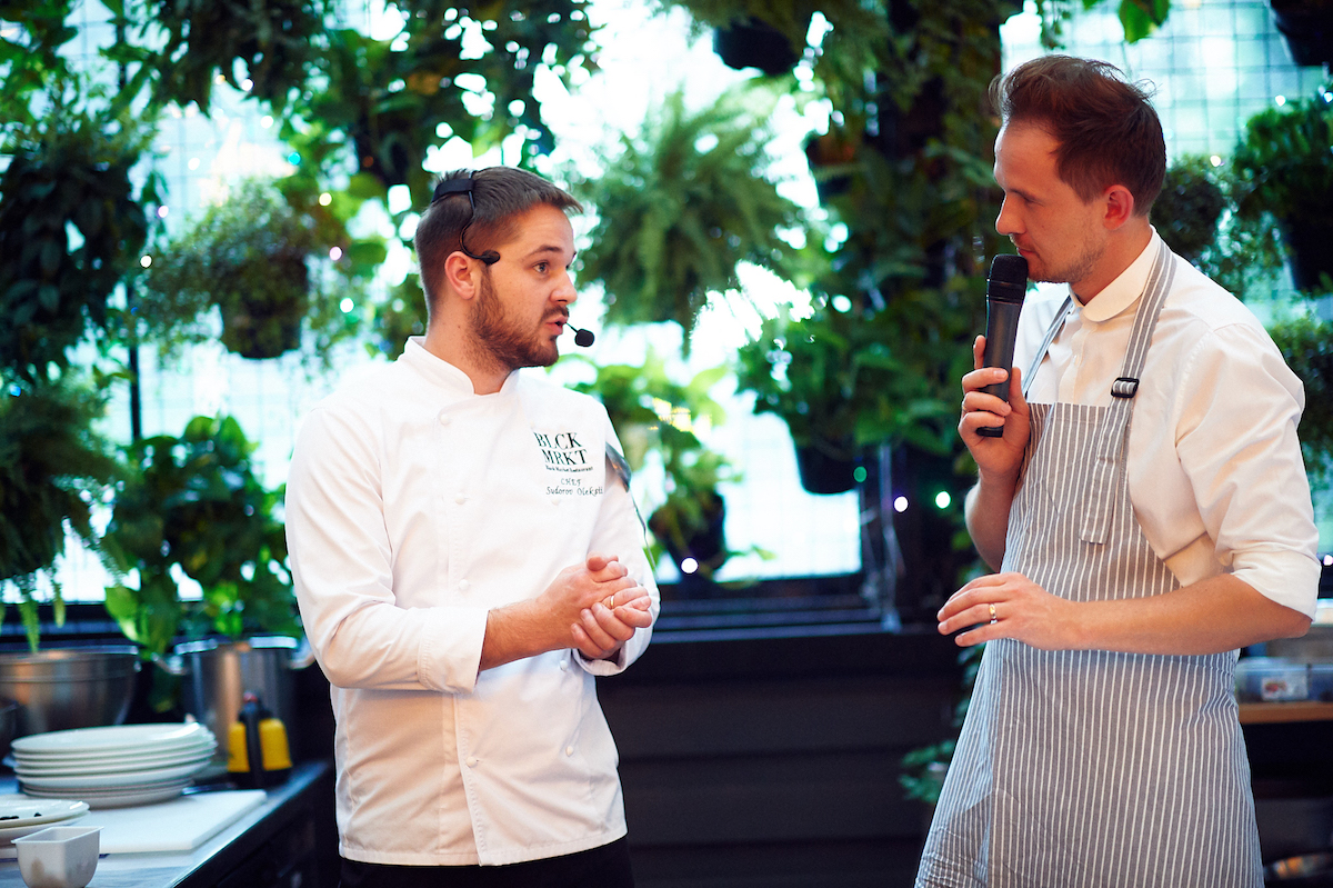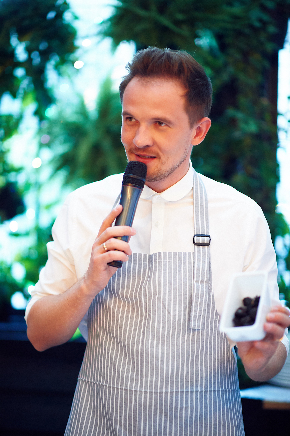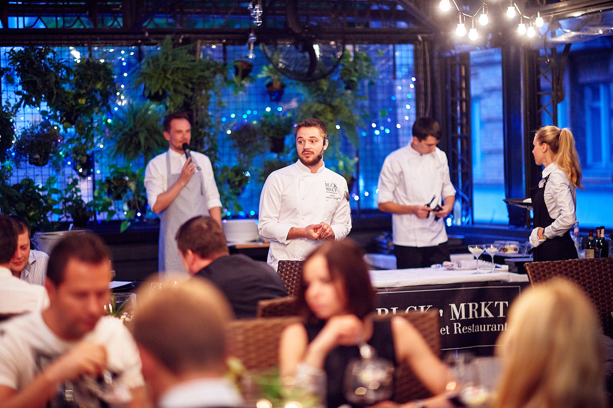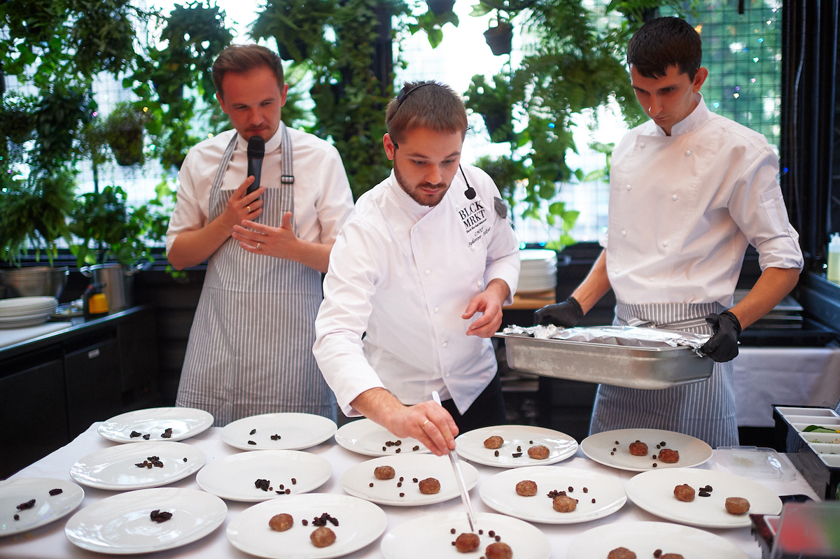 В ресторане Black Market прошел эногастрономический ужин CHEF’S TABLE от Алексея Сидорова. Самые смелые идеи шеф-повар воплотил в ужине из пяти блюд с бизоном, диким карпом, олениной и бараниной. Как и полагается на закрытом ужине с шефом, Алексей лично встречал гостей и с удовольствием рассказывал об особенностях и новаторствах блюд этого вечера.