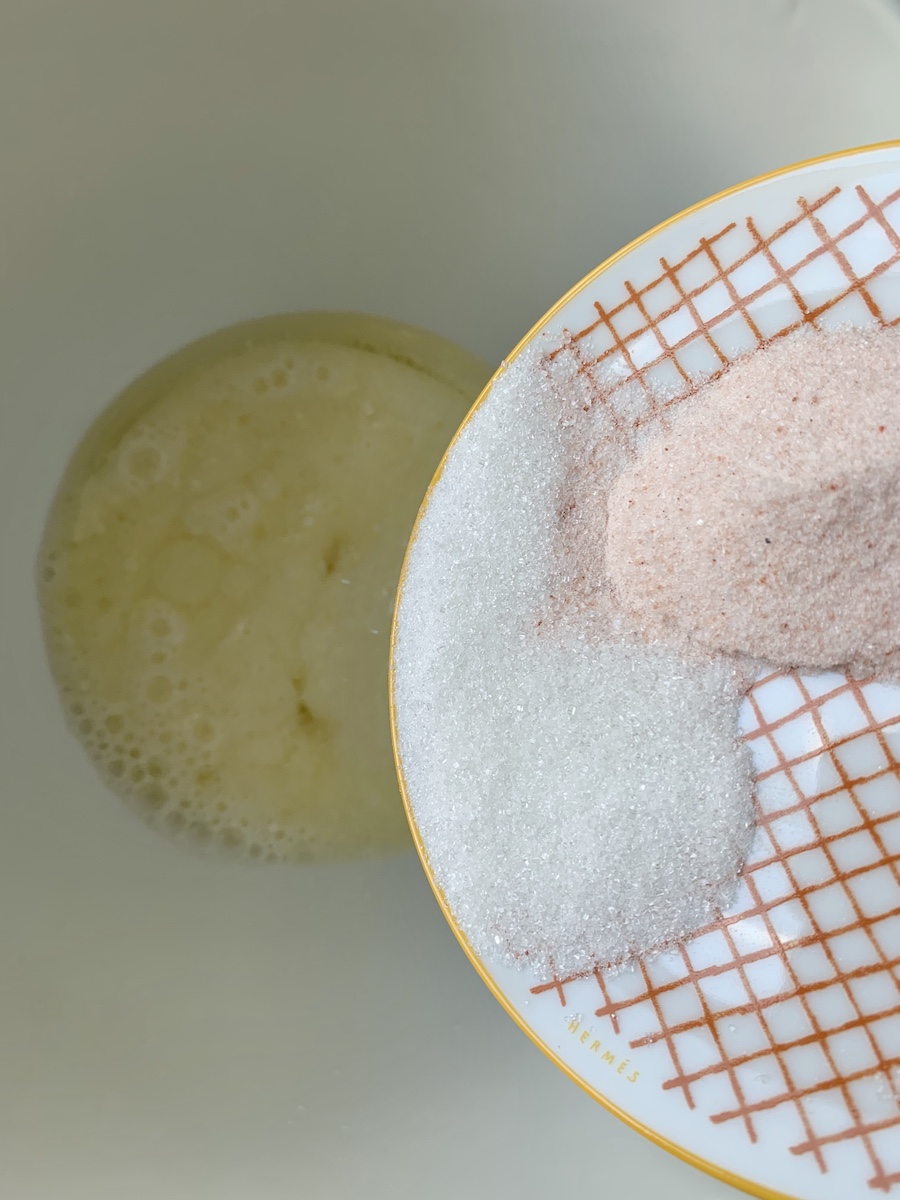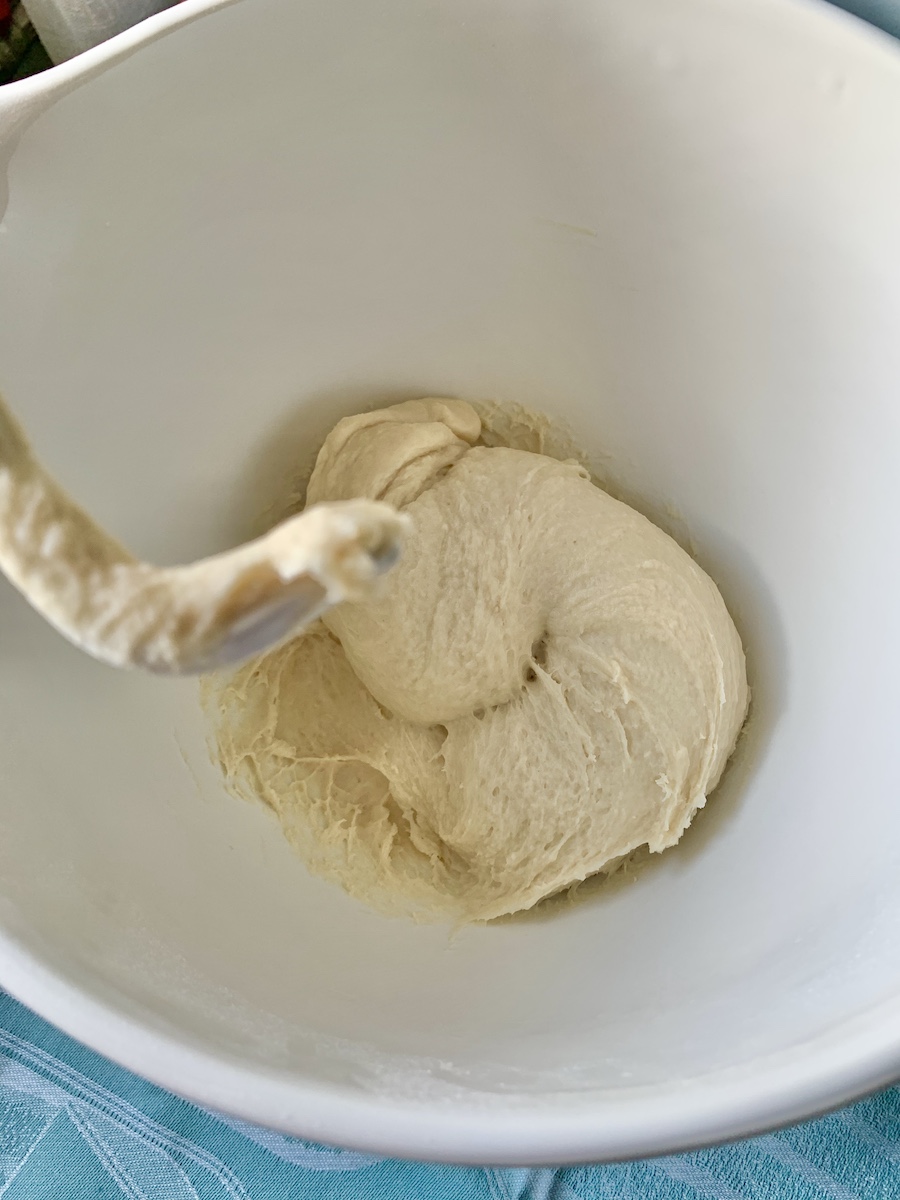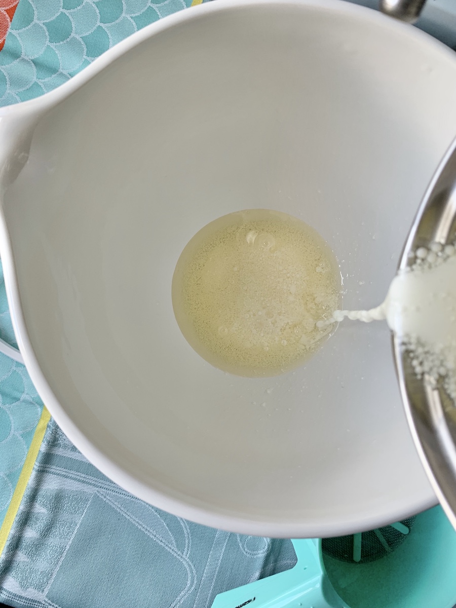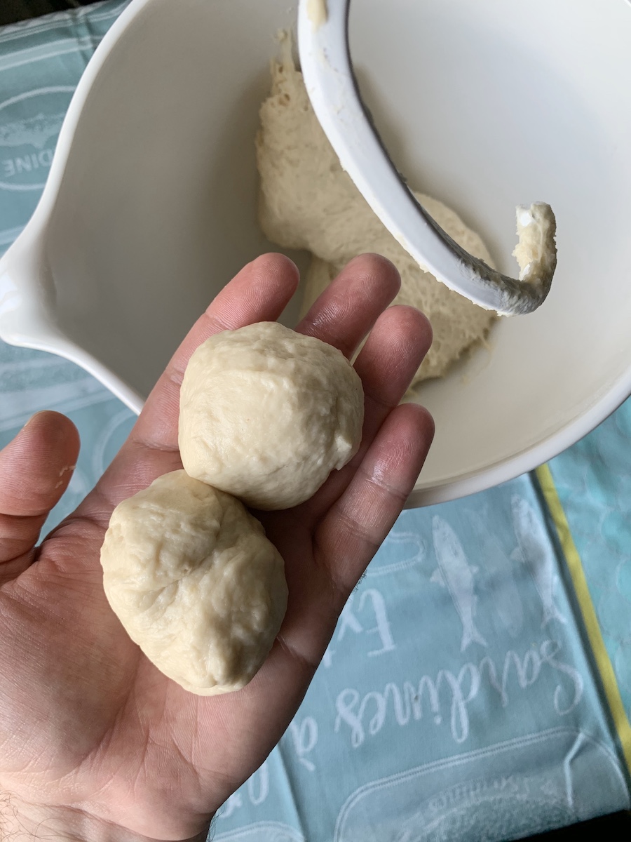 Смешать молоко и растительно масло, подогреть до 40 градусов. В чаше кухонного комбайна смешать молоко, масло, соль, сахар, дрожжи. Не перемешивая, накрыть полотенцем и оставить на 10 минут. Как только дрожжи увеличатся в объеме, добавить 500 г просеянной муки и помощью насадки-крюка вымешивать тесто в течение 10 минут на минимальной скорости. Далее накрыть тесто полотенцем и оставить на час, чтобы оно поднялось.