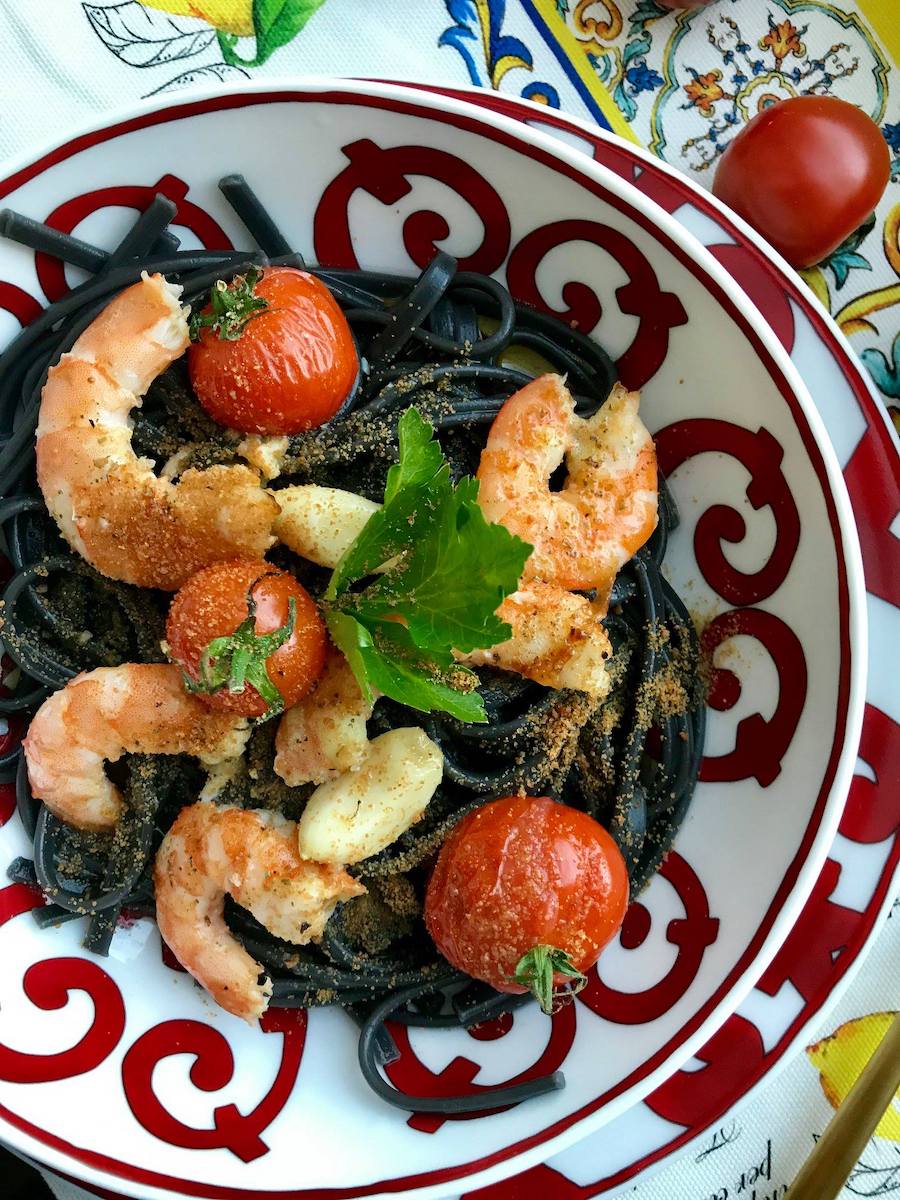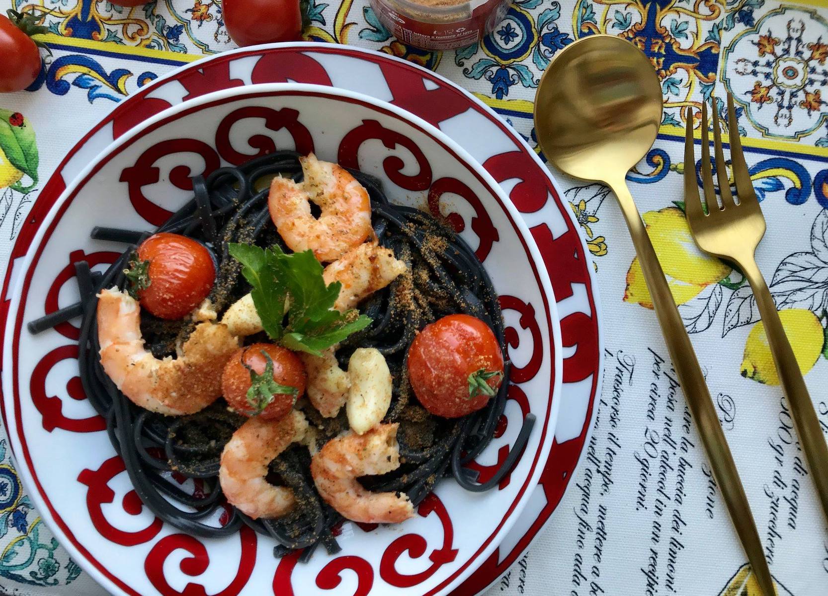 Рецепт выходного дня: Черная паста с креветками и боттаргой