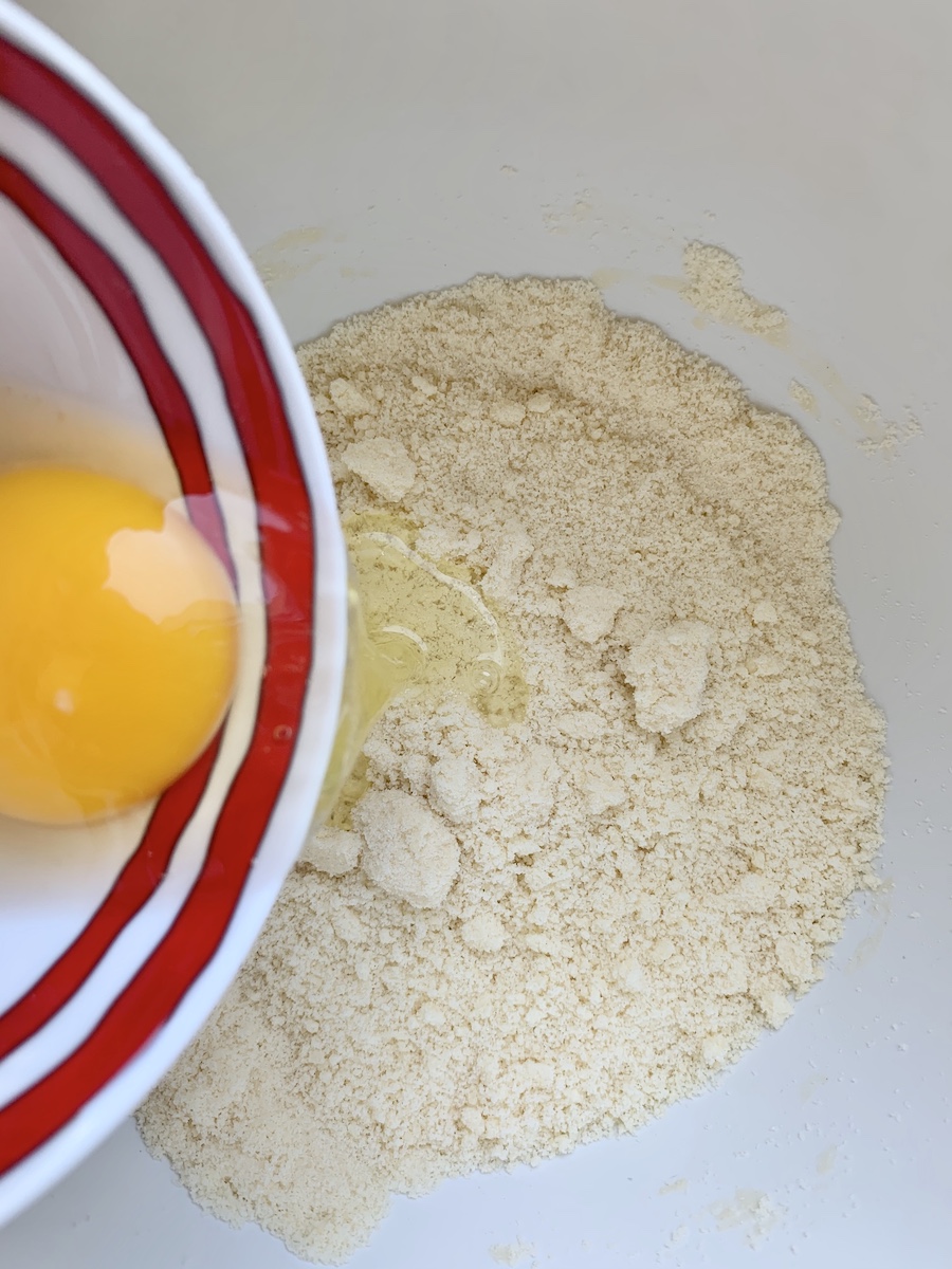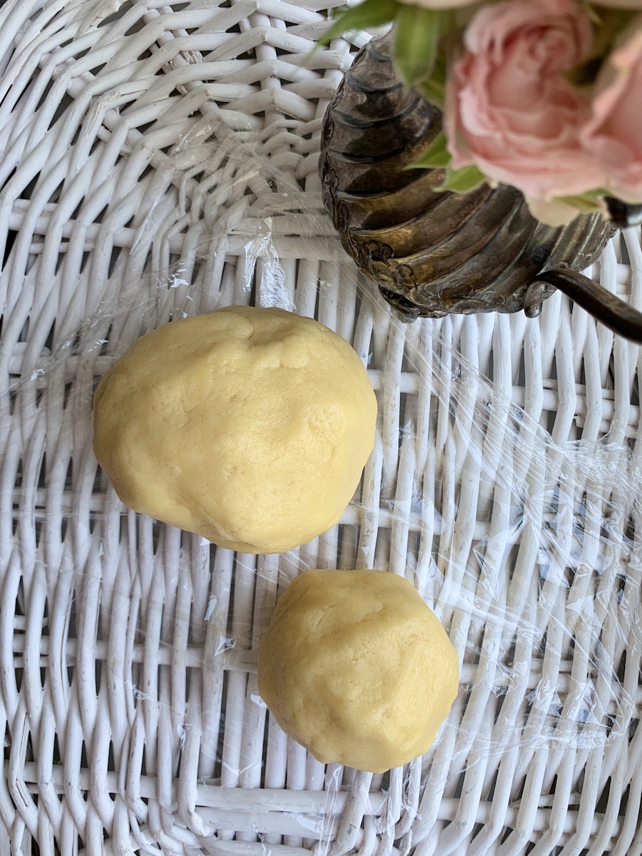 Духовку разогреть до 180 градусов. Формы предварительно смазать маслом. В чашу комбайна просеять муку, добавить сахар, разрыхлитель и соль. Масло нарезать кубиками и положить к остальным продуктам. С помощью насадки для песочного теста начать процесс перемешивания на небольшой скорости. Как только масса станет однородной и похожей на мокрый песок, добавить яйцо, перемешивать 3 минуты до образования гладкого теста. Тесто разделить в пропорции 1/3 и 2/3, скатать в шар и завернуть в пленку. Меньшую часть отправить в морозилку, большую – в холодильник.
