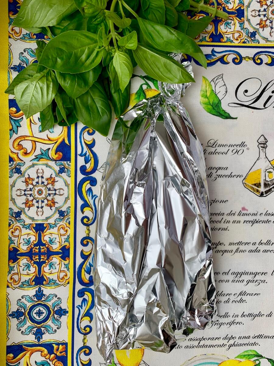 Филе дорады выложить на лист фольги, сбрызнуть трюфельным маслом и чуть посолить, сверху выложить половину овощей и посыпать перцем или пряностями. Завернуть фольгу в конверт и отправить в духовку на 20 минут при 180 градусах.