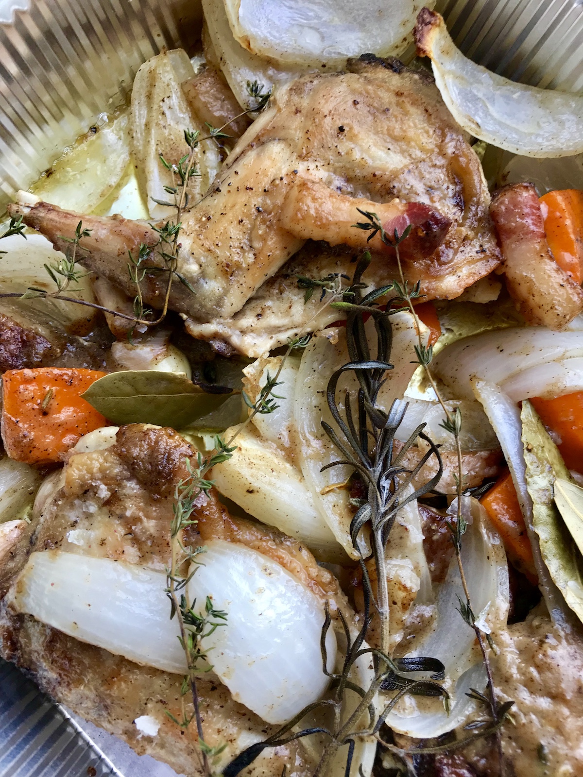 На улице уже повеяло первыми осенними холодами и хочется еды поуютнее. Французские ноты, кролик и белое сухое – лучшее, что можно придумать к выходным. Рецепт довольно простой и при этом изысканный.