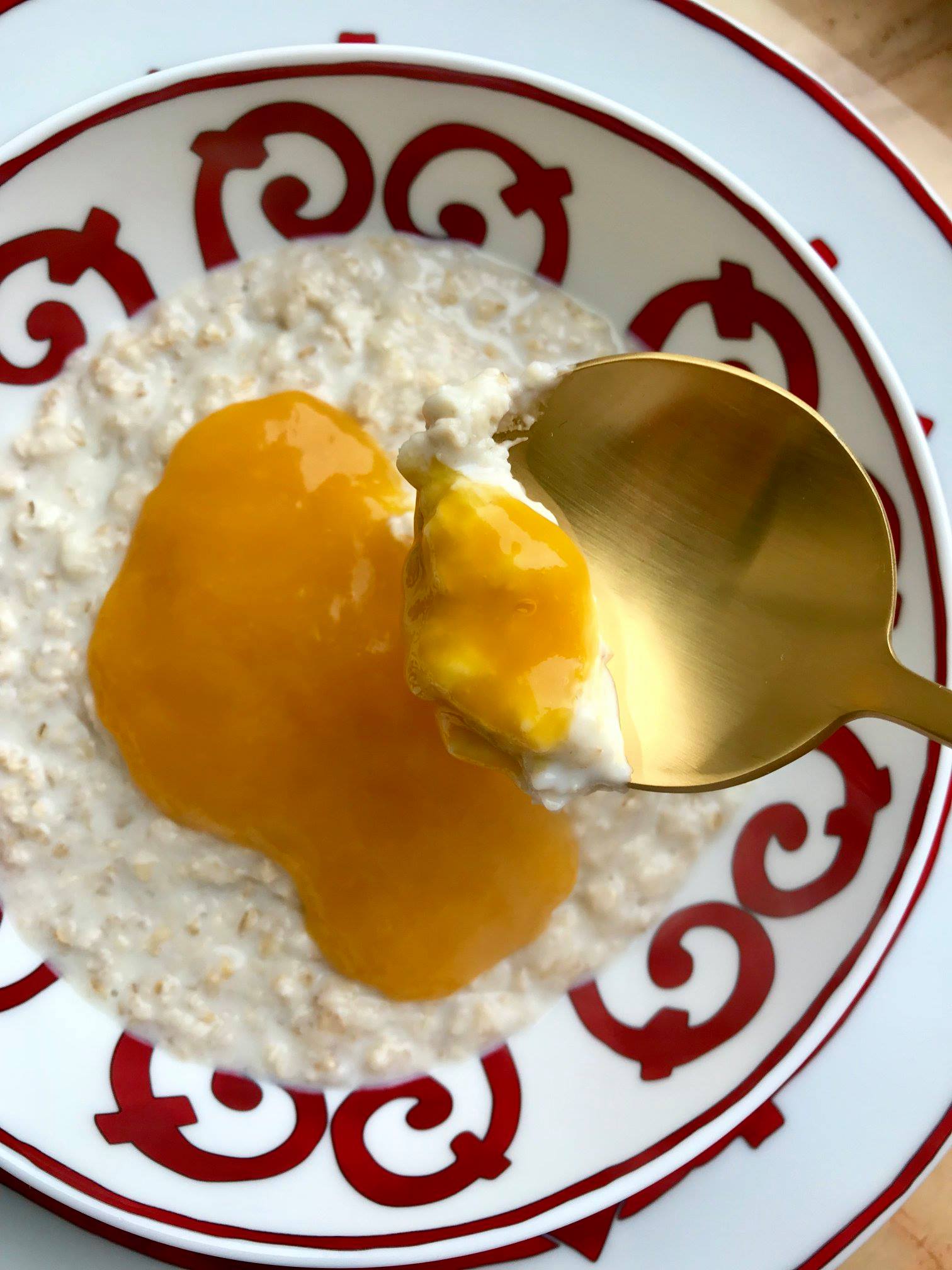 Некоторые ненавидят все эти утренние молочные каши еще с детства. Но, как ни странно, влюбиться в них возможно. Вот суперпростой рецепт овсянки. Секрета два: хорошее молоко и спелый плод манго. С последним проблема еще та! Спасение – моя подруга Стелла, которая в Доминикане обрабатывает спелые плоды, делает из них пюре и отправляет в шоковую заморозку -40. Далее на танкерах все приходит в Украину и распространяется по сетям. Я же храню эти «шайбочки» в контейнерах в морозильной камере. Это и готовый смузи, и основа для десертов, соусов и аккомпанемент к кашам.