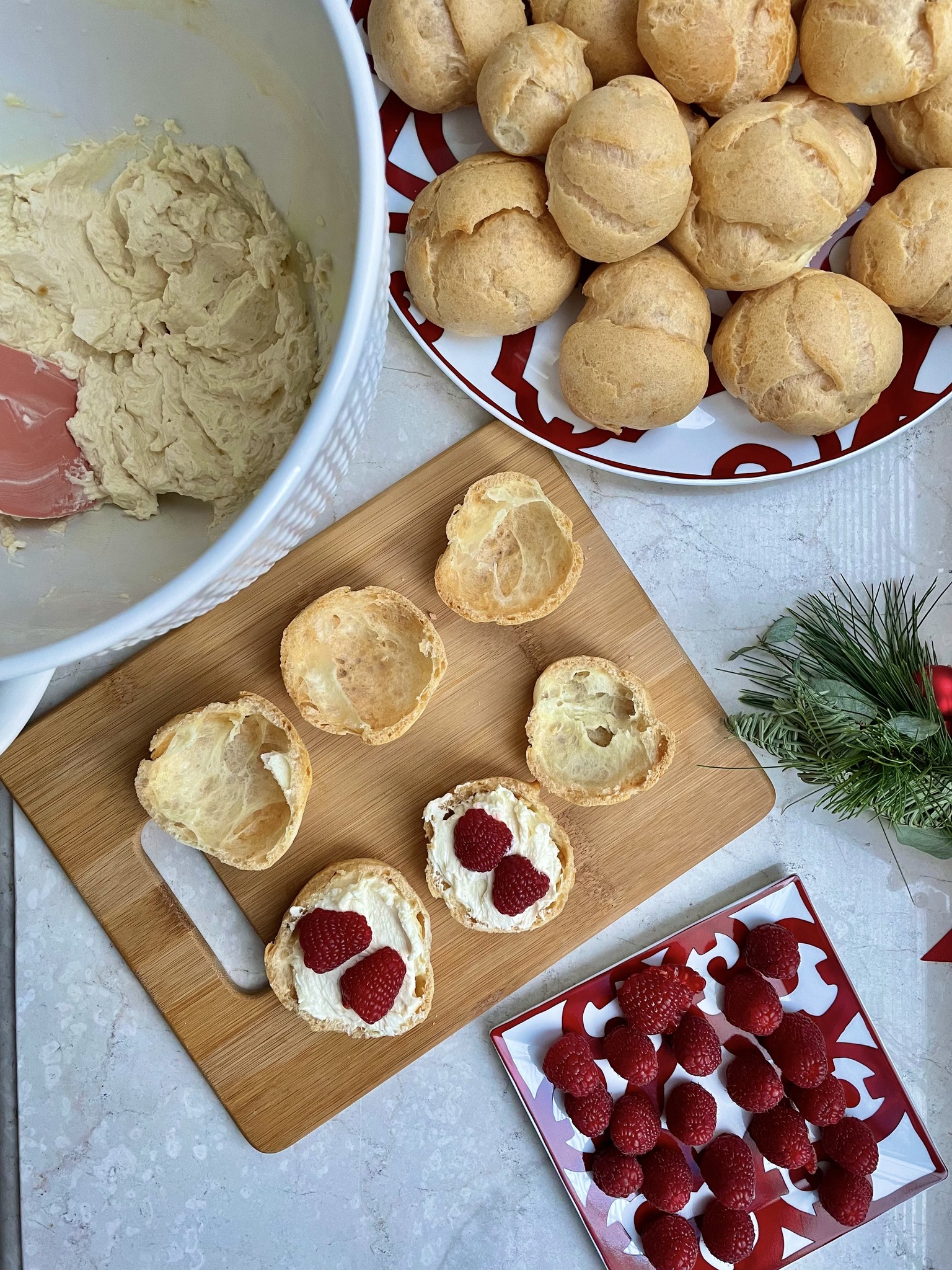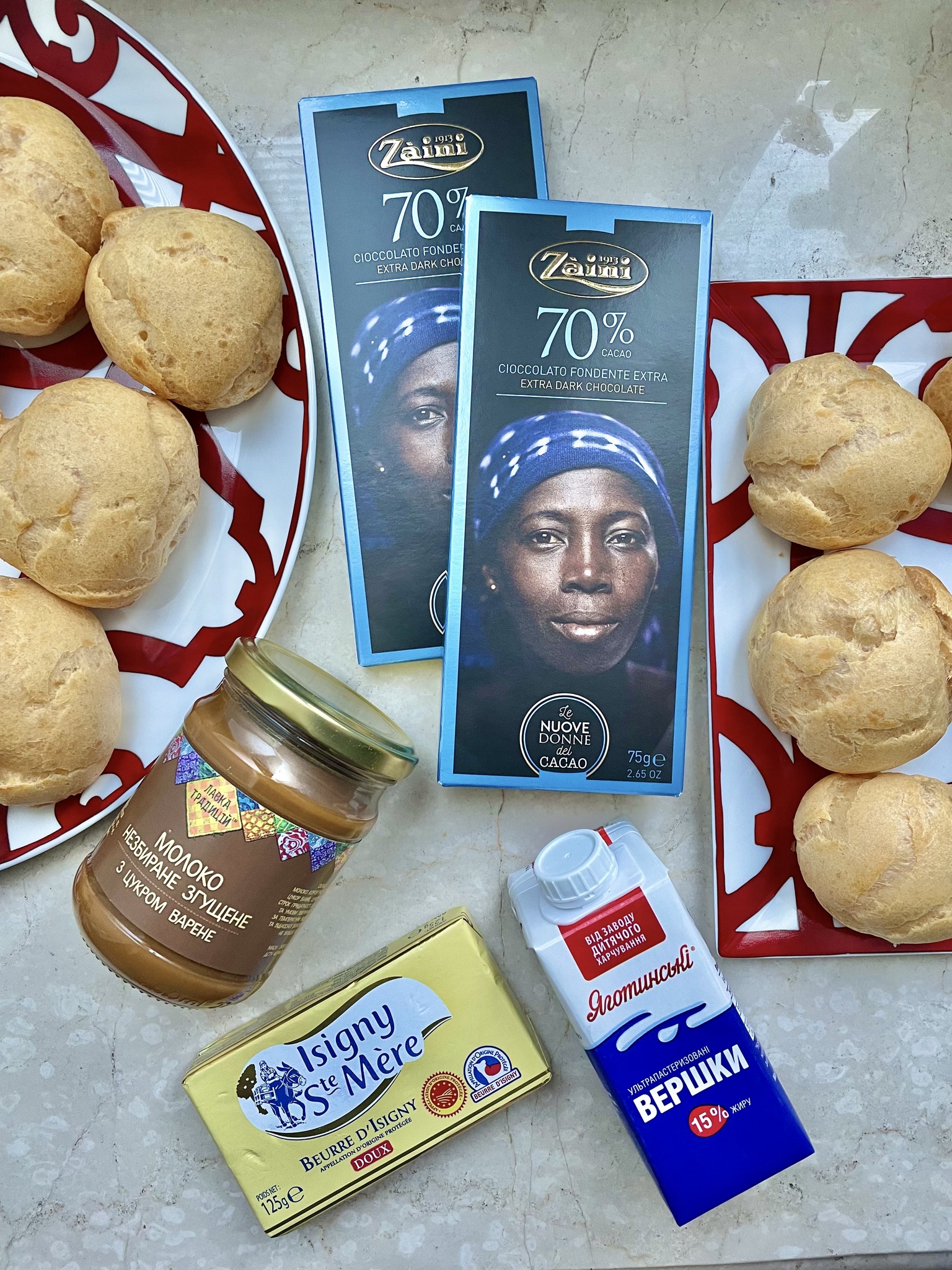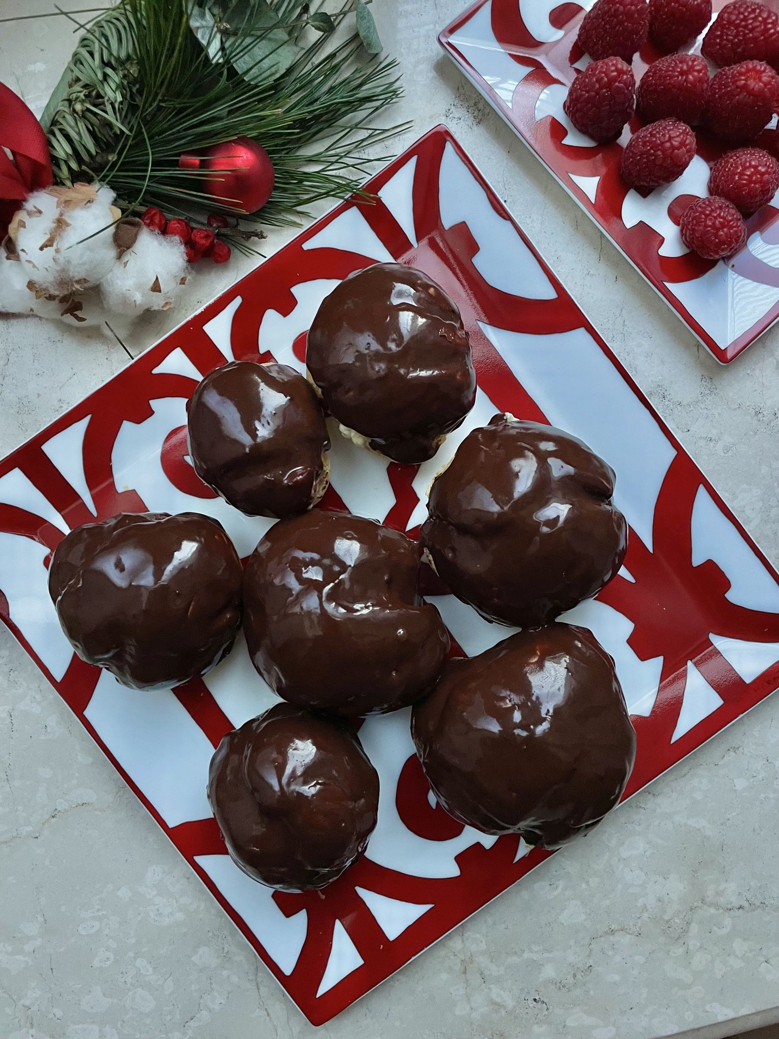 Спочатку я хотів приготувати крокембуш, конус або ялинку з профітролів, але потім передумав. Нехай будуть профітролі з найлегшого тіста зі свіжою малиною, щільним вершковим кремом і шоколадною глазур'ю.