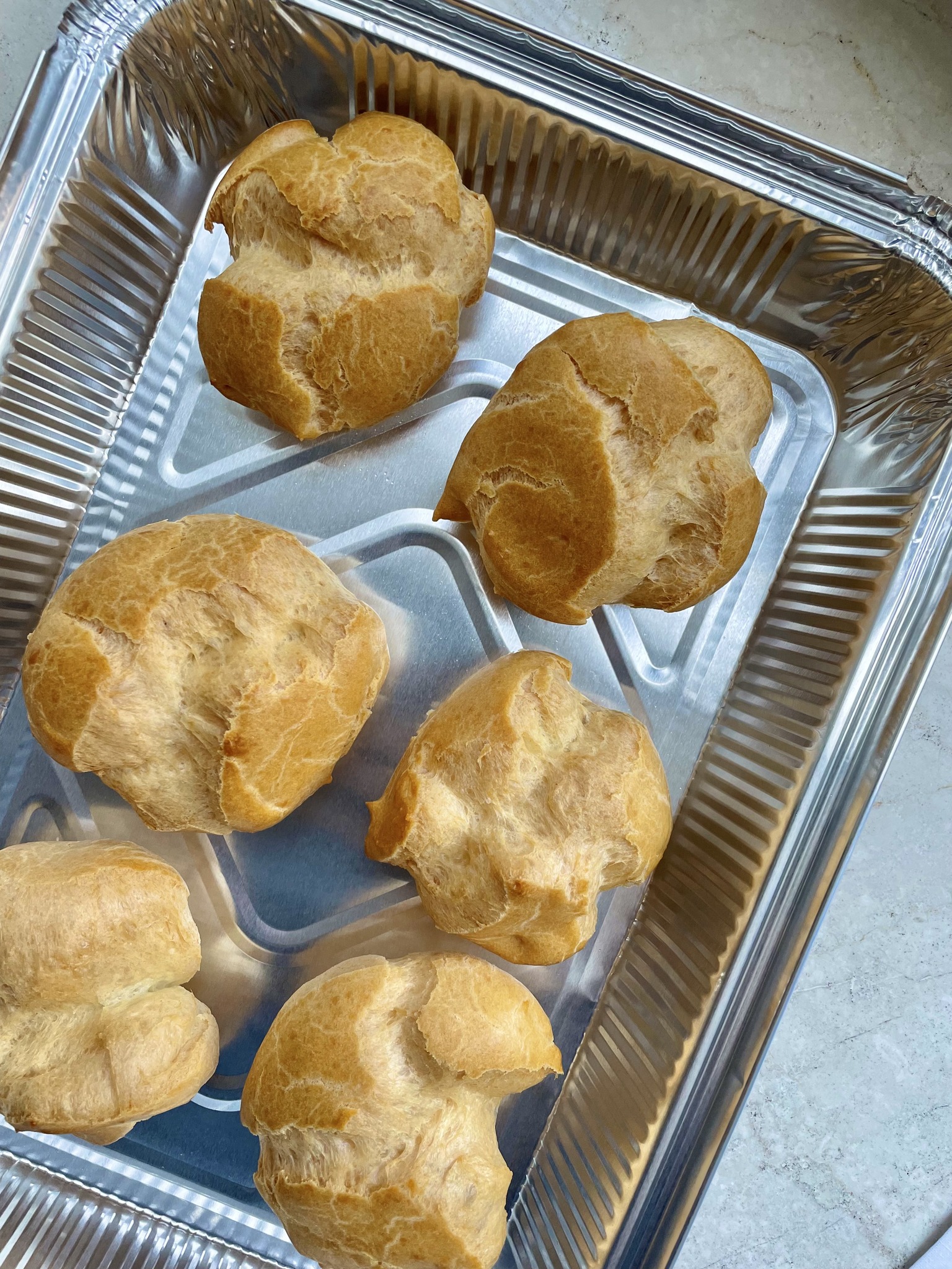 Духову шафу розігріти до 200 градусів. У сотейник з товстим дном влити воду, олію, додати сіль і цукор, довести до кипіння. У киплячу основу просіяти борошно, зменшити вогонь і швидко перемішати силіконовою лопаткою, розминаючи грудки. У результаті має вийти однорідне заварне тісто. Дати йому охолонути, перекласти в чашу контейнера й на невеликій швидкості перемішувати, додаючи по одному яйця. З готового тіста сформувати кульки діаметром 3 см (або використовувати кондитерський мішок) відразу у форму для випічки. Відправити форму в духову шафу на 15 хвилин, потім зменшити температуру до 180 градусів і випікати ще 35-40 хвилин. У підсумку повинні вийти міцні порожнисті кульки.