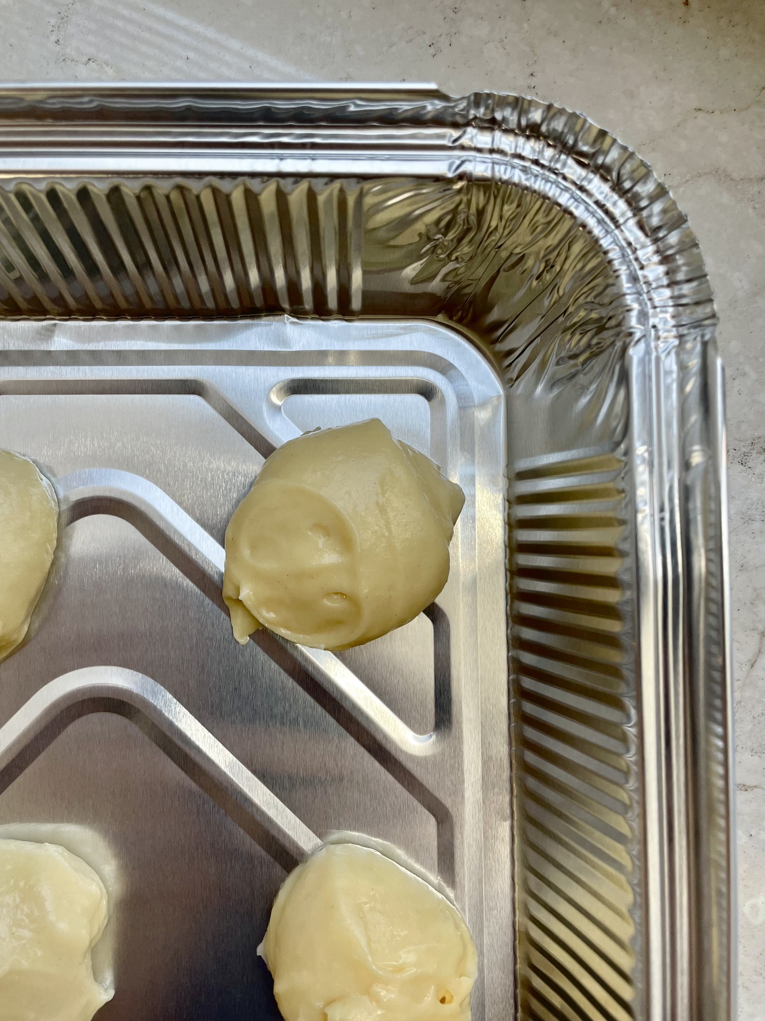 Отже, для тіста на 30 профітролів беремо: 200 мл води, 100 мл соняшникової рафінованої олії, чайну ложку цукру, щіпку солі, 160 г борошна, 5 яєць.
