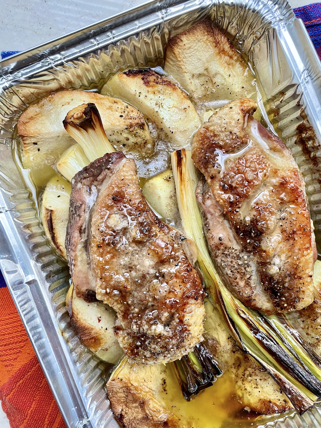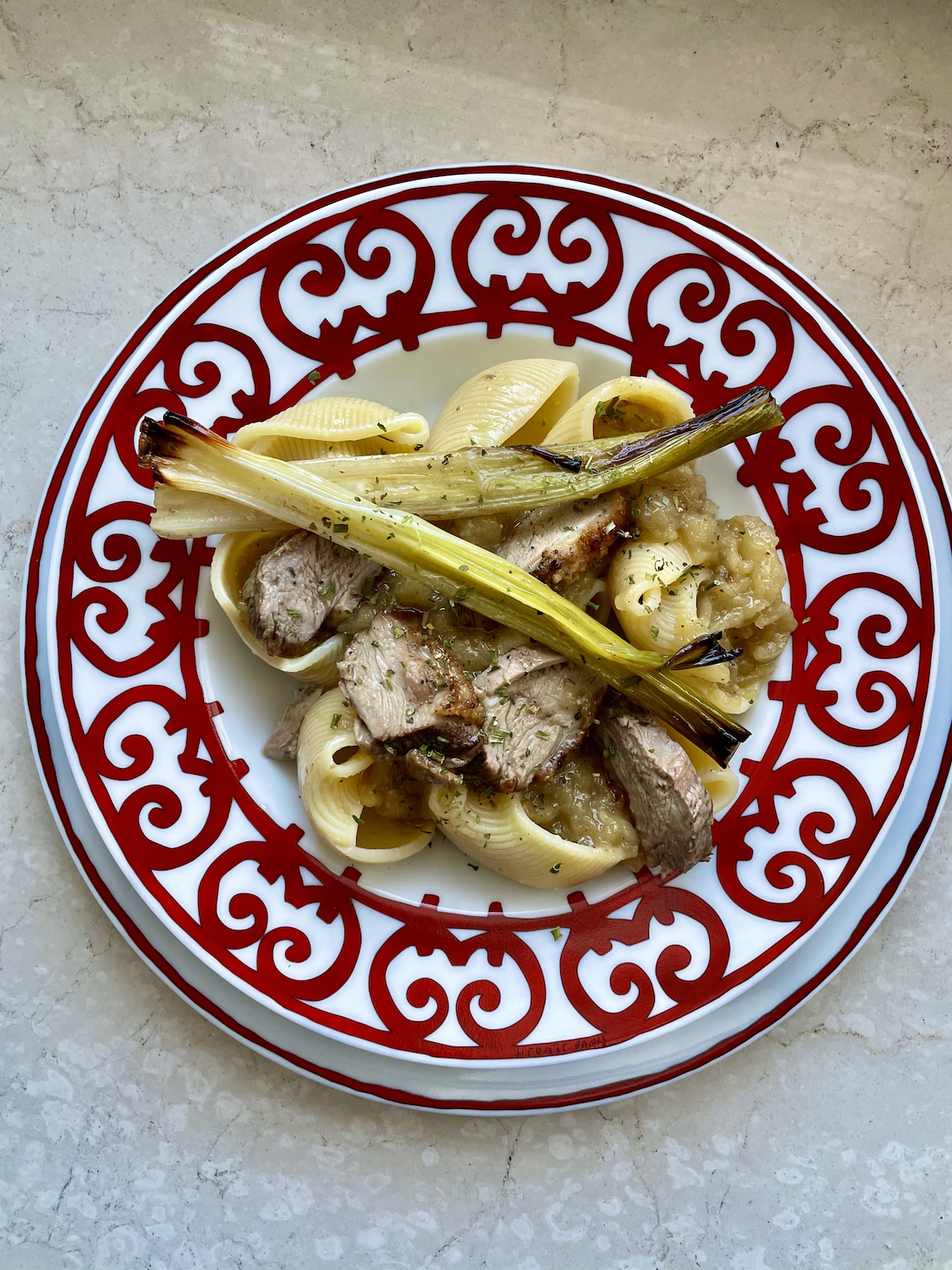 Мой новый семейный рецепт – спонтанный и прекрасный. Не удивительно, что паста может подружиться с уткой и запеченными яблоками. Сладость сорта «Голден делишез» делает свое дело, а утиное филе – всегда хорошая идея.