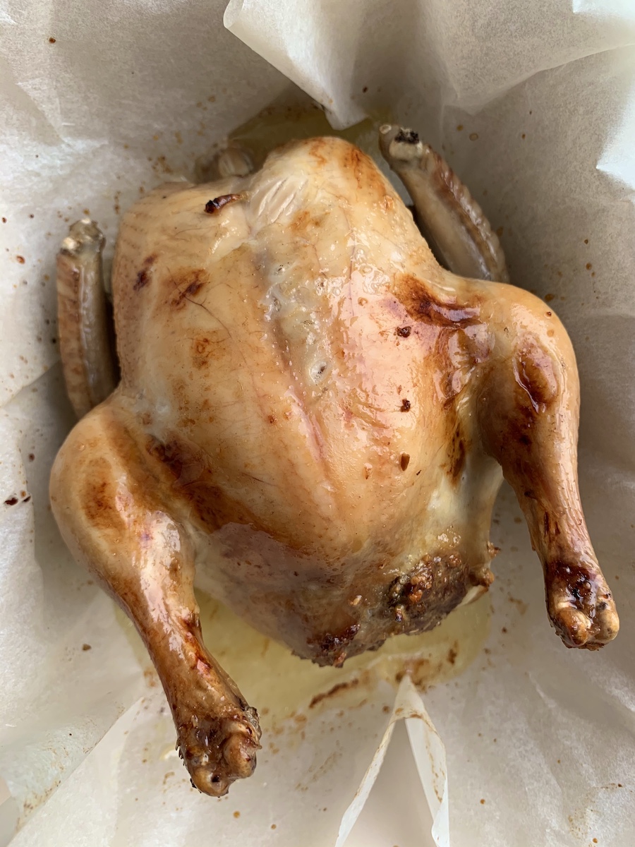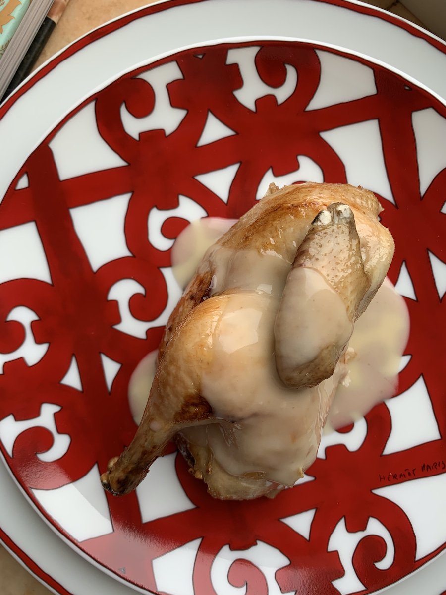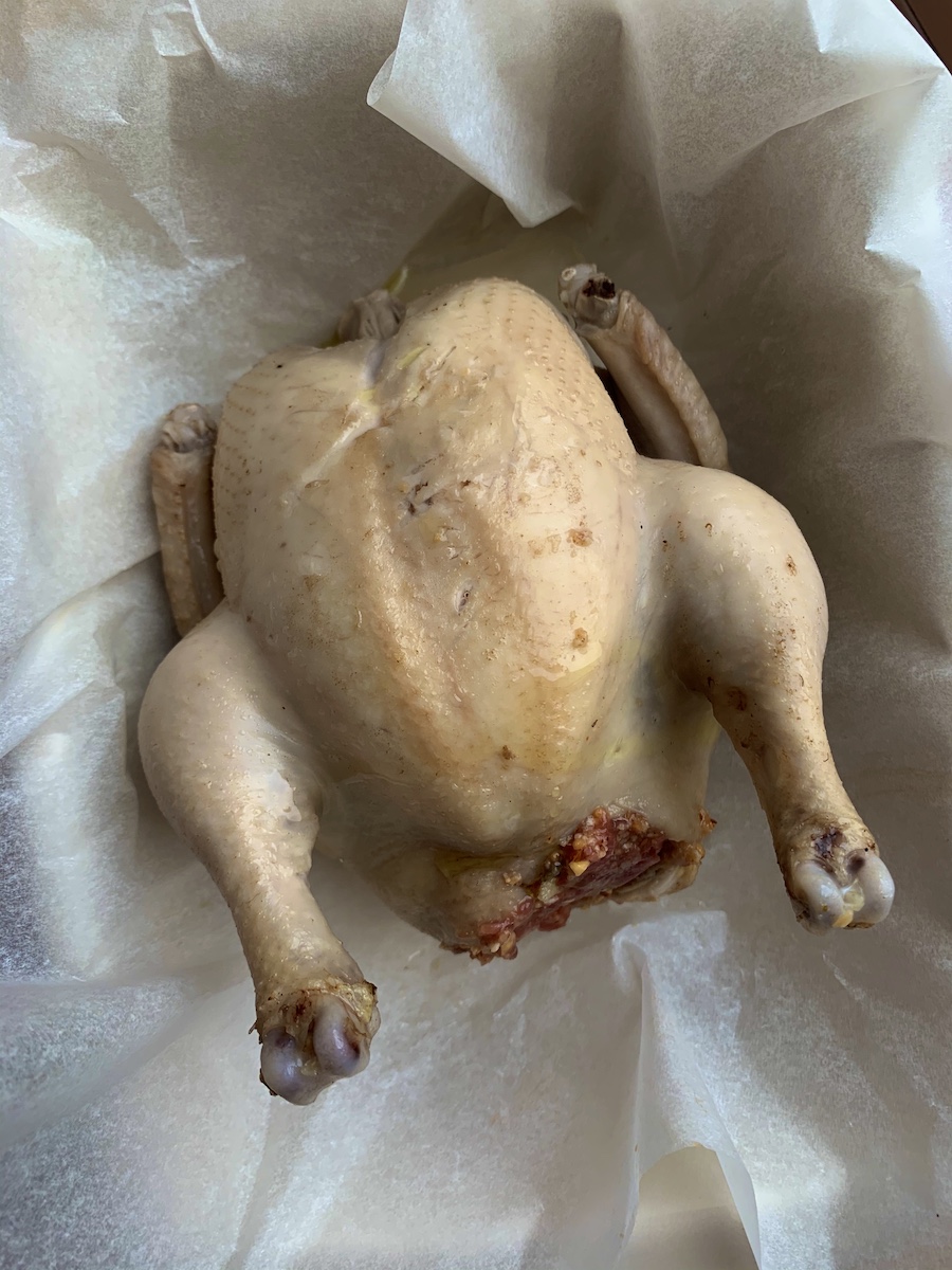 Я взял не большую курицу, как в оригинальном рецепте, а молодых цыплят. С ними проще справиться и удобнее подать. Фисташки также можно заменить кешью и миндалем.