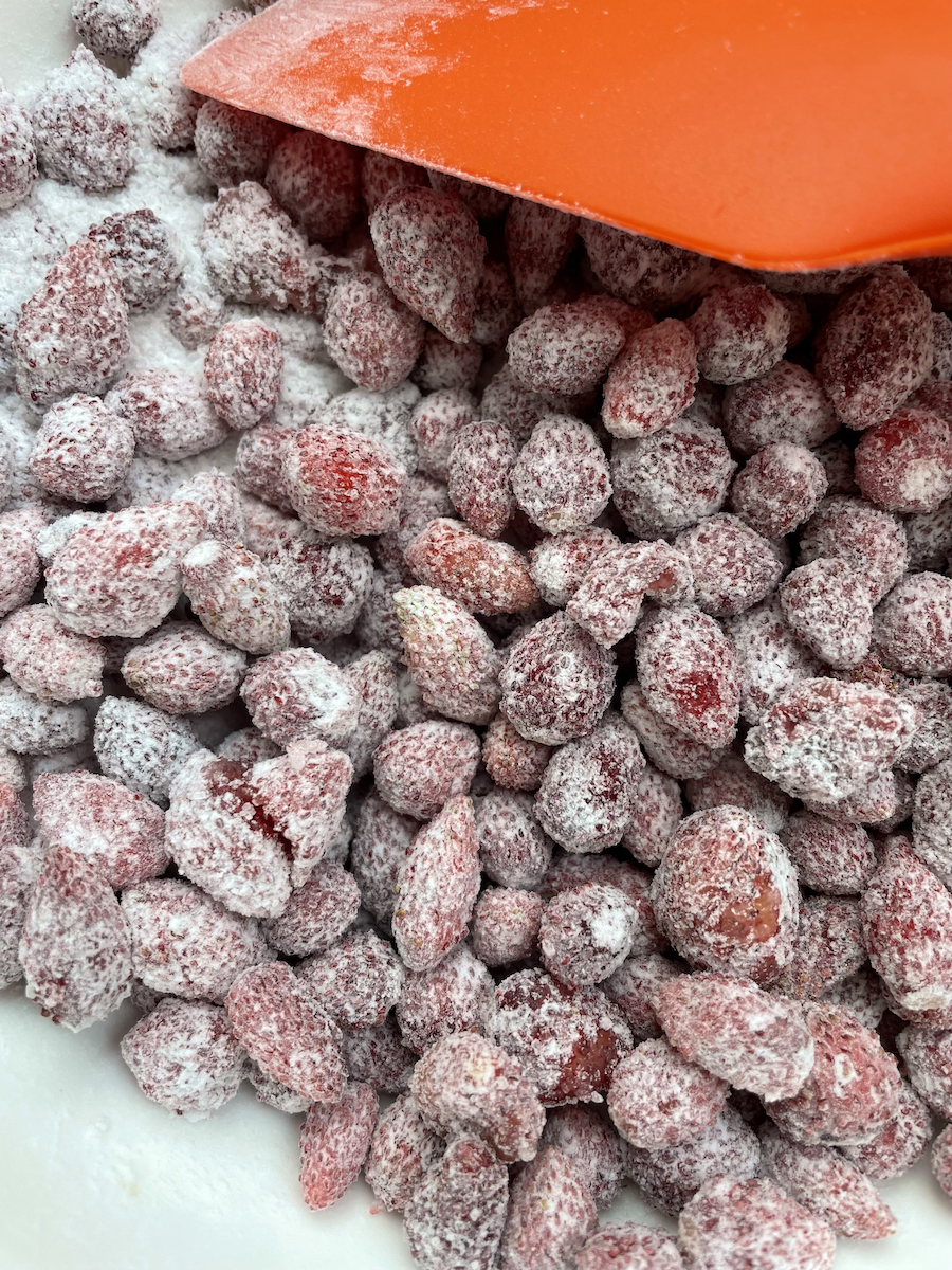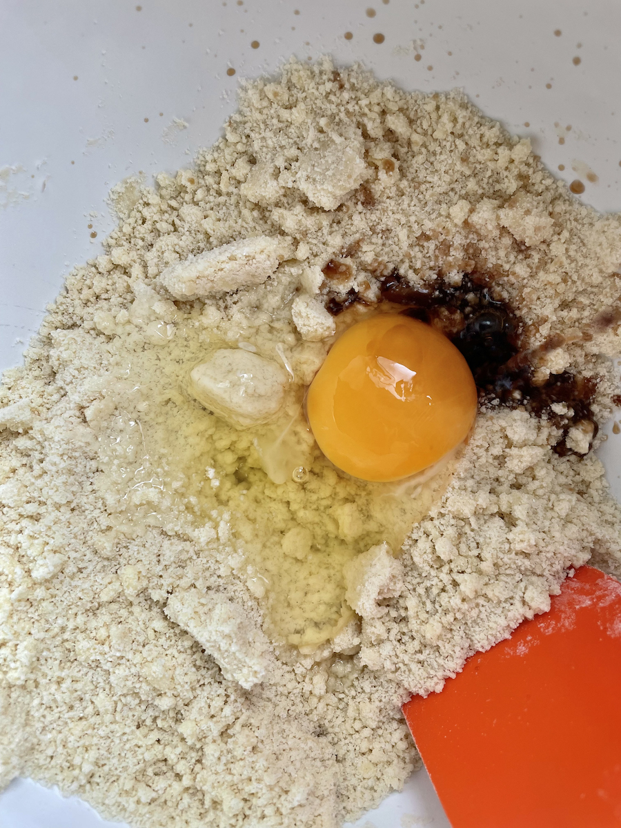 Духовку разогреть до 180 градусов. В чаше комбайна смешать муку, соль, сахар, разрыхлитель, хорошо перемешать. Добавить нарезанное на кубики холодное масло и снова перемешать. Как только тесто станет похоже на мокрый песок, добавить яйцо и ваниль, хорошо вымесить. Тесто разделить на 2 части – 1/3 и 2/3. Треть положить на 15 минут в морозильную камеру, остальное – на полку холодильника. Ягоды переложить в миску, добавить сахар и крахмал, хорошо перемешать.