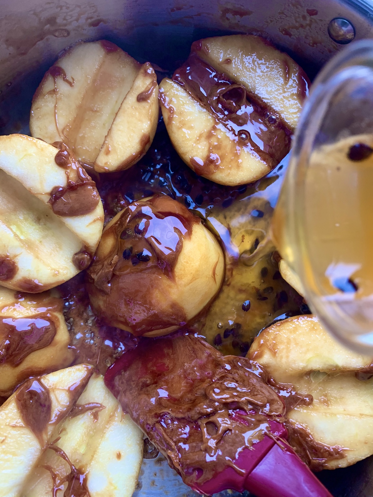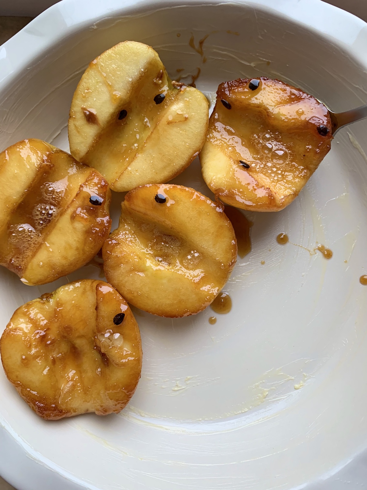 Выпекать при 180 градусах 15 минут. Достать форму, дать немного остыть. Накрыть форму тарелкой для подачи и перевернуть – пирог останется на тарелке яблоками кверху. Подавать с мороженым.