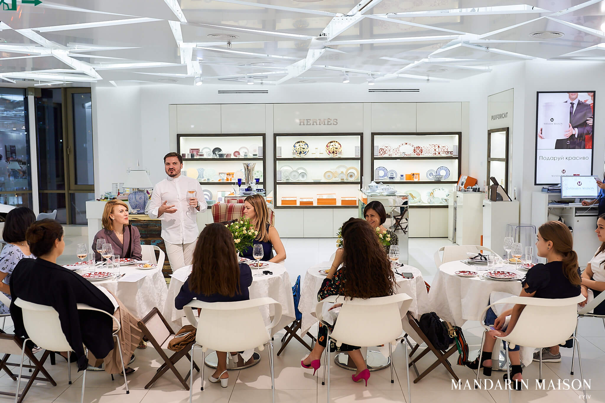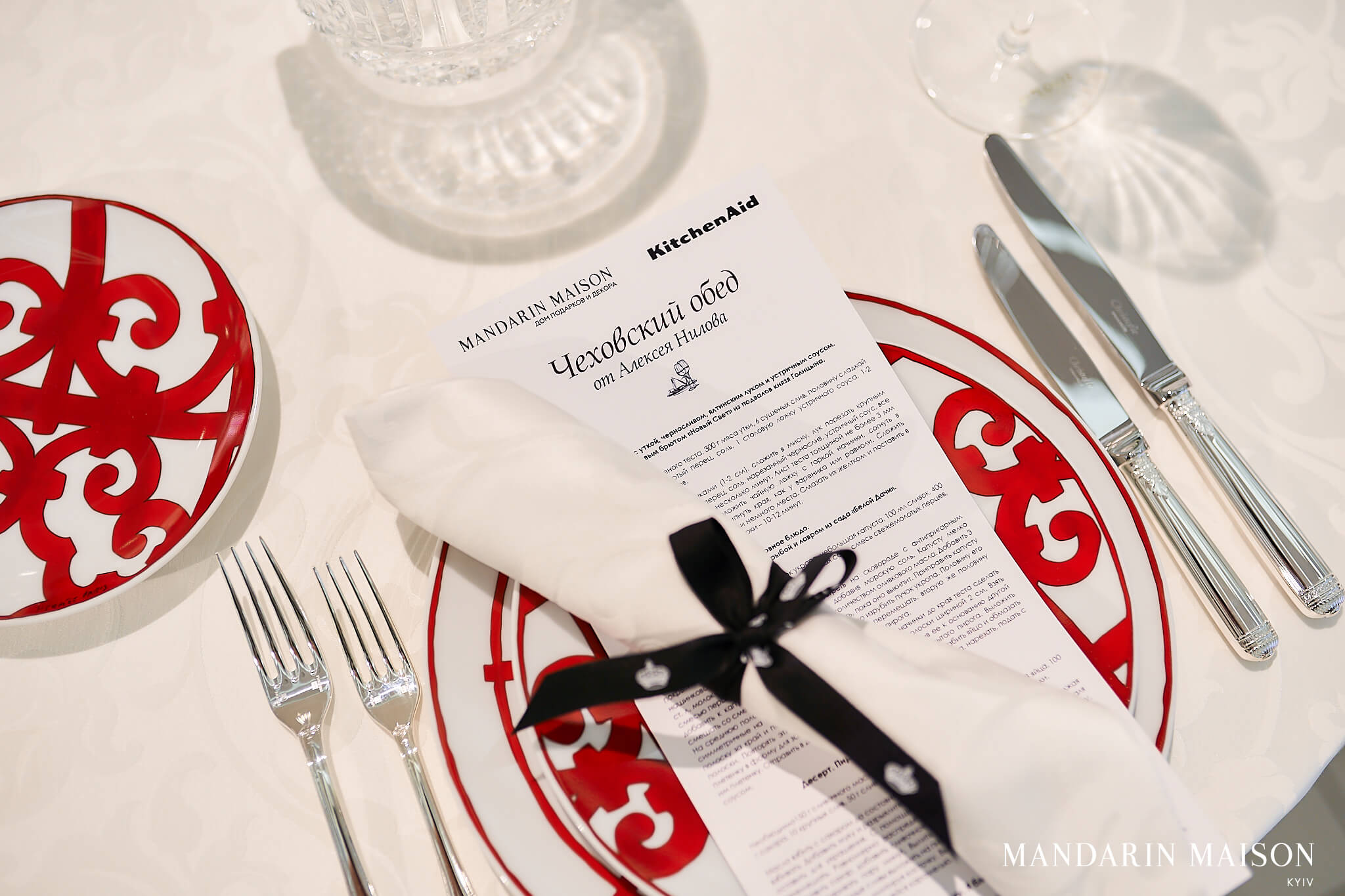 11 сентября в Mandarin Maison прошел «Чеховский обед». Алексей Нилов, главный редактор L’Officiel Hommes и автор проекта Gourmet, пригласил гостей в атмосферу ялтинской Белой дачи Антона Чехова. Вечер прошел в формате мини-лекции и мастер-класса. Были поданы пирожки с уткой и ялтинским луком, знаменитый чеховский капустник с белой рыбой и миндальный пирог со сливами.