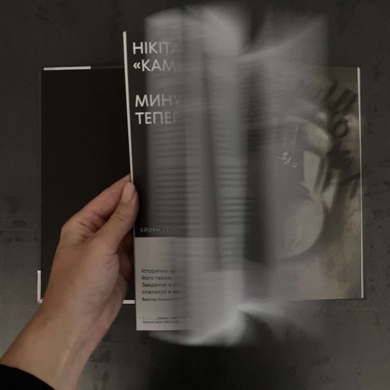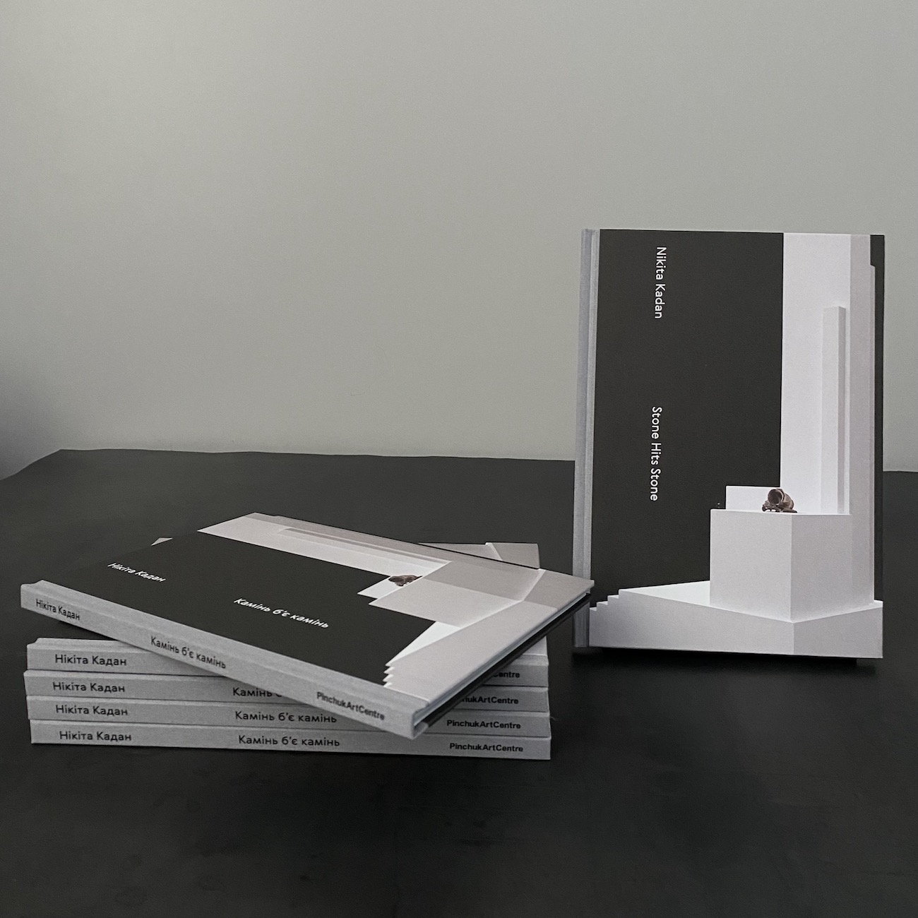 PinchukArtCentre видав книжку «Камінь б'є камінь» з нагоди однойменної персональної виставки Нікіти Кадана, організованої в контексті діяльності Дослідницької платформи PinchukArtCentre. Вона складається з текстів Уїлєама Блейкера, Бйорна Гельдхофа, Катерини Міщенко та Катерини Яковленко, які розповідають про художню практику Нікіти Кадана та про роботи, представлені на виставці, а також розкривають теми історії та пам'яті, мистецької інтерпретації минулого й насилля та актуалізації авангардної спадщини сьогодення.