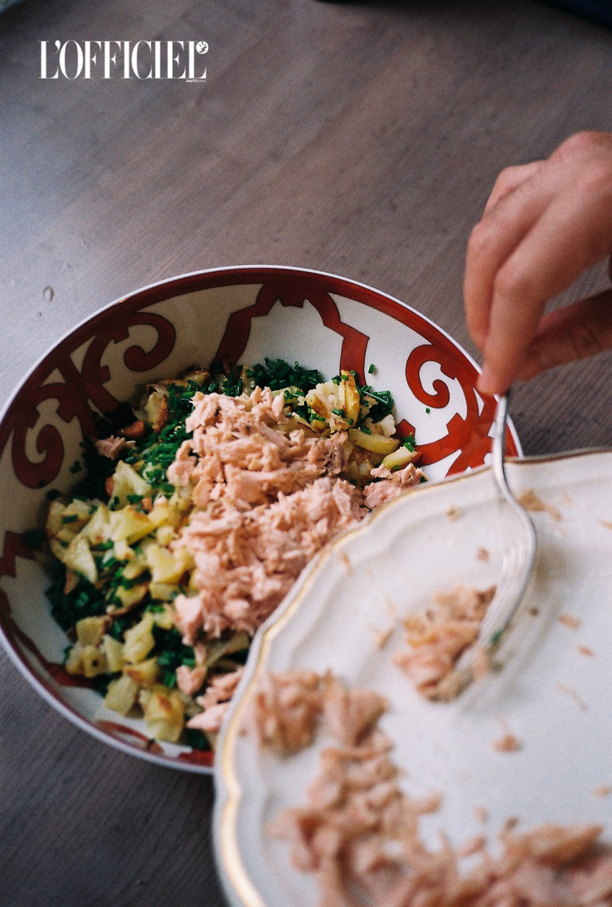 Дрібно порубати шнитт-цибулю і все добре перемішати. Заправляйте майонезом безпосередньо перед подачею.