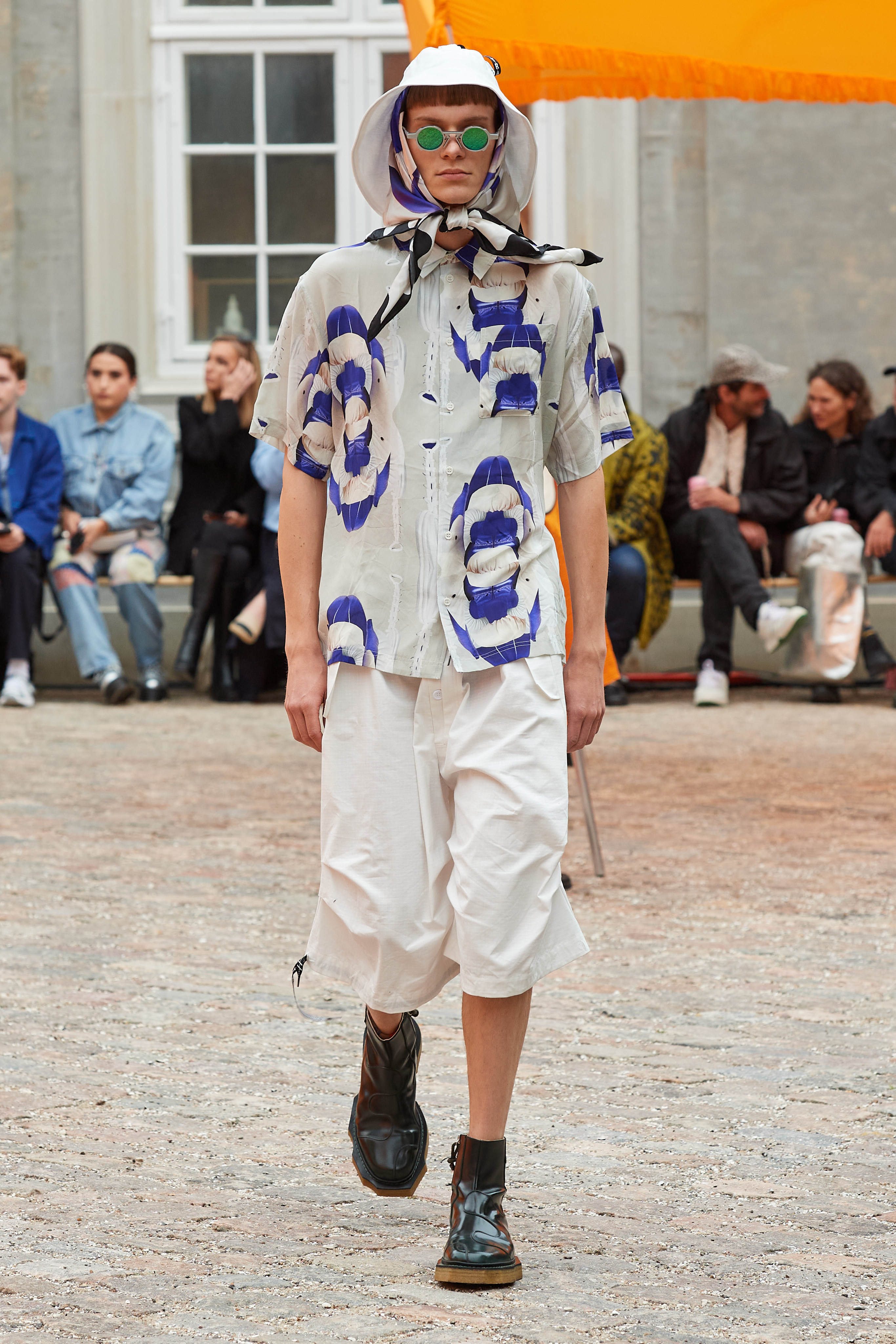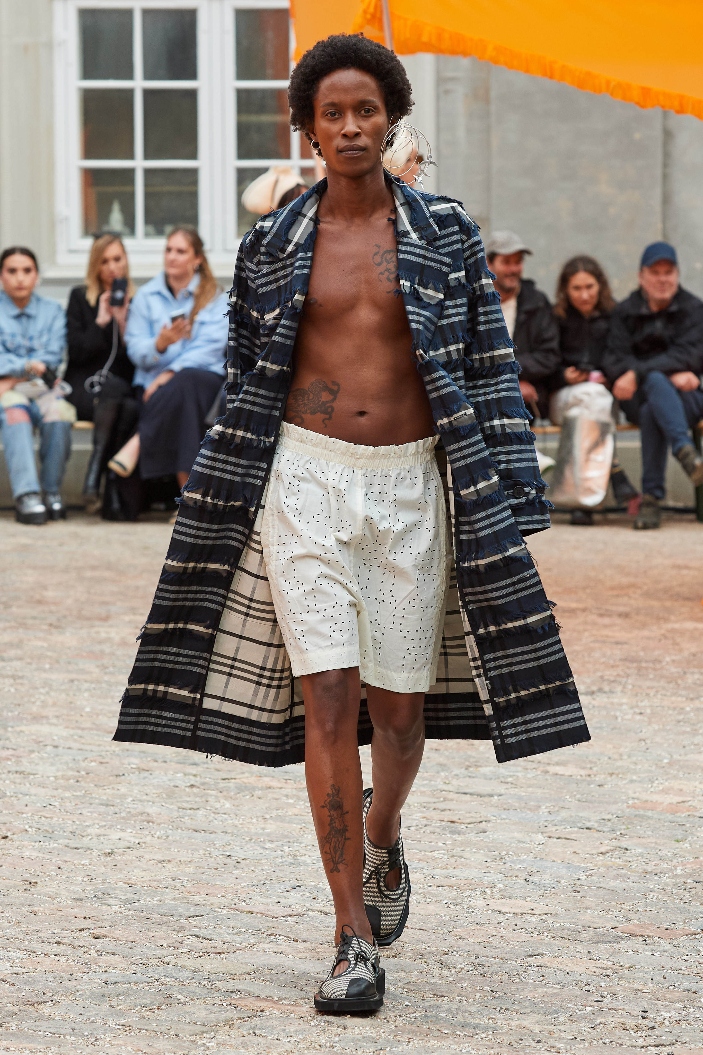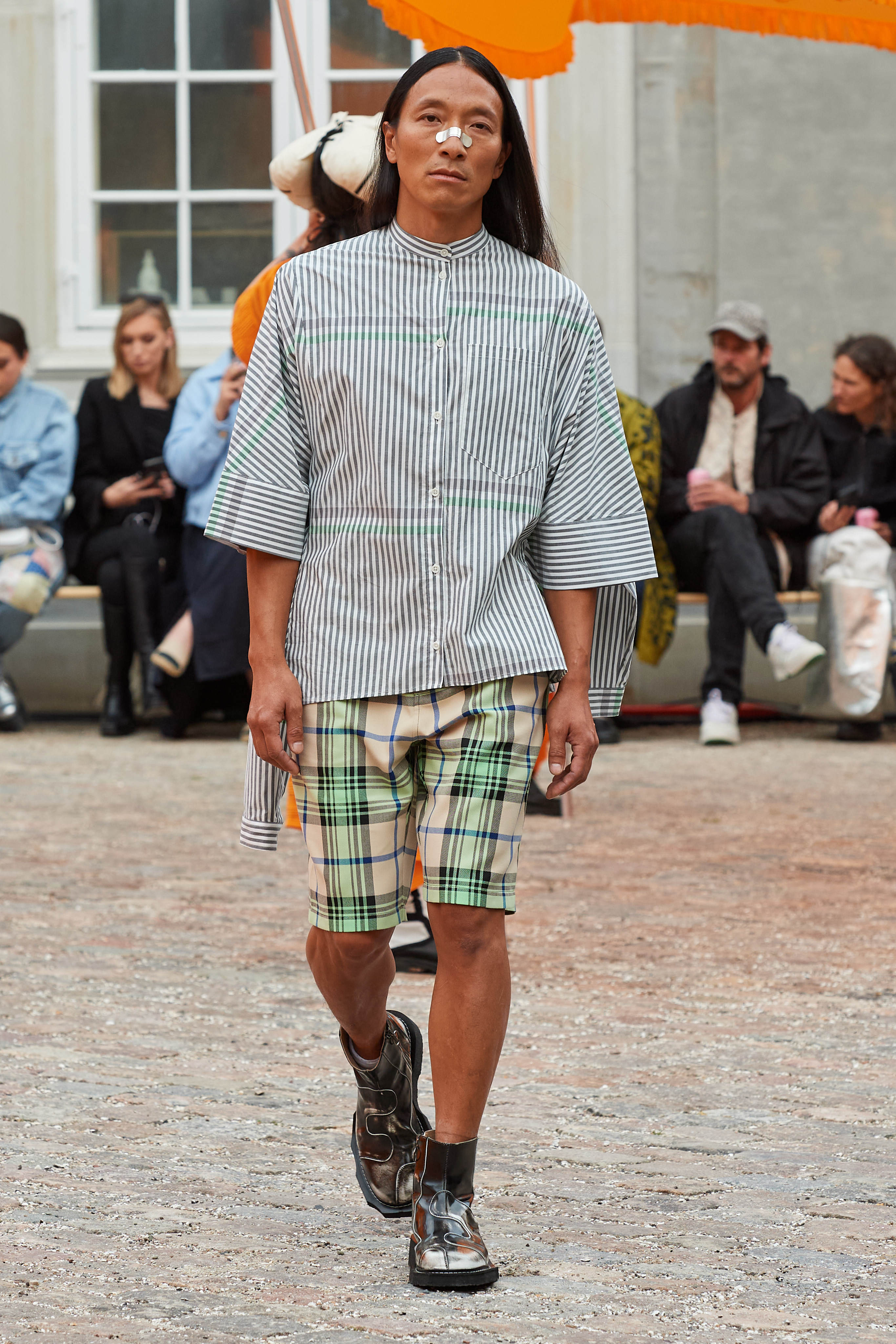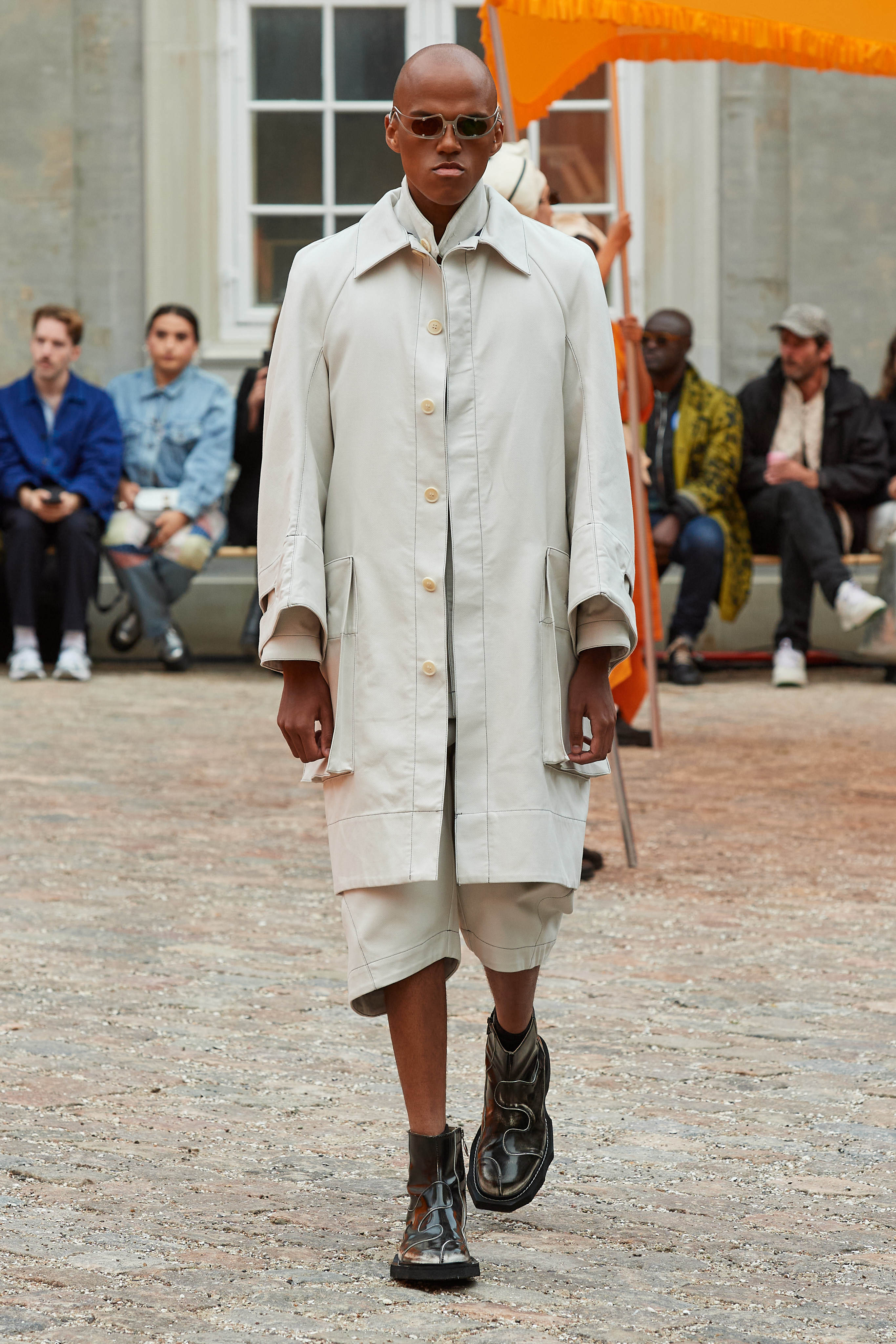 Хенріка Вібскова часто називають королем датської моди - він багато в чому був новатором у справі авангардної екомоди, а на його шоу-перформанси в Парижі завжди рвуться всі редактори та інфлюенсери (дизайнер вже двадцять років показується в рамках чоловічої Paris Fashion Week і завжди дублює своє шоу в Копенгагені). Цього разу він присвятив колекцію боксу і грі слів англійською про thinking outside the box - або як мислити поза заданими рамками, і показав на подіумі своє бачення літніх пальт (цей об'єкт гардероба буде затребуваним дедалі більше й більше через необоротні кліматичні зміни) та цілу серію шортів завдовжки міді на ранню весну або холодне літо.