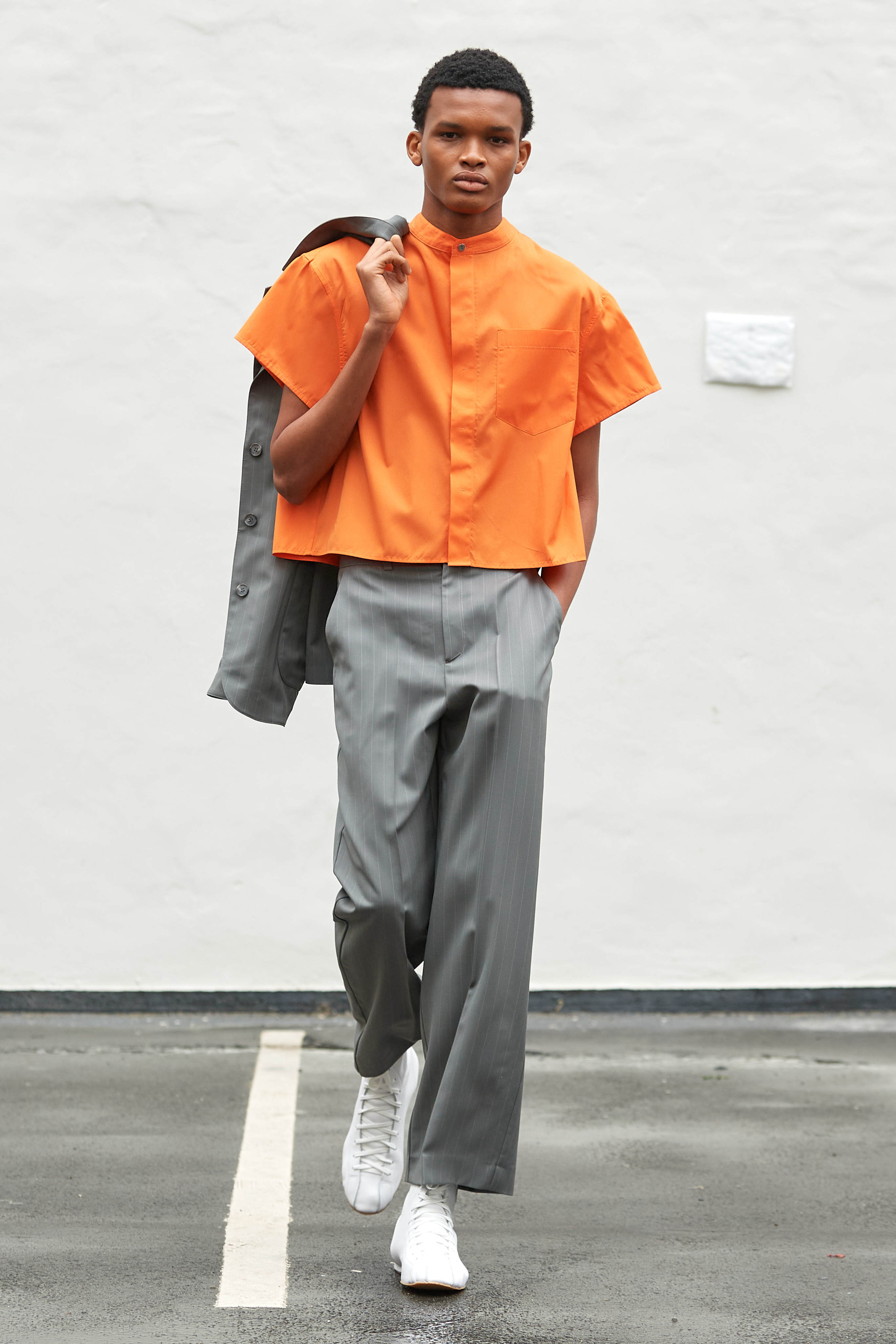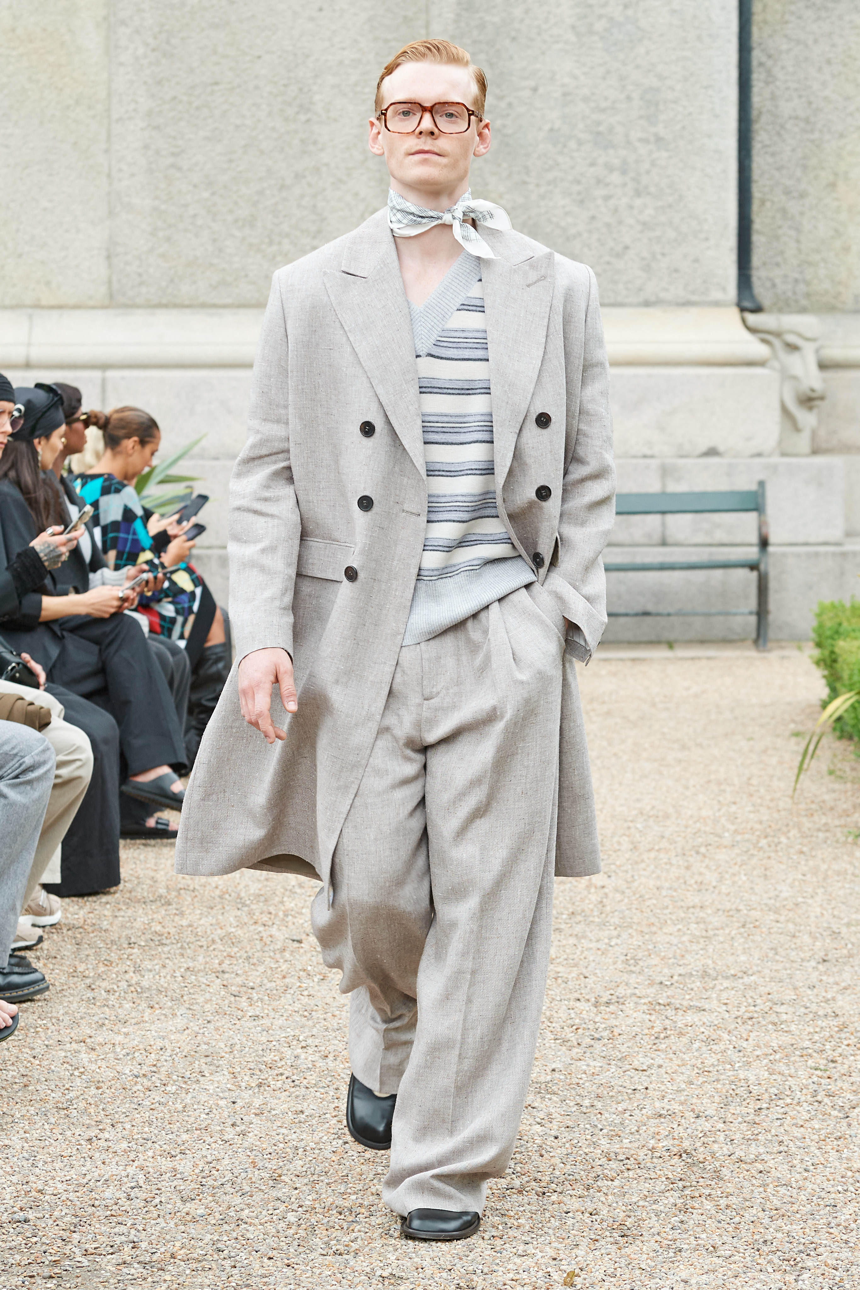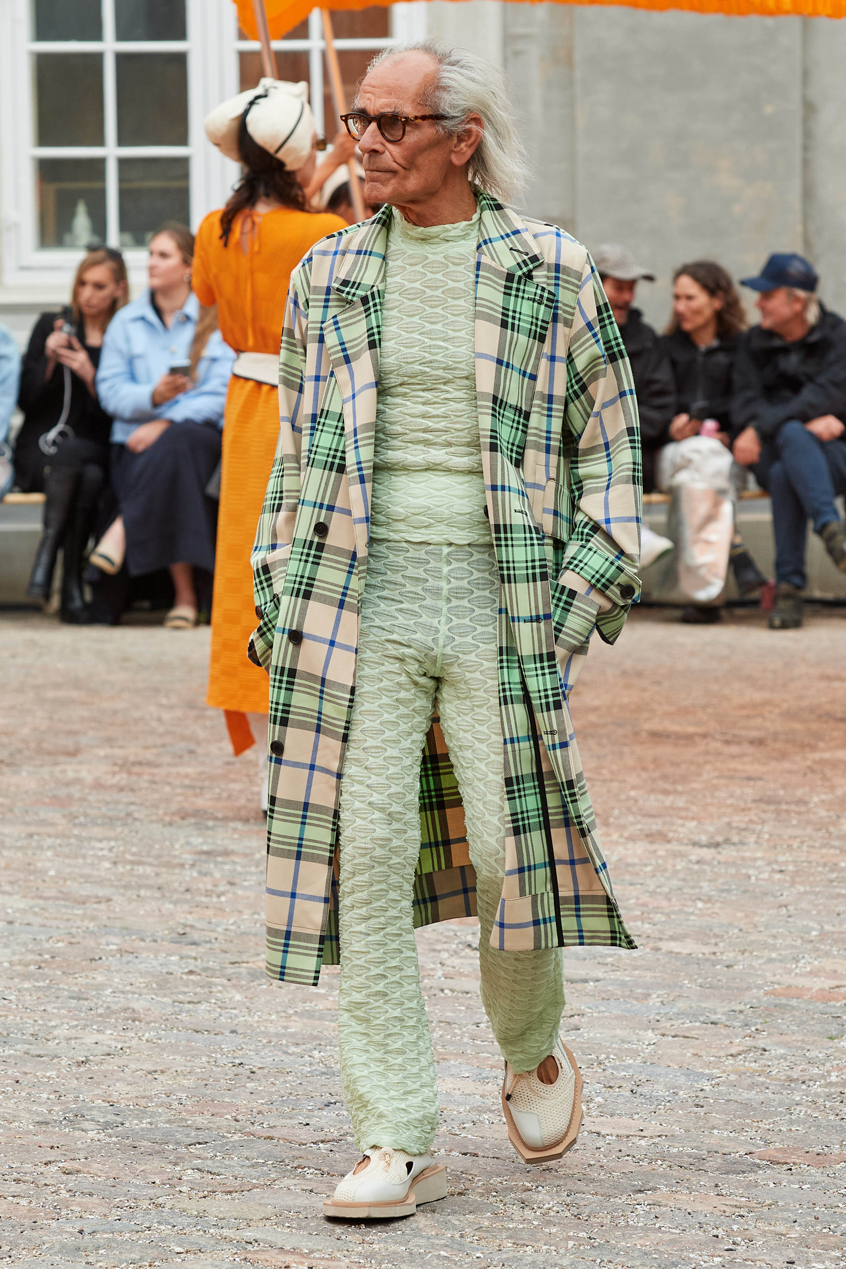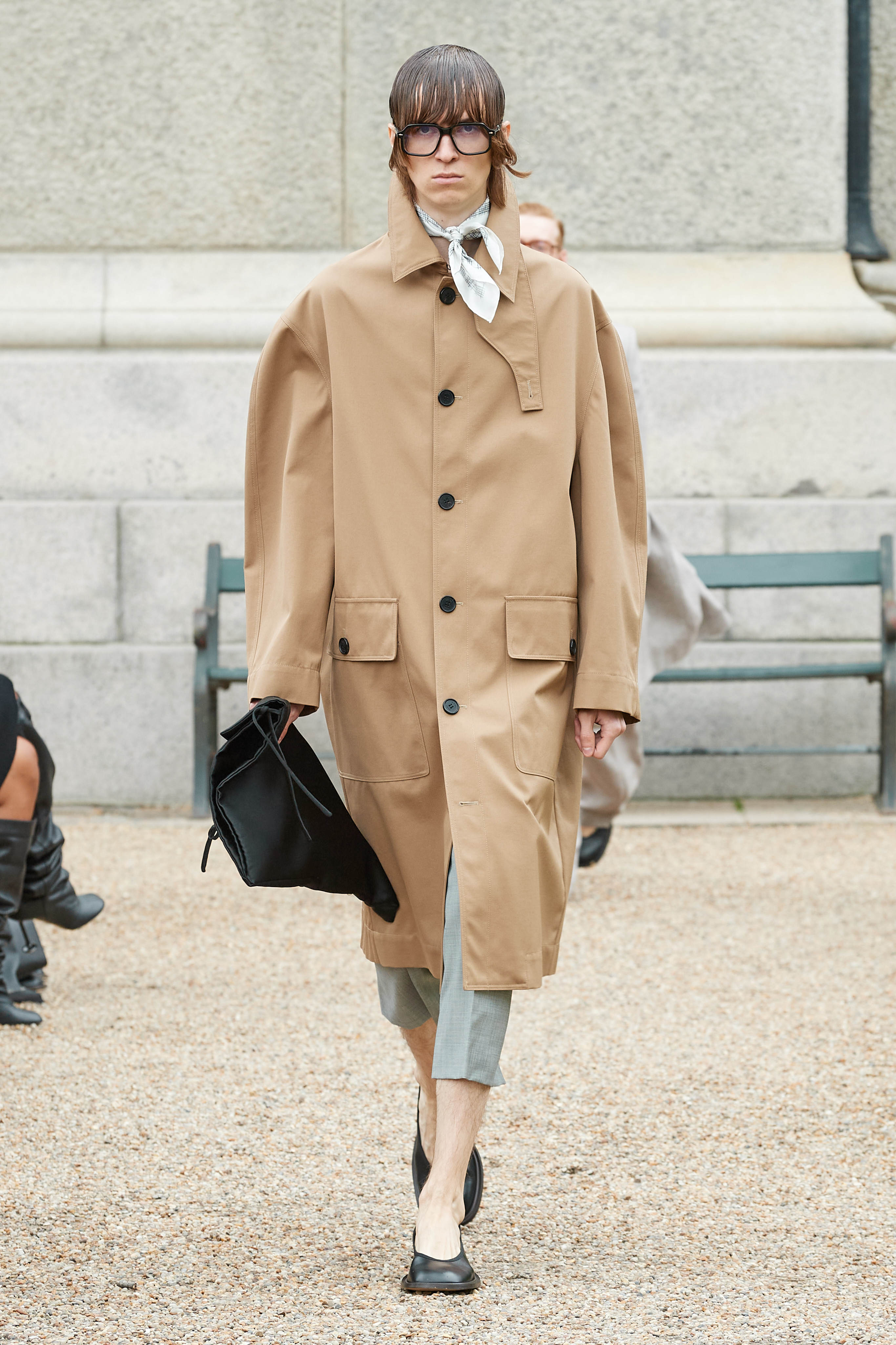 Хенріка Вібскова часто називають королем датської моди - він багато в чому був новатором у справі авангардної екомоди, а на його шоу-перформанси в Парижі завжди рвуться всі редактори та інфлюенсери (дизайнер вже двадцять років показується в рамках чоловічої Paris Fashion Week і завжди дублює своє шоу в Копенгагені). Цього разу він присвятив колекцію боксу і грі слів англійською про thinking outside the box - або як мислити поза заданими рамками, і показав на подіумі своє бачення літніх пальт (цей об'єкт гардероба буде затребуваним дедалі більше й більше через необоротні кліматичні зміни) та цілу серію шортів завдовжки міді на ранню весну або холодне літо.