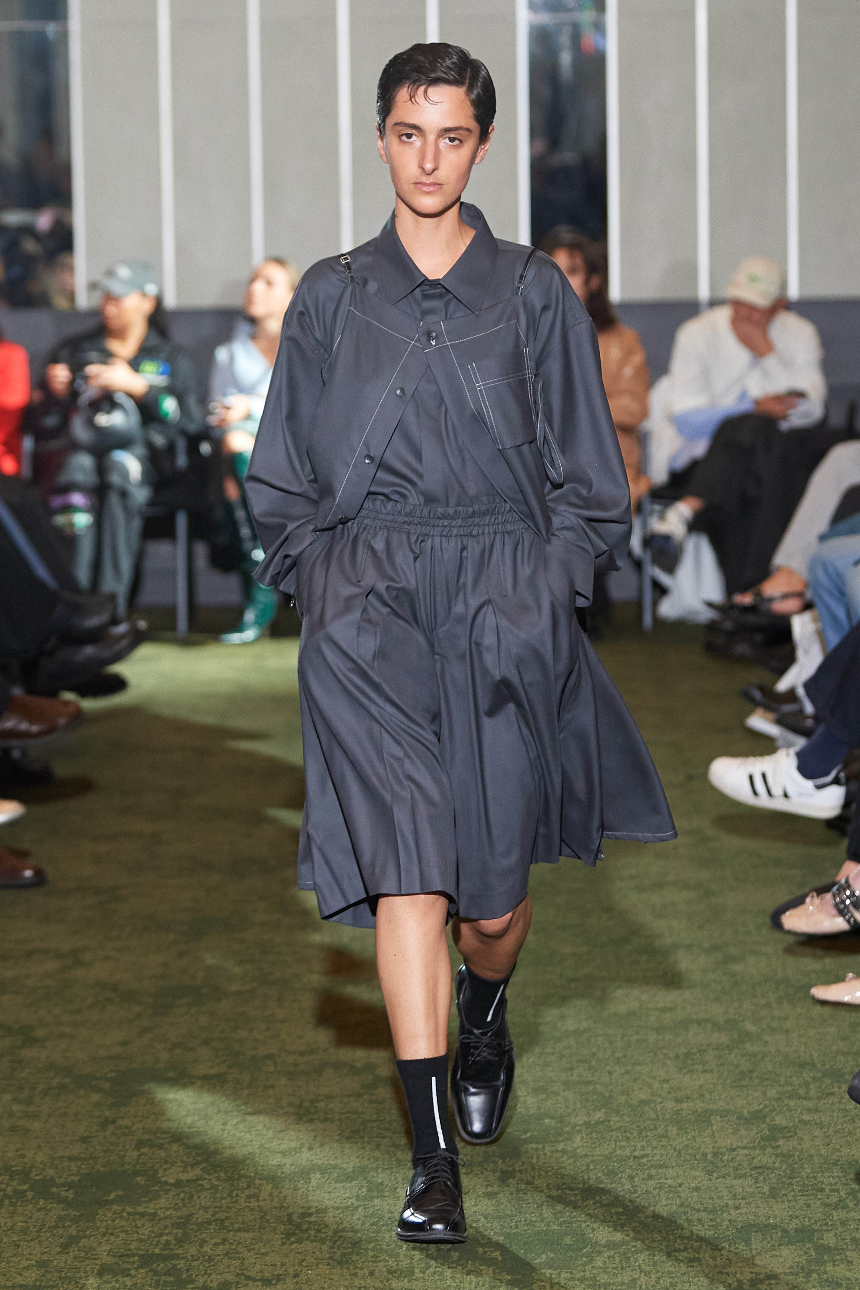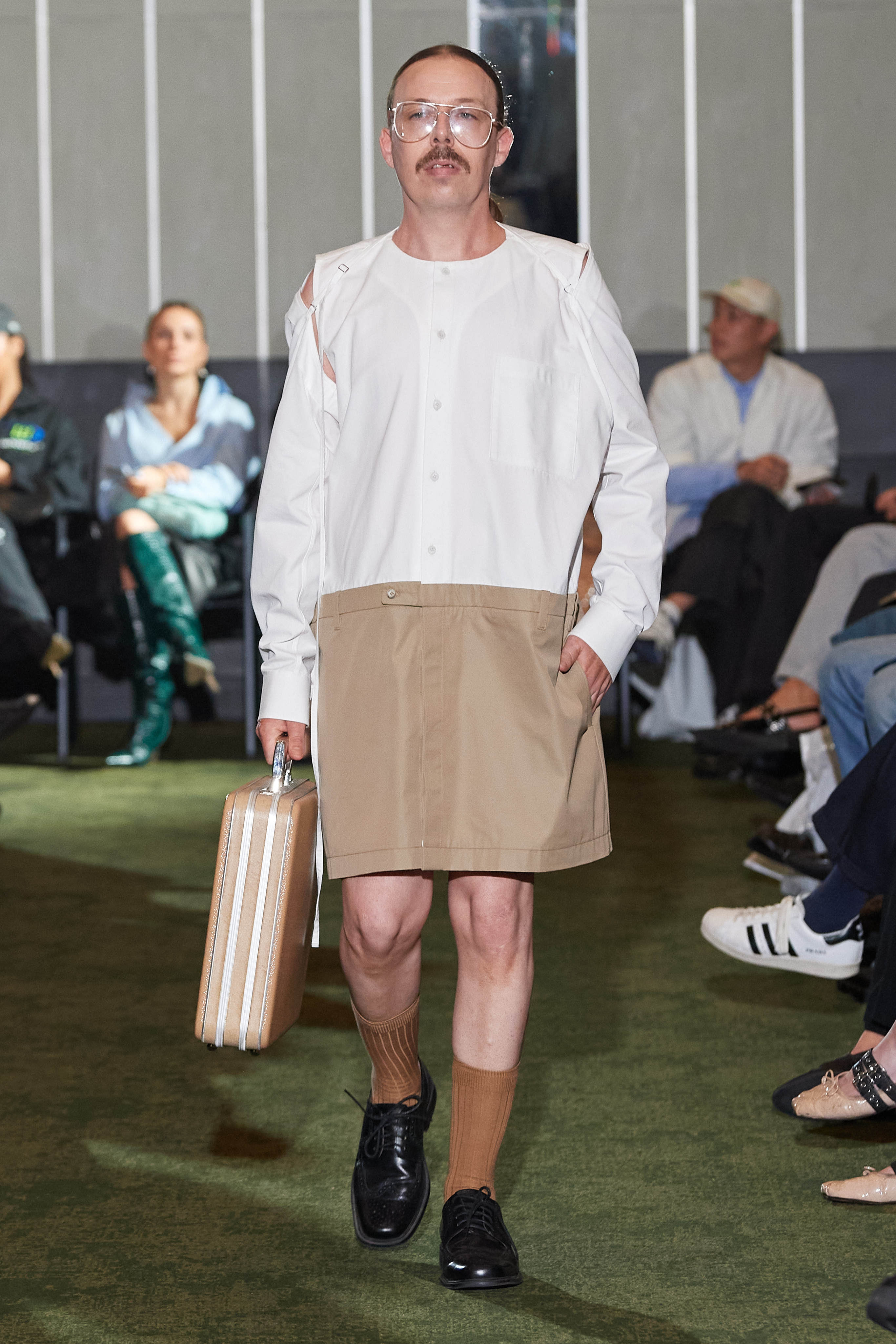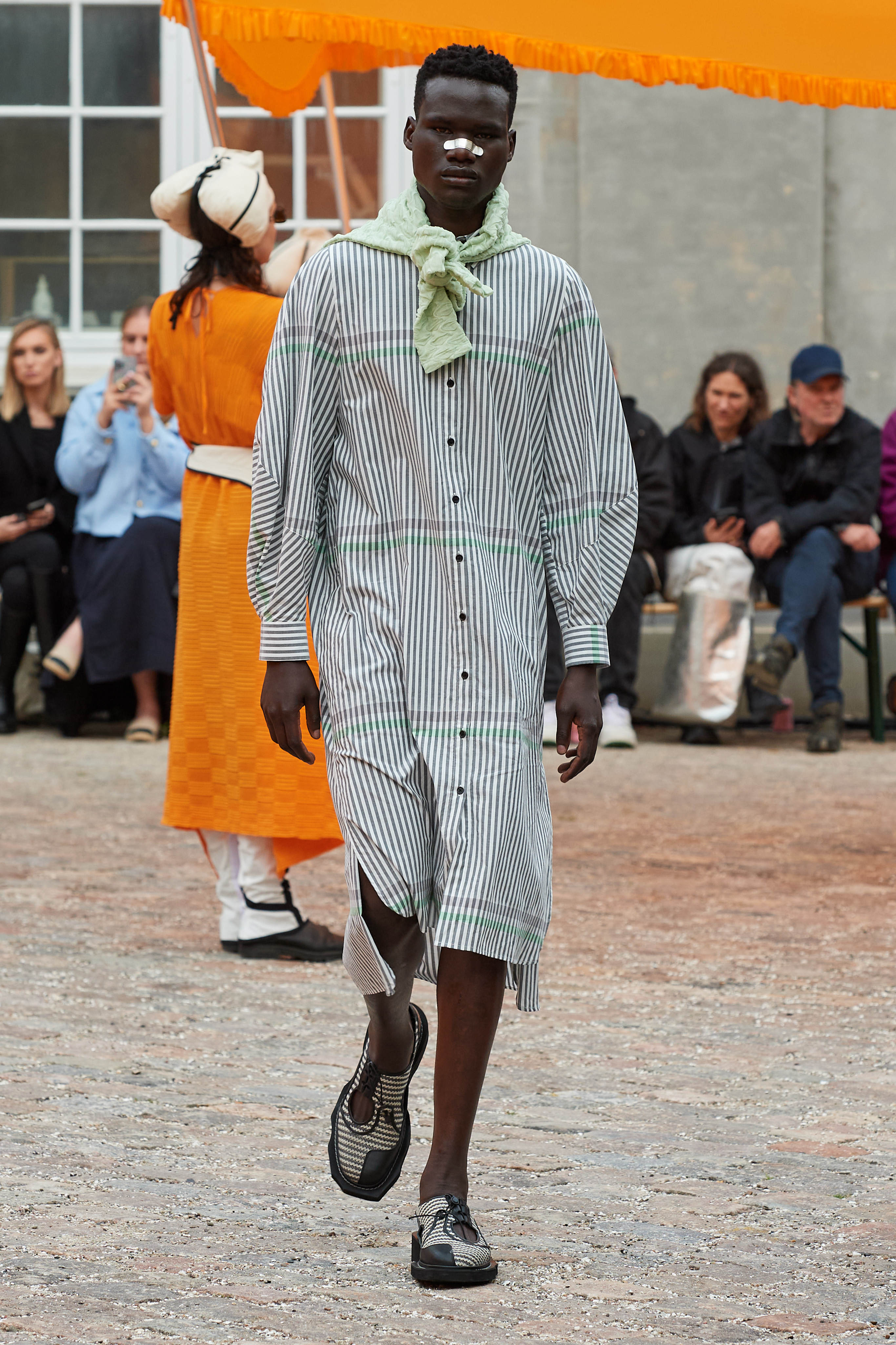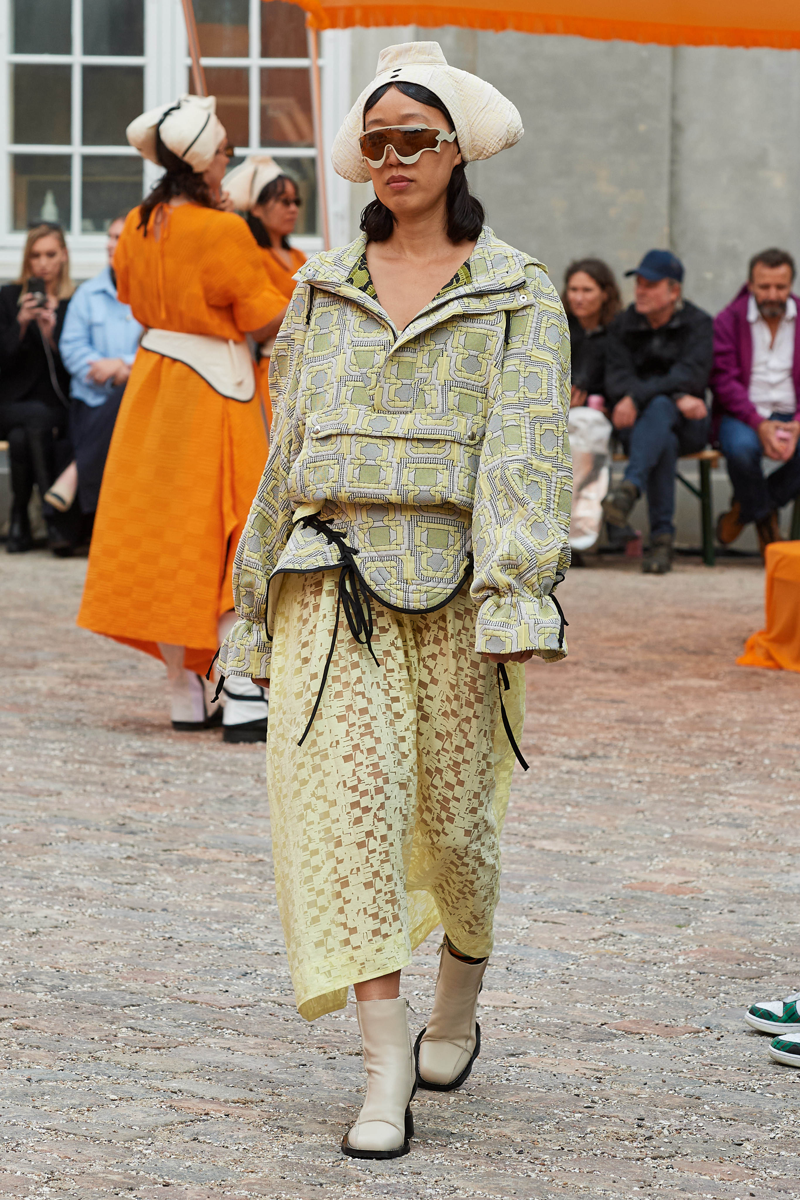 Хенріка Вібскова часто називають королем датської моди - він багато в чому був новатором у справі авангардної екомоди, а на його шоу-перформанси в Парижі завжди рвуться всі редактори та інфлюенсери (дизайнер вже двадцять років показується в рамках чоловічої Paris Fashion Week і завжди дублює своє шоу в Копенгагені). Цього разу він присвятив колекцію боксу і грі слів англійською про thinking outside the box - або як мислити поза заданими рамками, і показав на подіумі своє бачення літніх пальт (цей об'єкт гардероба буде затребуваним дедалі більше й більше через необоротні кліматичні зміни) та цілу серію шортів завдовжки міді на ранню весну або холодне літо.