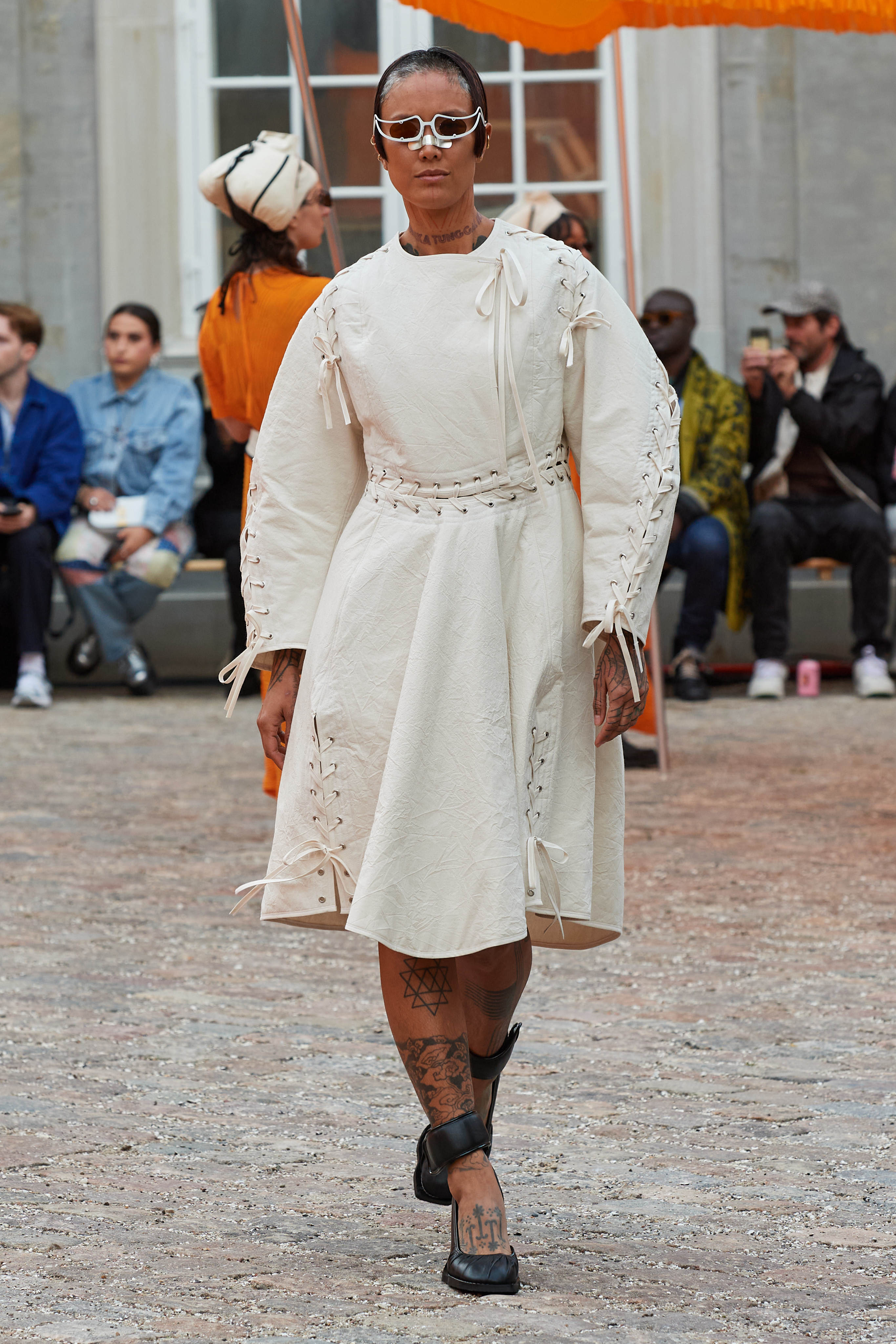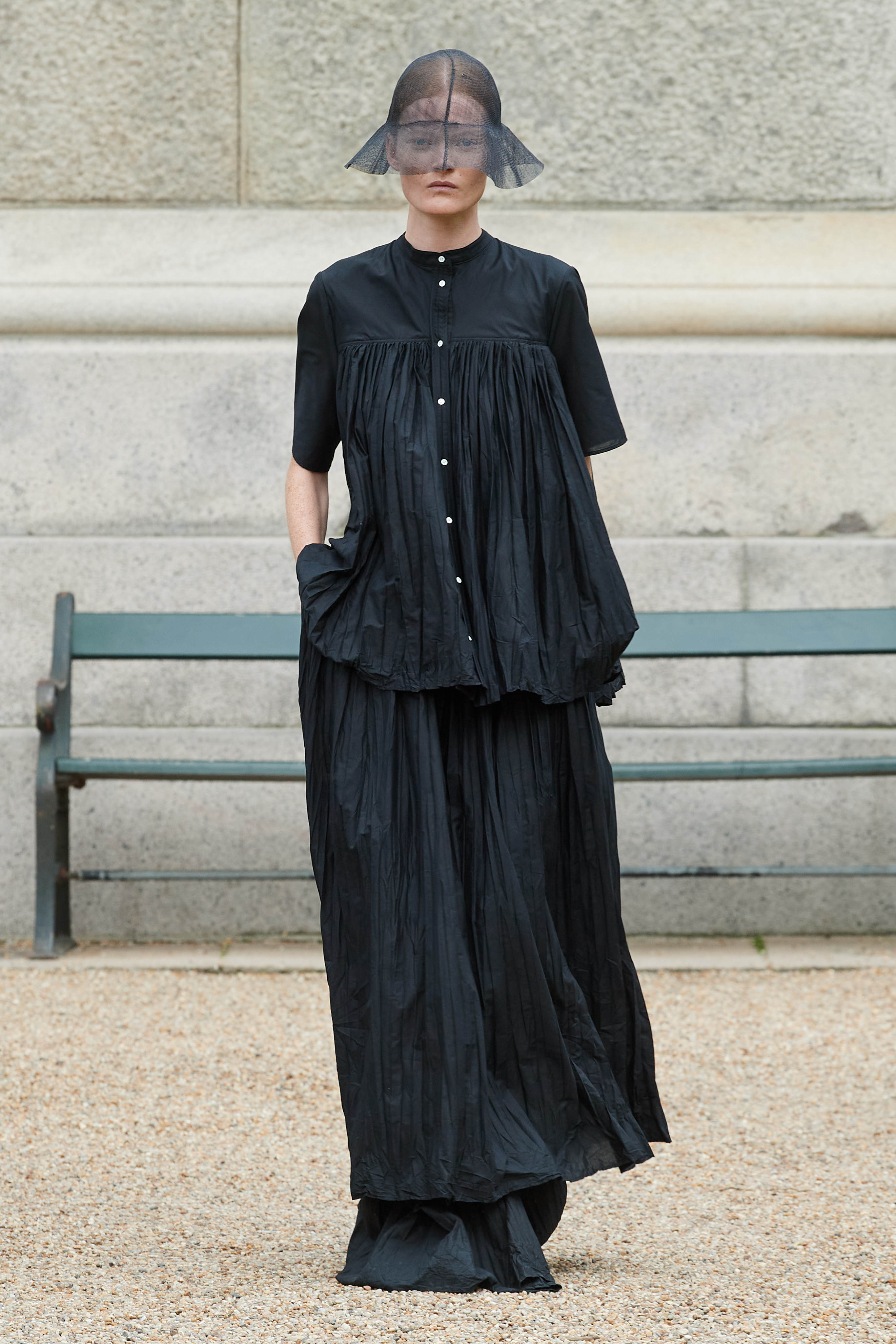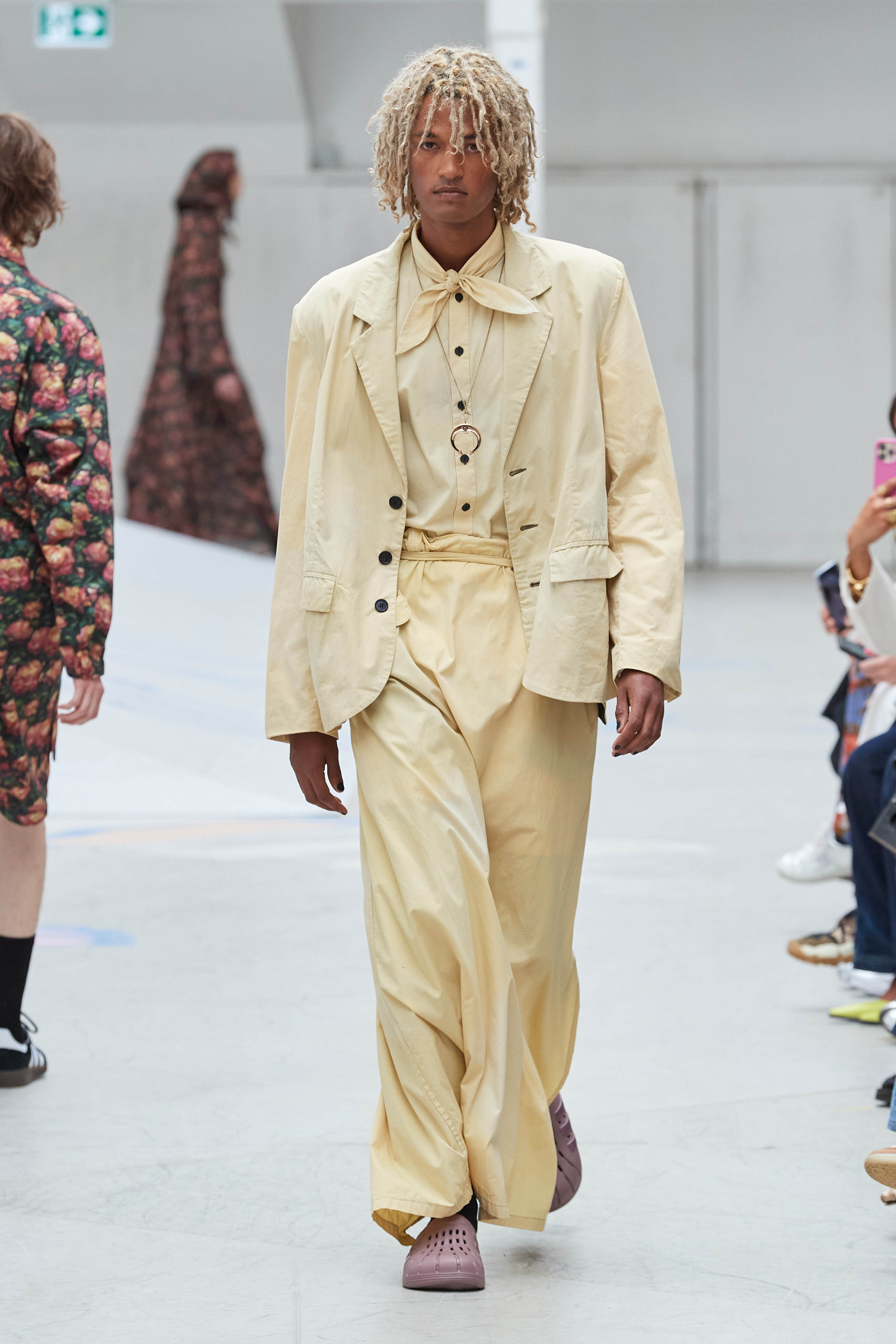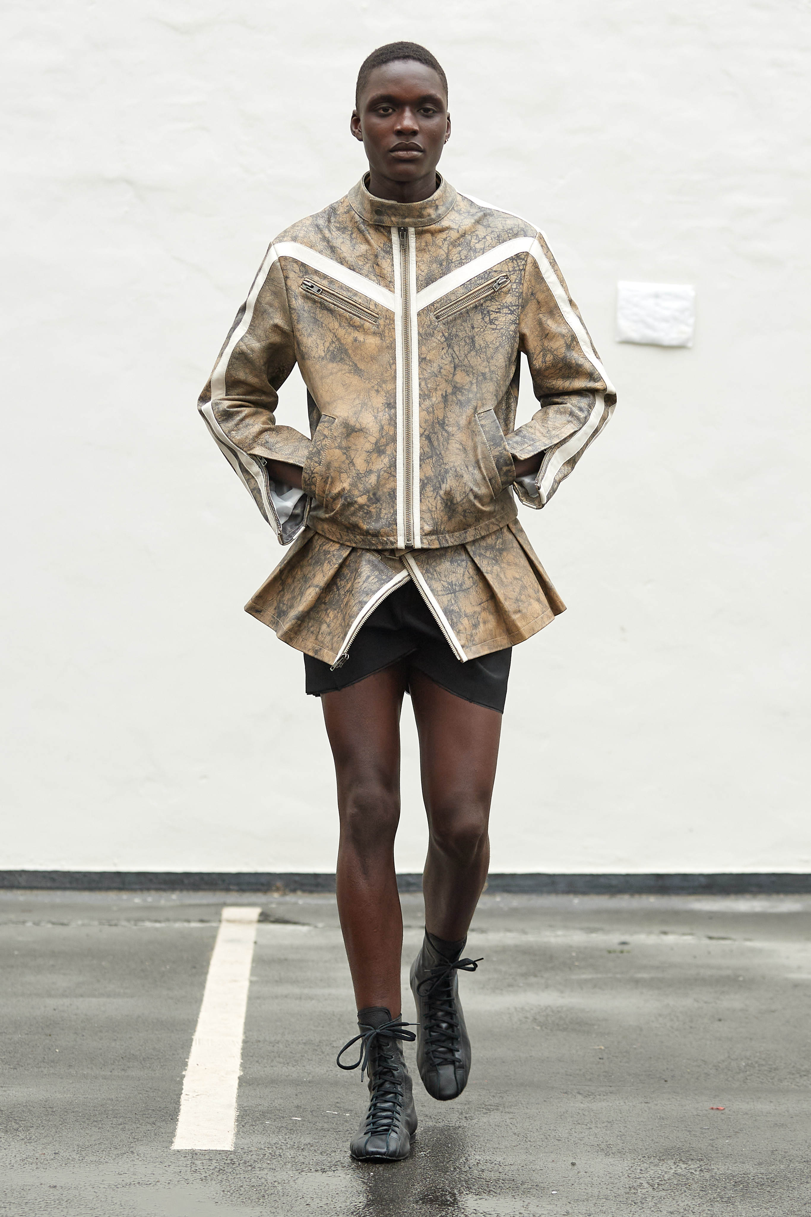 Хенріка Вібскова часто називають королем датської моди - він багато в чому був новатором у справі авангардної екомоди, а на його шоу-перформанси в Парижі завжди рвуться всі редактори та інфлюенсери (дизайнер вже двадцять років показується в рамках чоловічої Paris Fashion Week і завжди дублює своє шоу в Копенгагені). Цього разу він присвятив колекцію боксу і грі слів англійською про thinking outside the box - або як мислити поза заданими рамками, і показав на подіумі своє бачення літніх пальт (цей об'єкт гардероба буде затребуваним дедалі більше й більше через необоротні кліматичні зміни) та цілу серію шортів завдовжки міді на ранню весну або холодне літо.