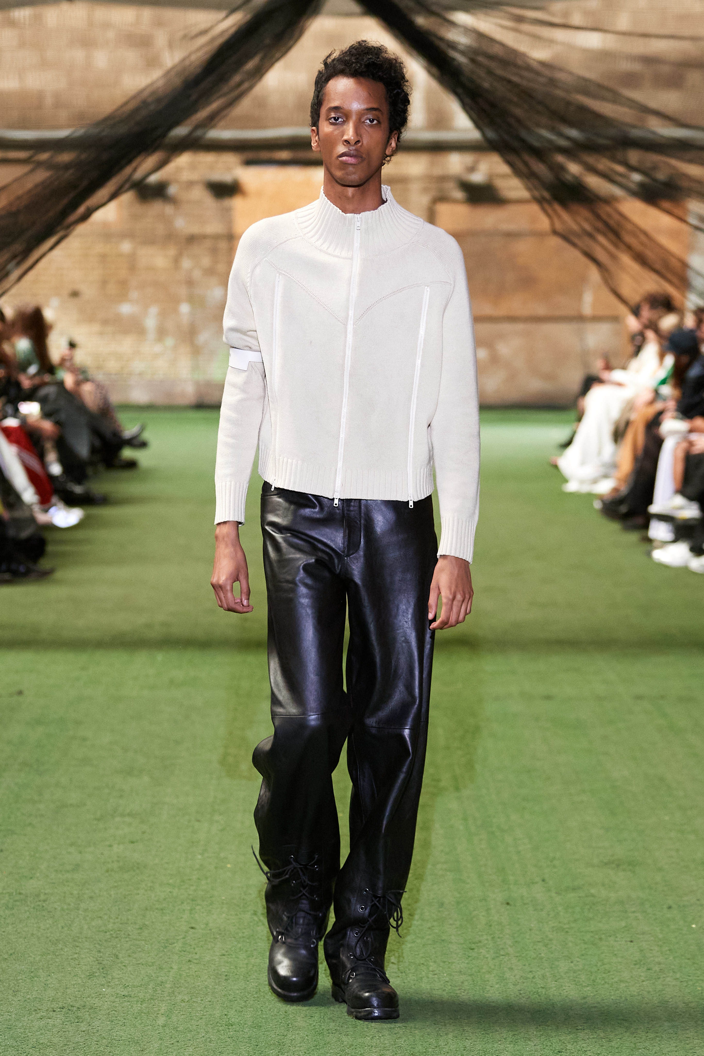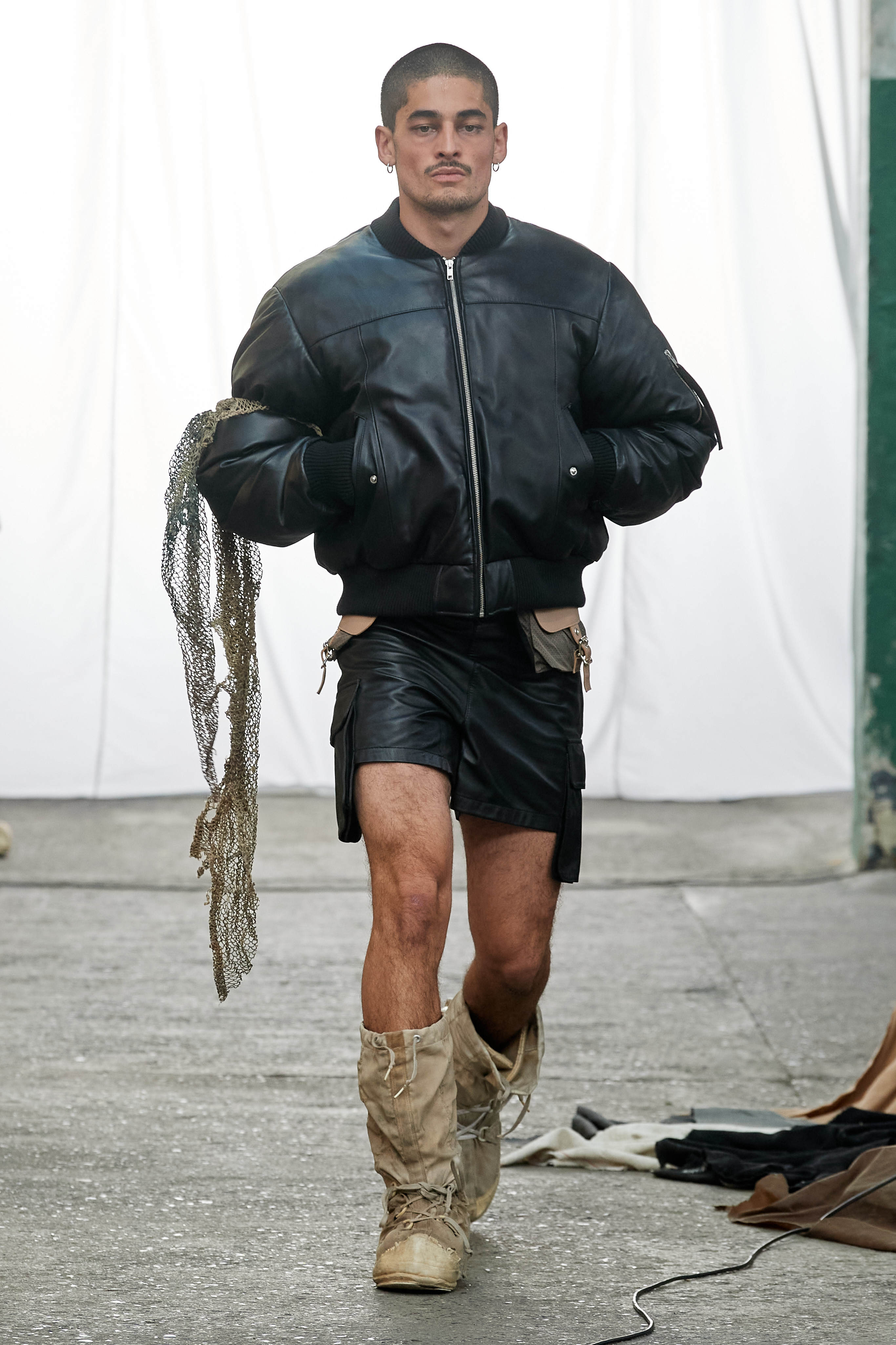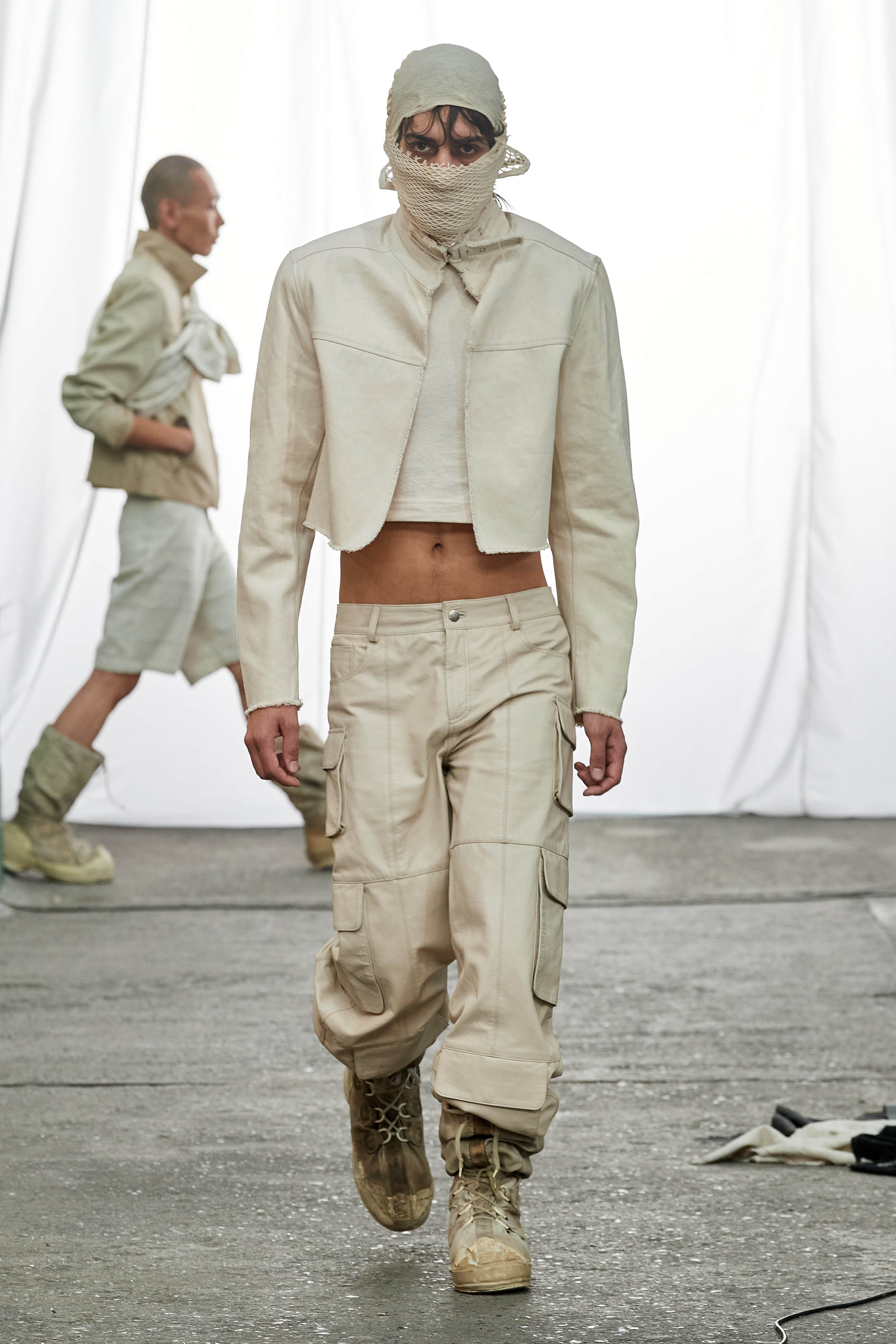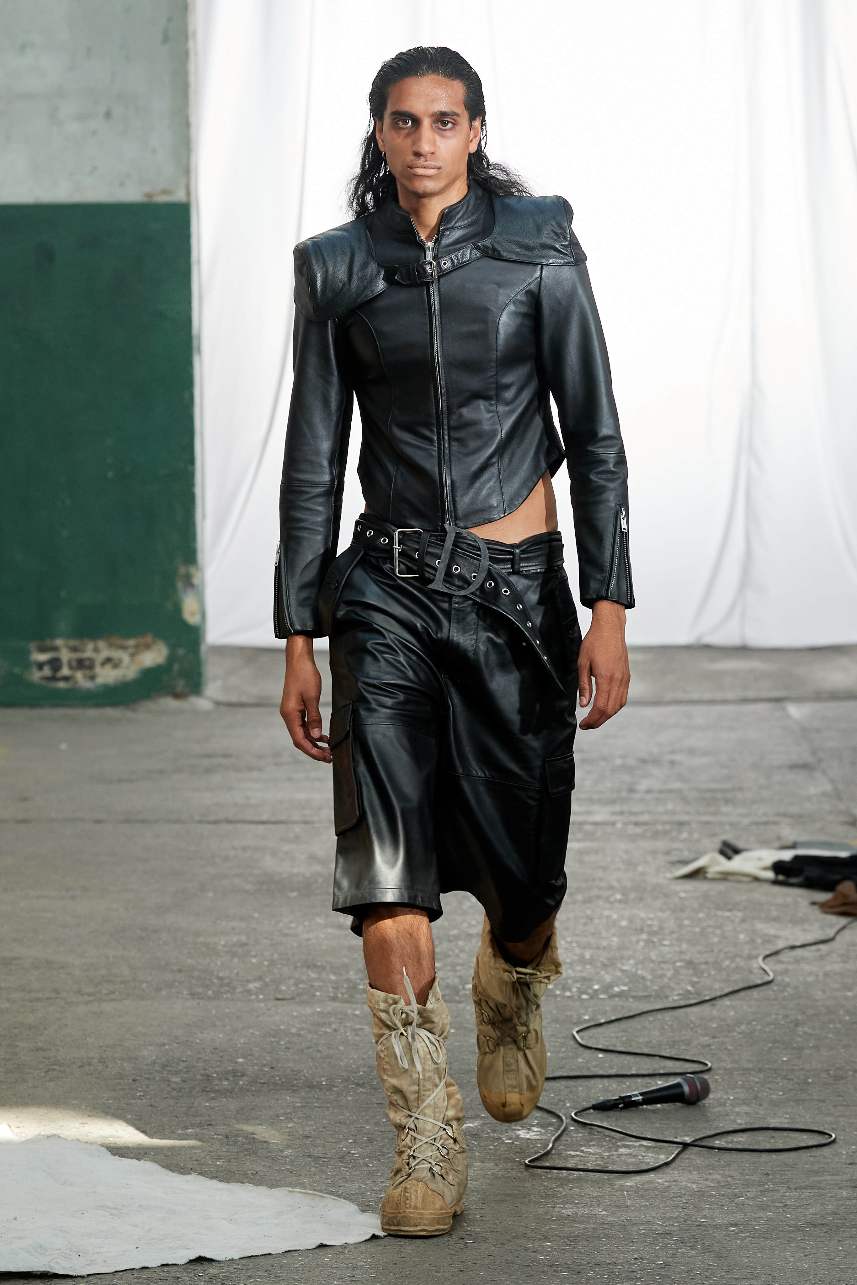 Специфіка шведської марки Deadwood - рокерські образи з перероблених матеріалів, які мають вигляд як нові (засновники марки Карл Оллсон і Фелікс фон Вахдер збирають їх у вінтажних крамницях по всьому світу). За 11 років існування бренду - це було їхнє перше шоу, на якому дует показав, як майстерно вміє працювати не тільки з переробленою шкірою, а й з інноваційними веганськими матеріалами, як-от шкіра з листя кактуса.