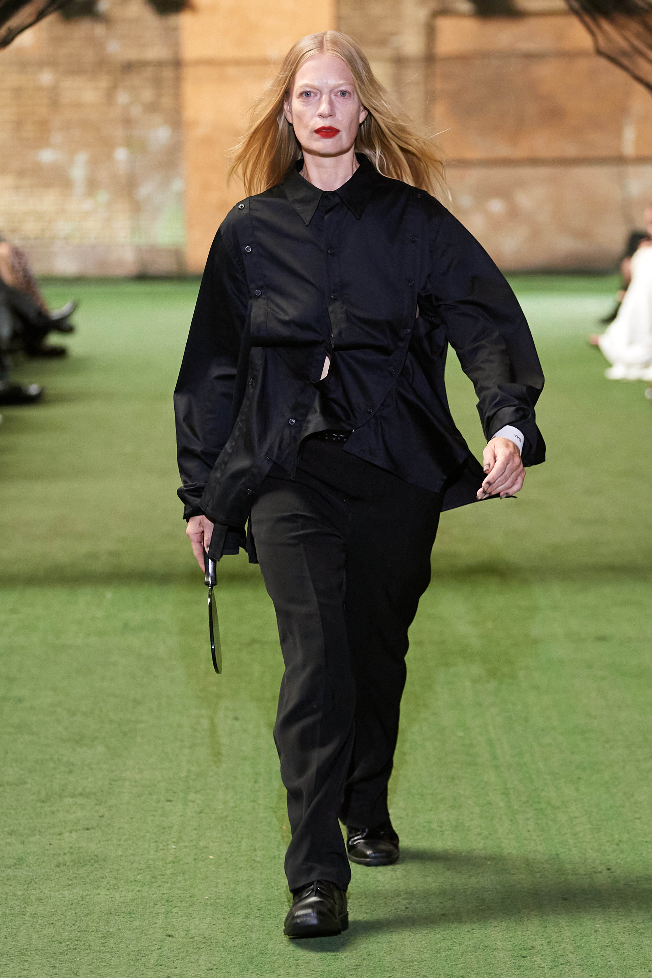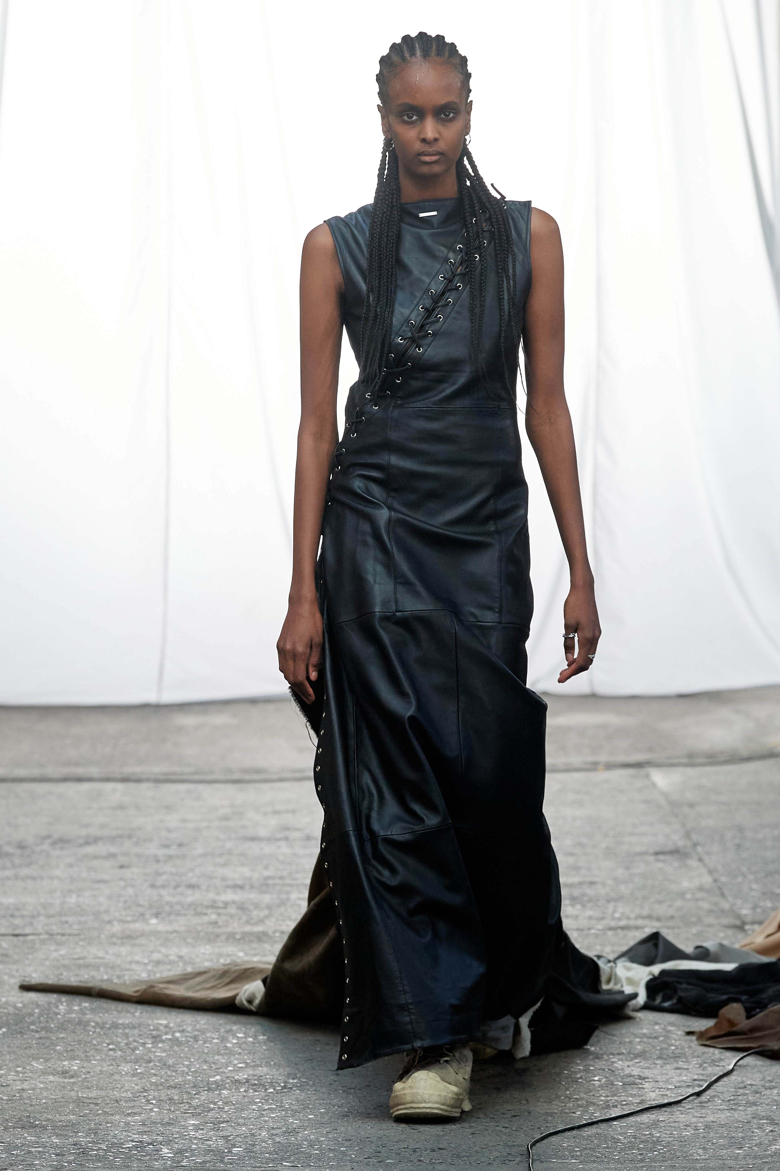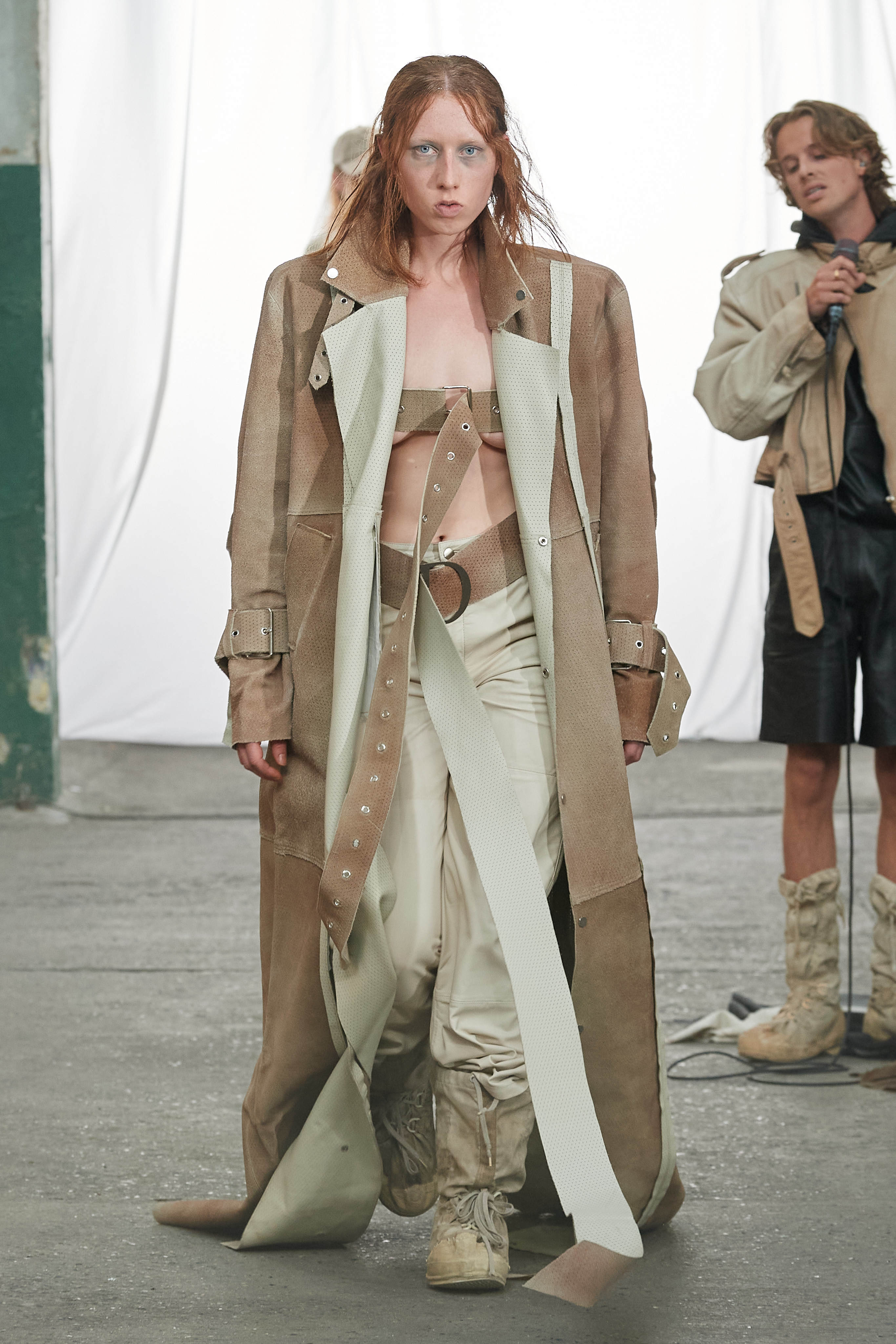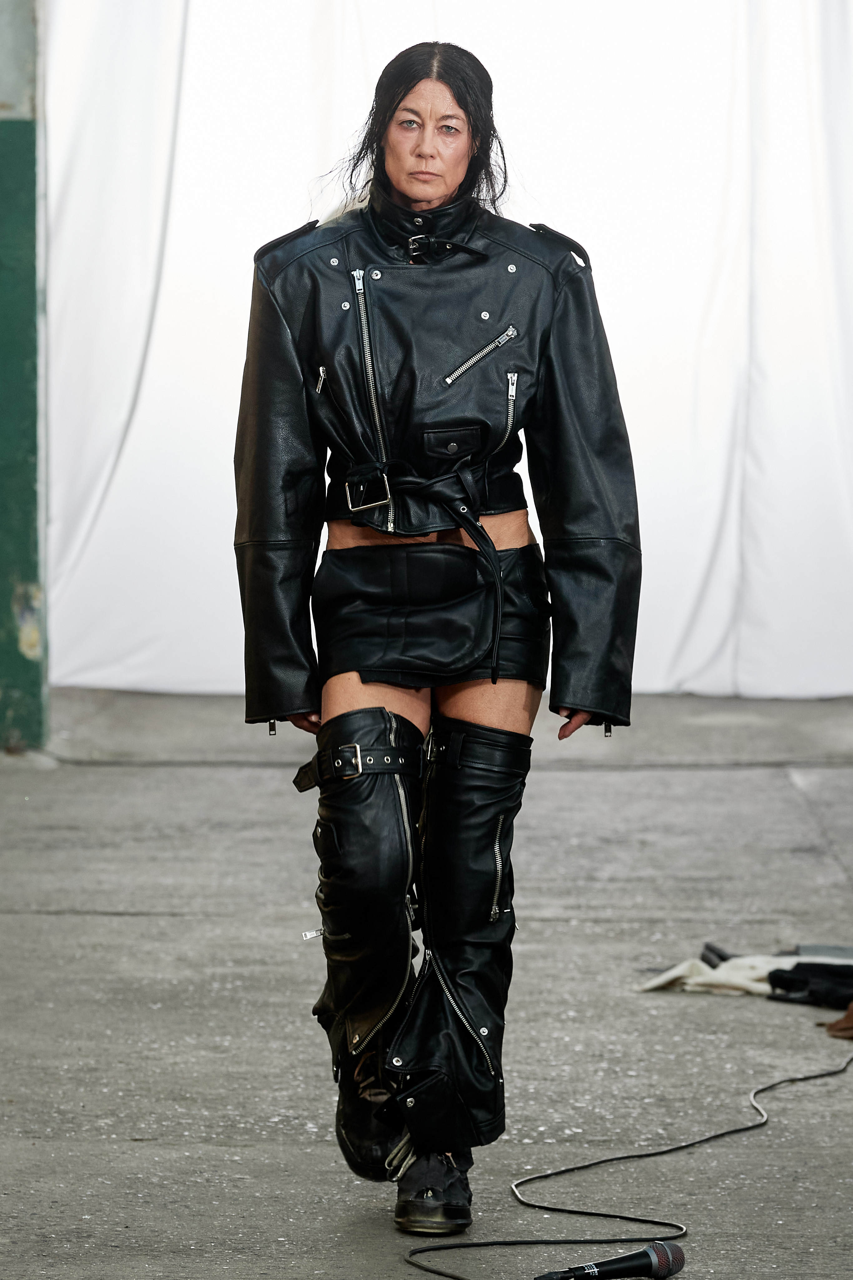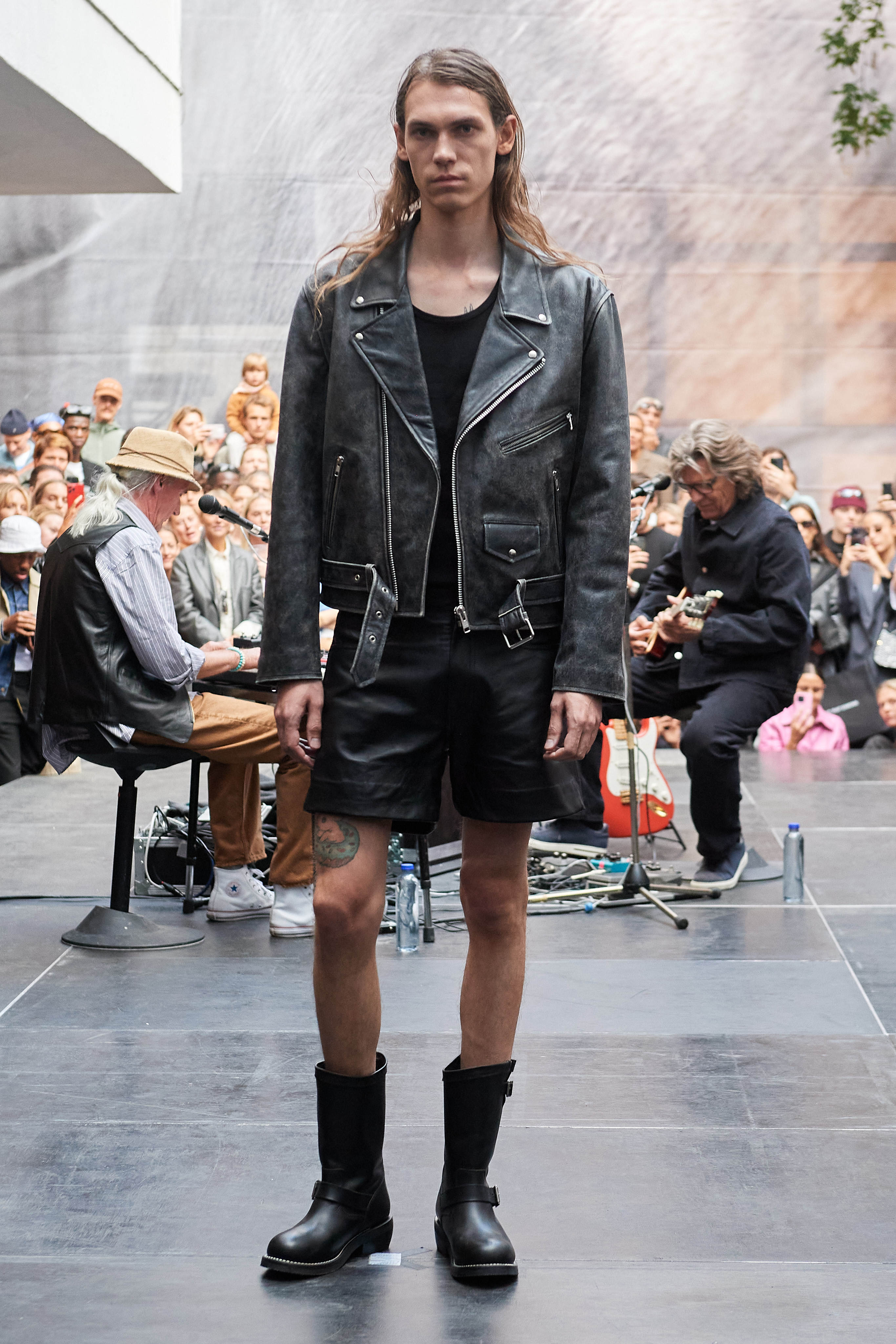 Специфіка шведської марки Deadwood - рокерські образи з перероблених матеріалів, які мають вигляд як нові (засновники марки Карл Оллсон і Фелікс фон Вахдер збирають їх у вінтажних крамницях по всьому світу). За 11 років існування бренду - це було їхнє перше шоу, на якому дует показав, як майстерно вміє працювати не тільки з переробленою шкірою, а й з інноваційними веганськими матеріалами, як-от шкіра з листя кактуса.