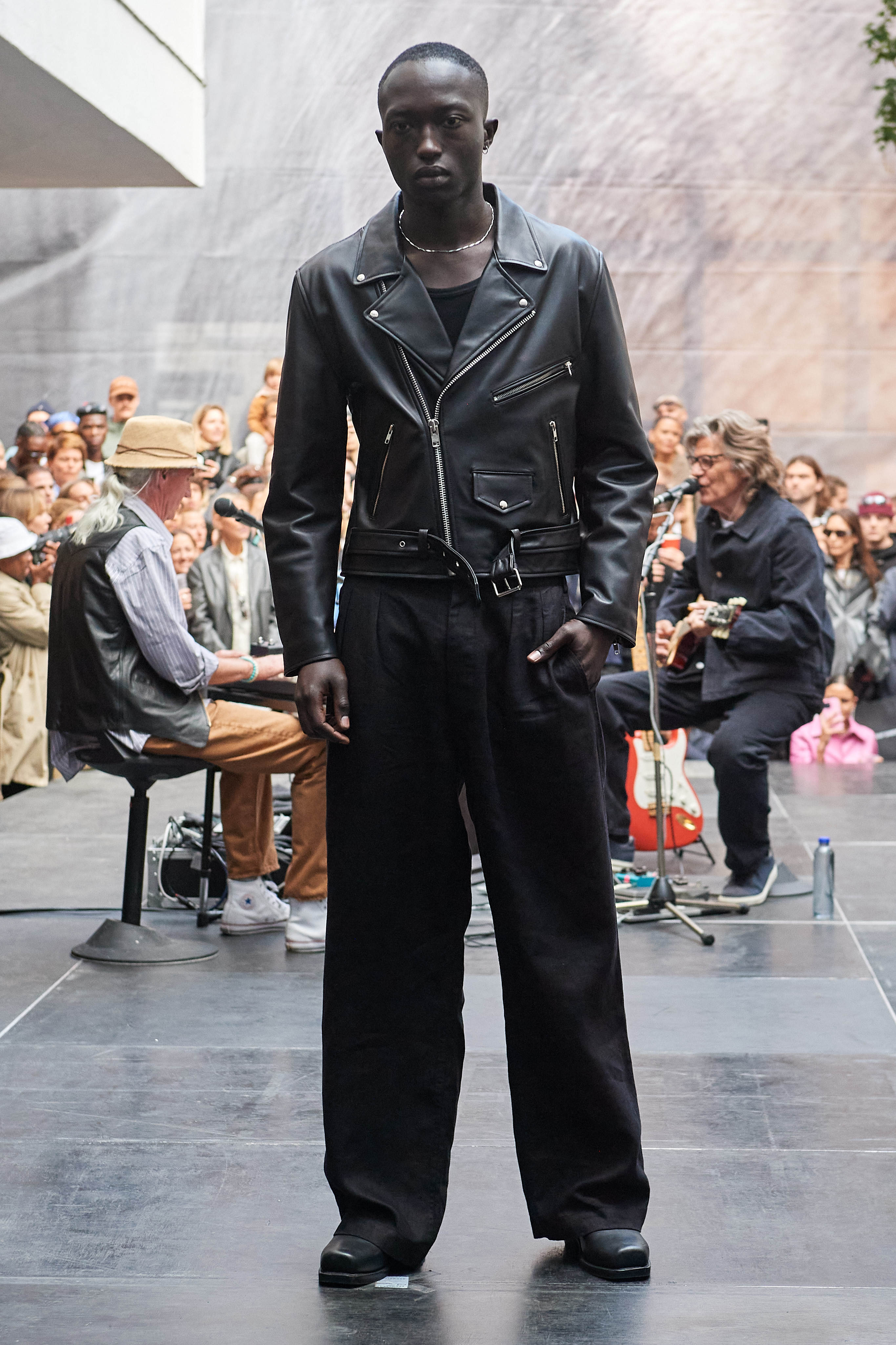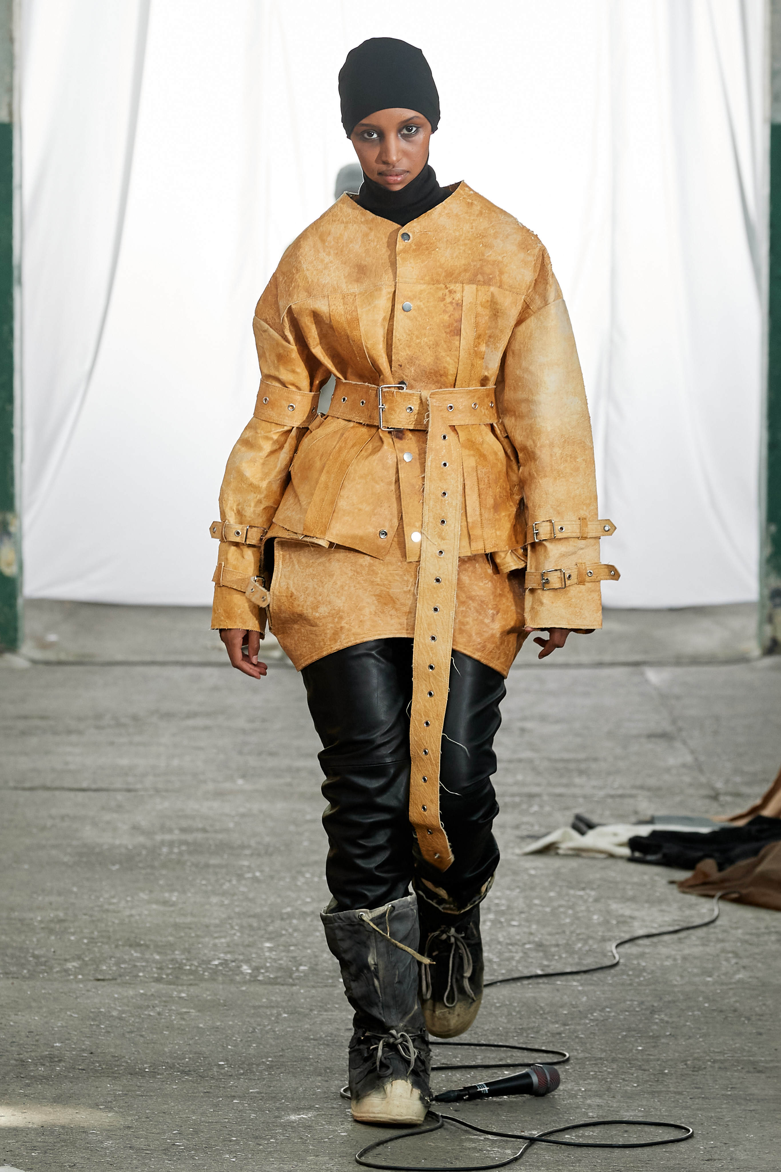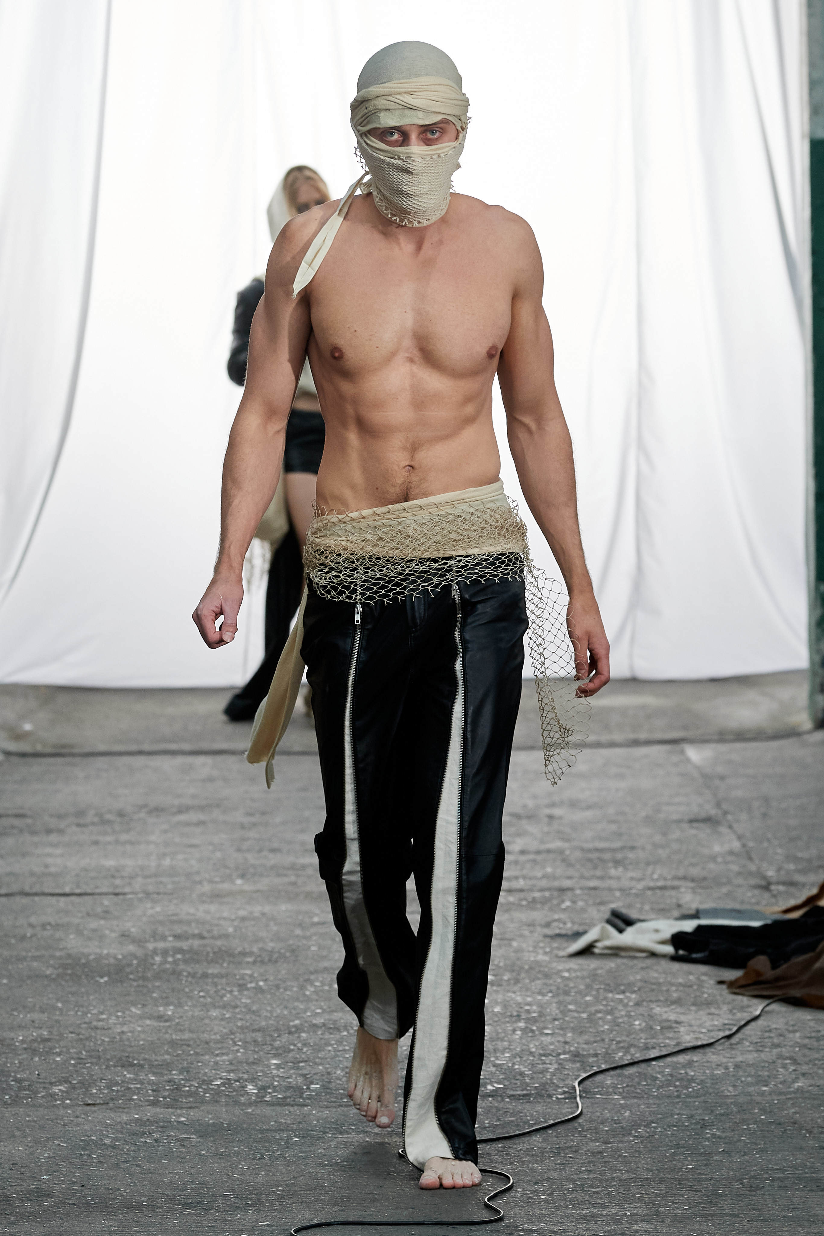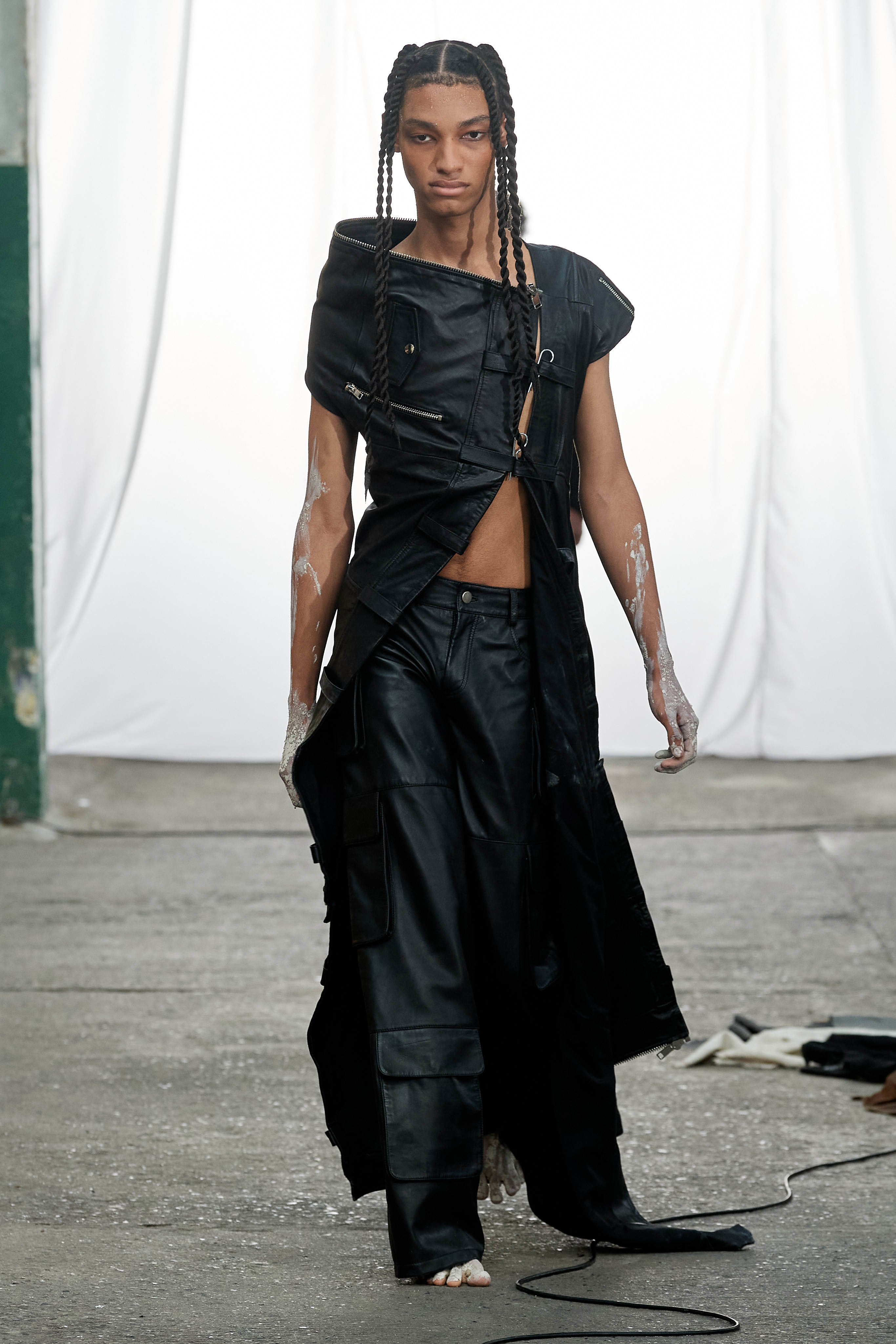 Специфіка шведської марки Deadwood - рокерські образи з перероблених матеріалів, які мають вигляд як нові (засновники марки Карл Оллсон і Фелікс фон Вахдер збирають їх у вінтажних крамницях по всьому світу). За 11 років існування бренду - це було їхнє перше шоу, на якому дует показав, як майстерно вміє працювати не тільки з переробленою шкірою, а й з інноваційними веганськими матеріалами, як-от шкіра з листя кактуса.