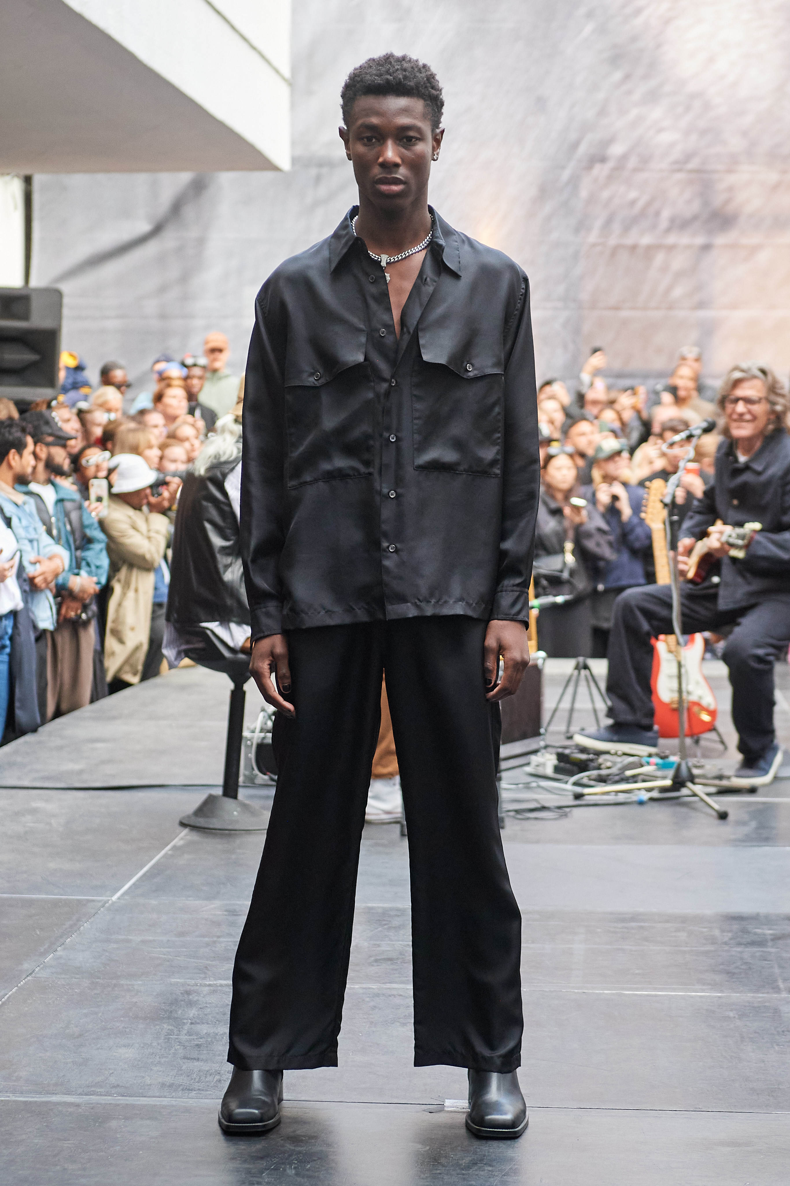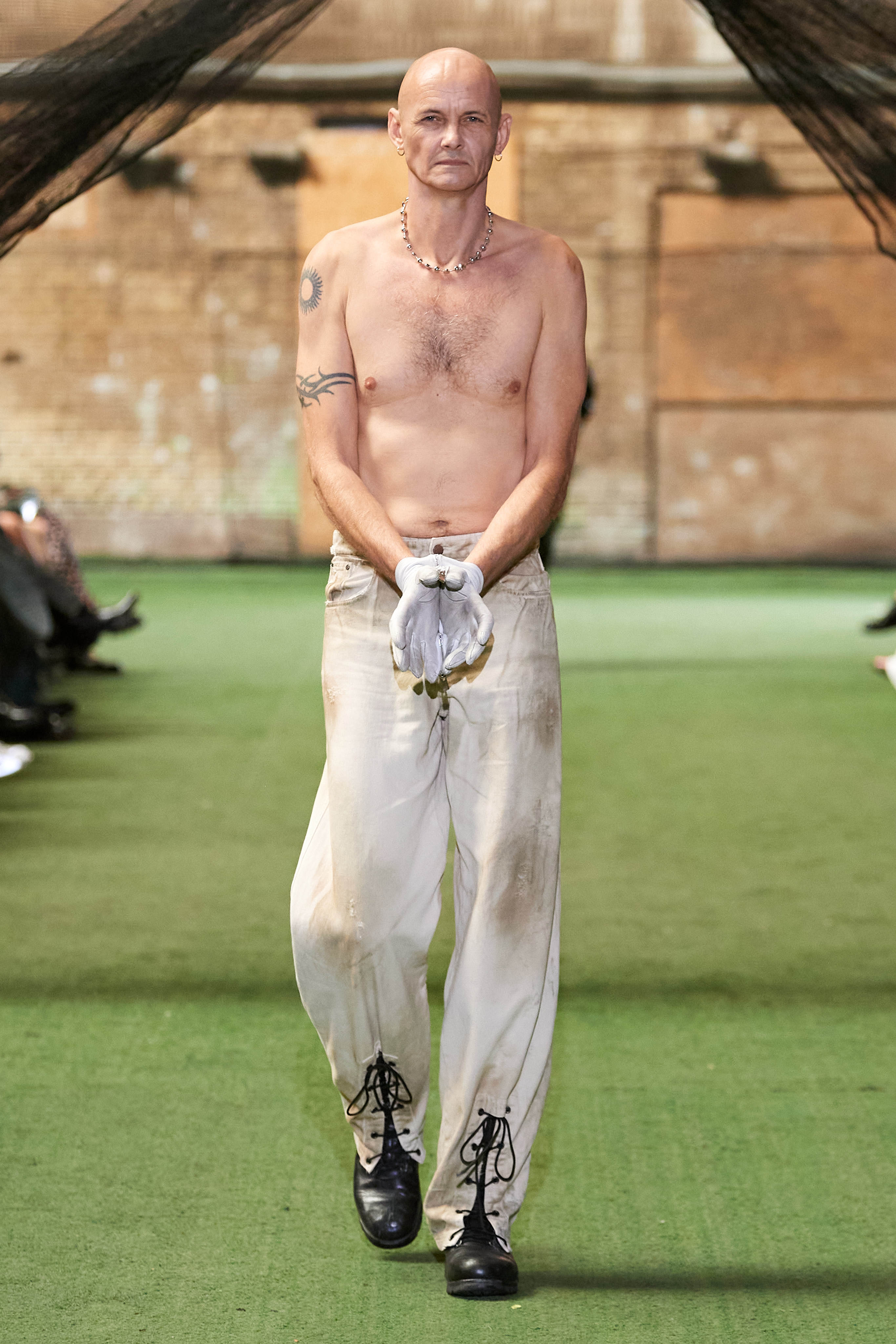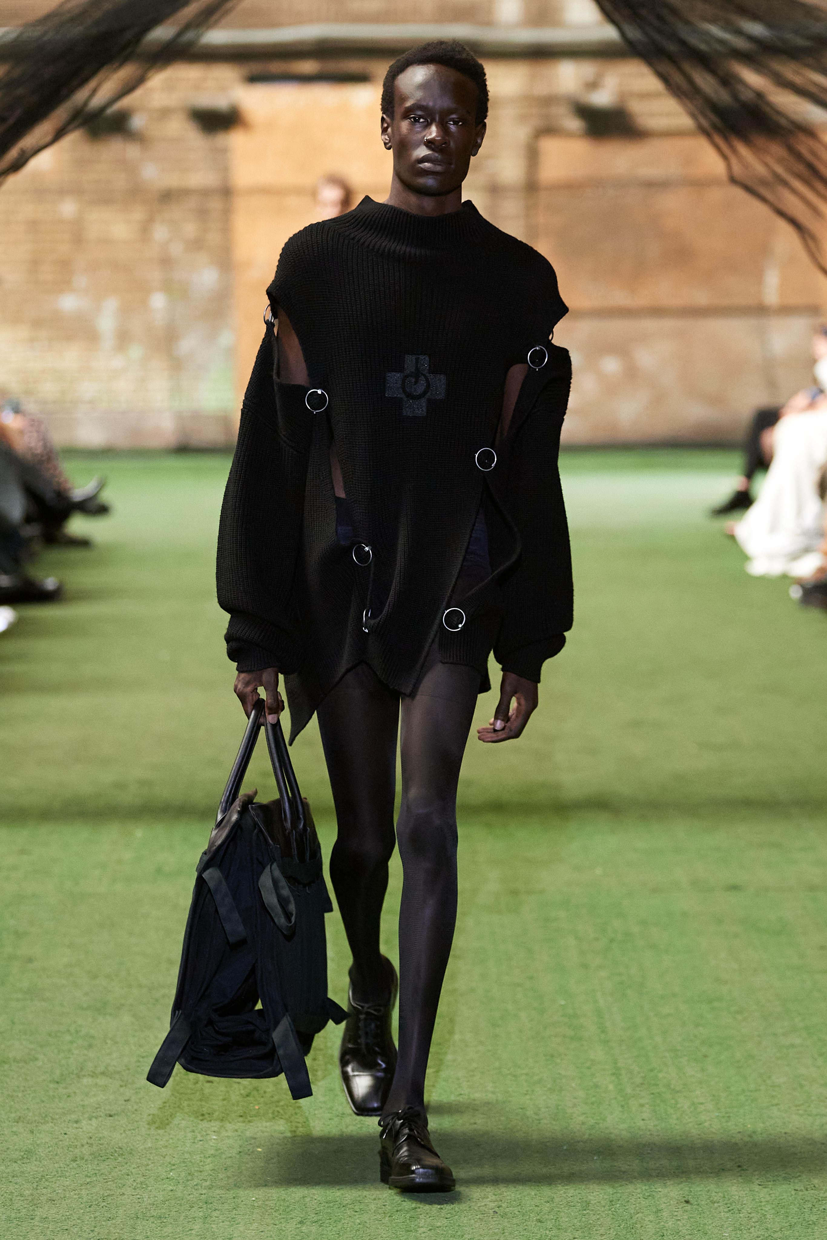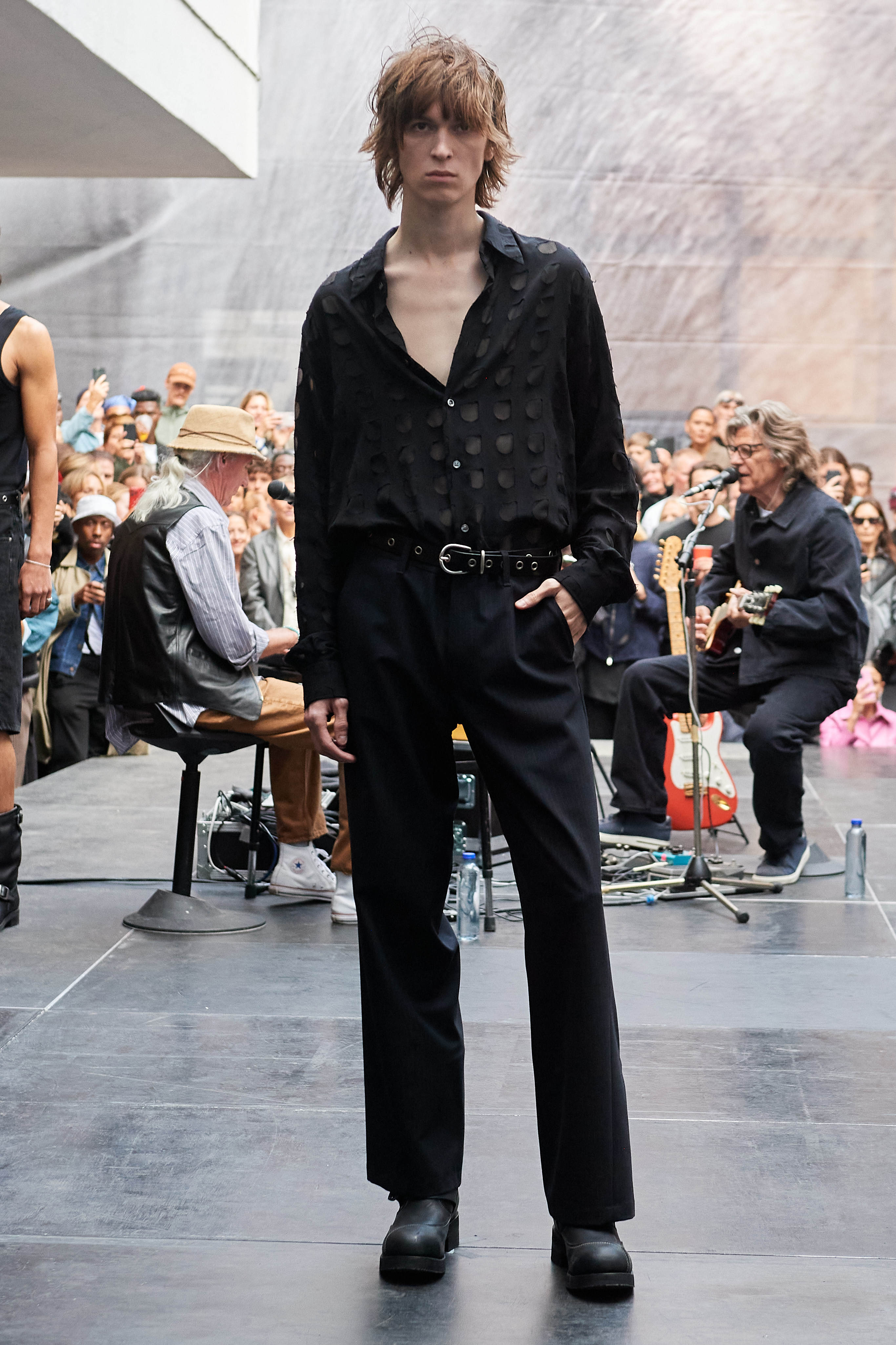 Специфіка шведської марки Deadwood - рокерські образи з перероблених матеріалів, які мають вигляд як нові (засновники марки Карл Оллсон і Фелікс фон Вахдер збирають їх у вінтажних крамницях по всьому світу). За 11 років існування бренду - це було їхнє перше шоу, на якому дует показав, як майстерно вміє працювати не тільки з переробленою шкірою, а й з інноваційними веганськими матеріалами, як-от шкіра з листя кактуса.