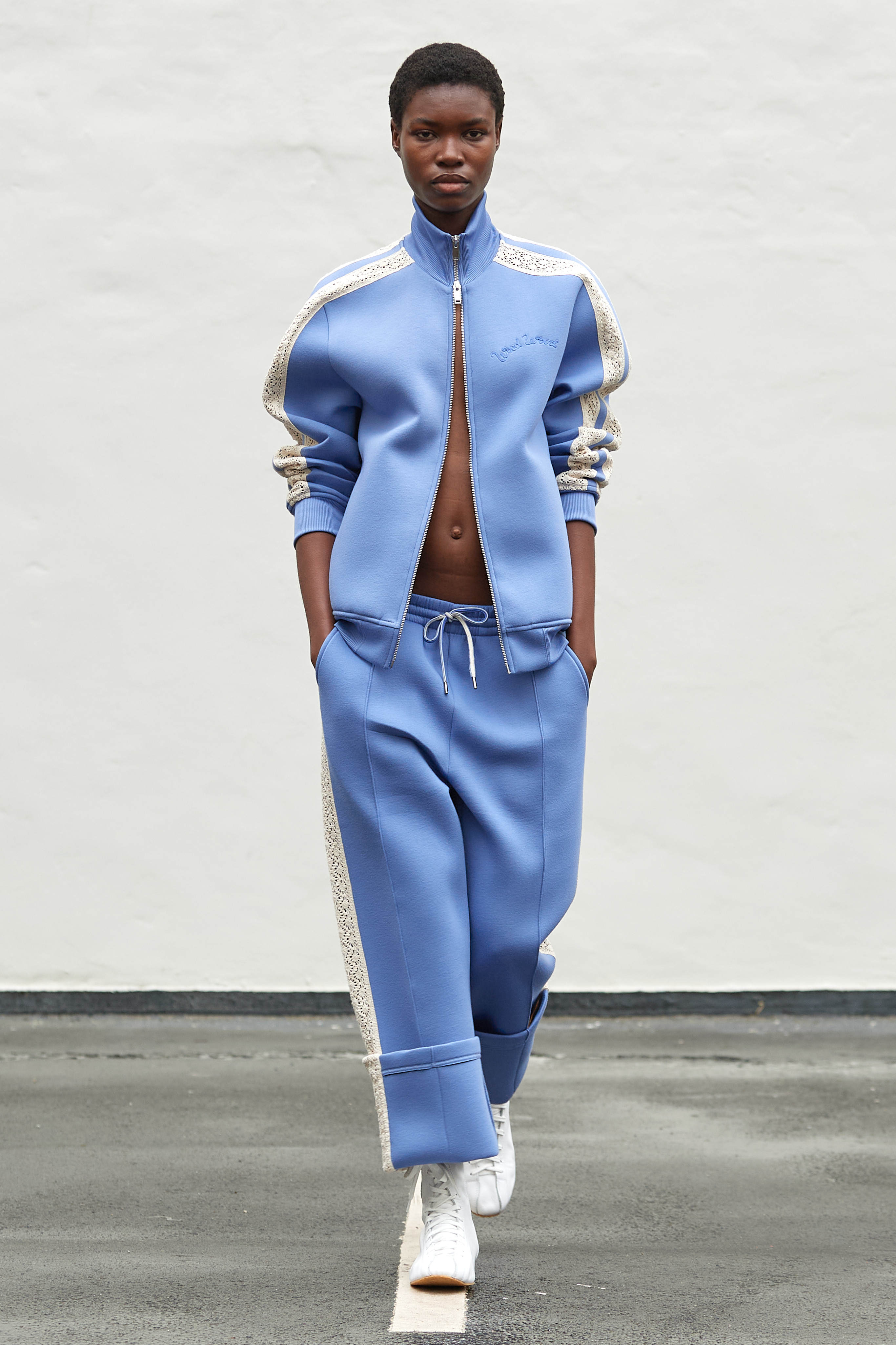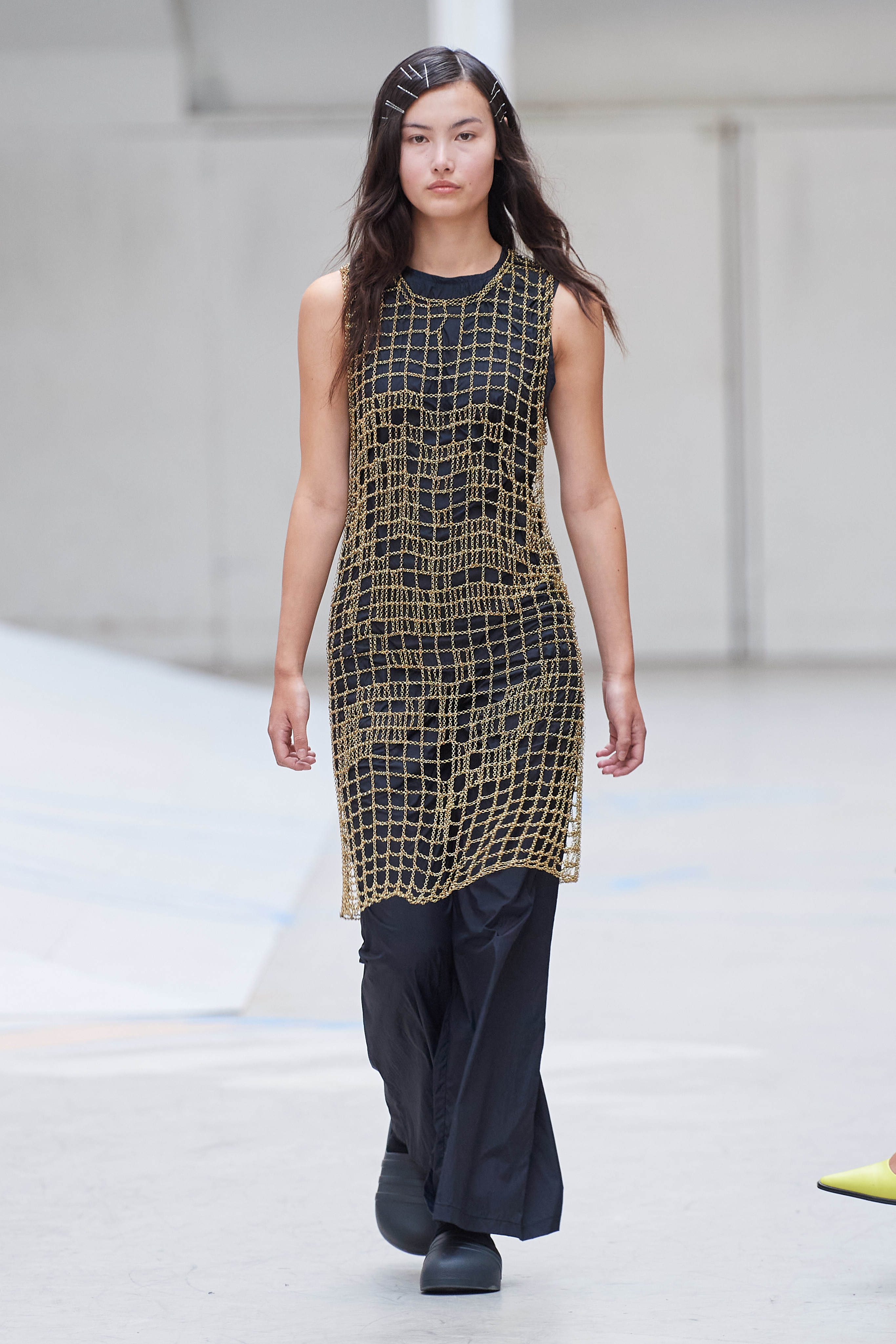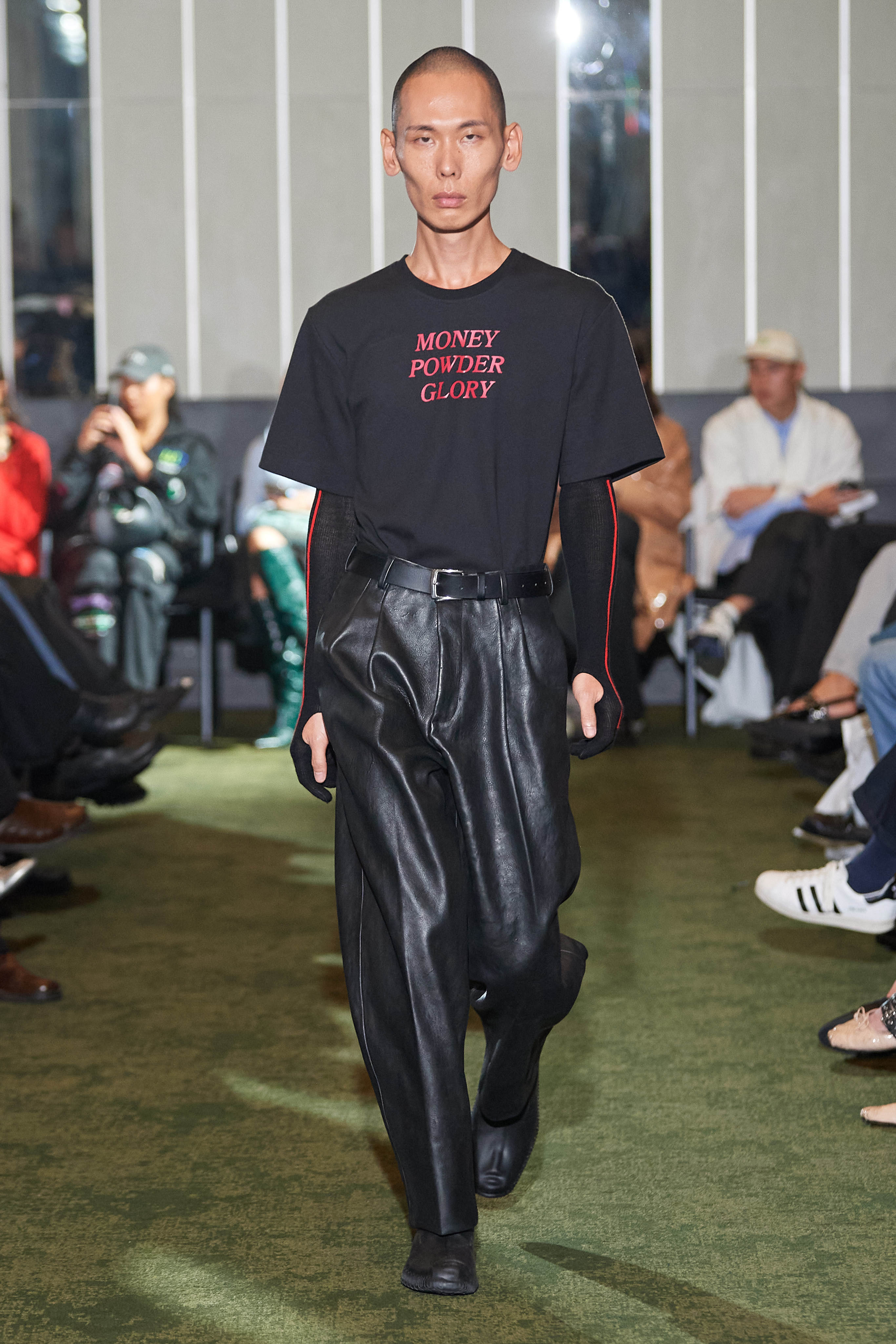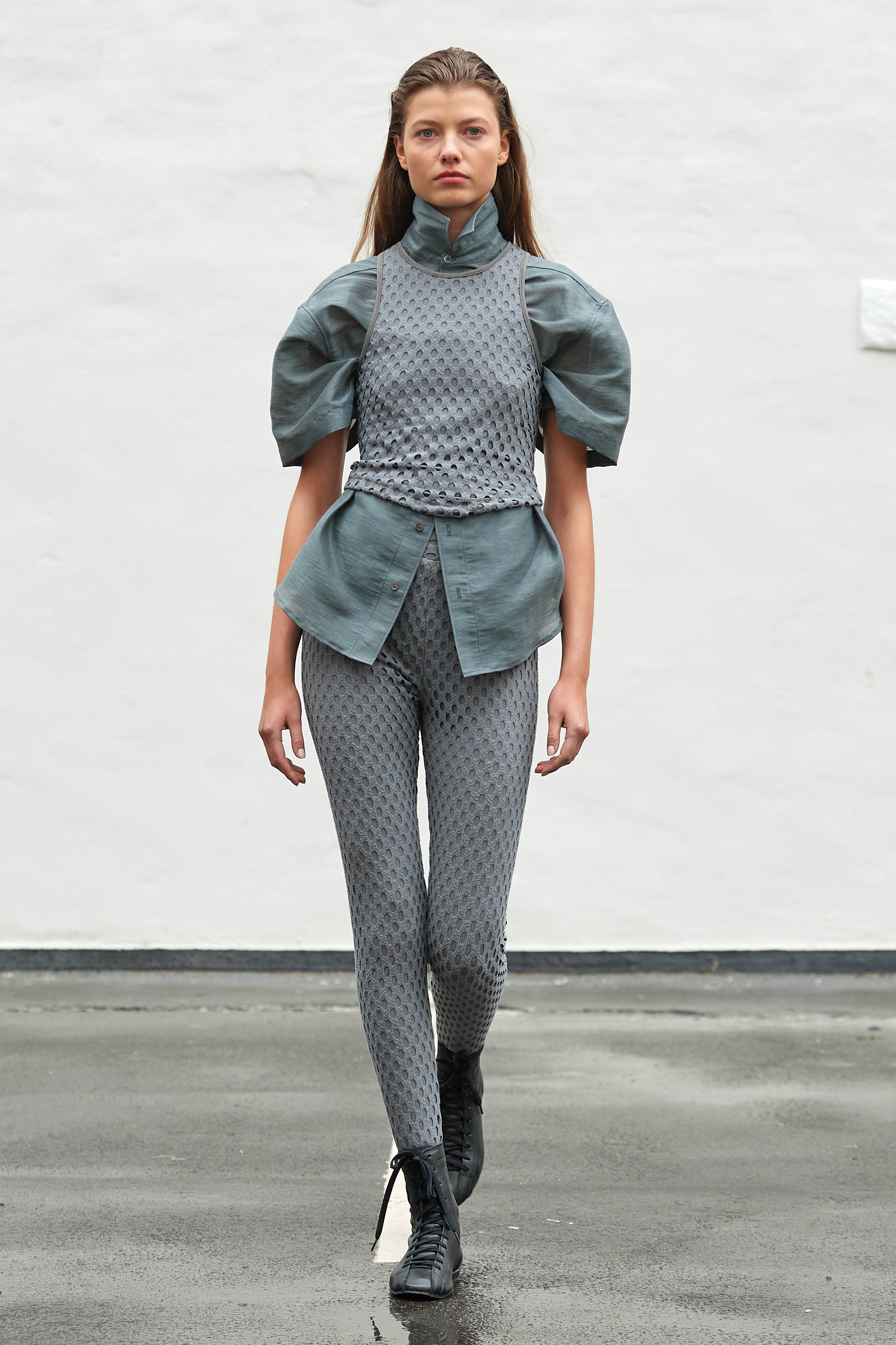 Коли Ервін Латімер відкрив свій показ-присвяту "Вовку з Волл-Стріт" у конференц-залі готелю Radisson Blu несподіваним драг-перформансом у ролі свого альтер его Анни Кондо, більшість глядачів не впізнала його (насправді це давнє хобі дизайнера, в Гельсінкі у нього є свій клуб драг). Але коли він вибіг на уклін у тому ж образі - таємниця була розкрита, а гості заусміхнулися великими посмішками. У його замальовках на тему офісного співробітника шукайте - деконструйовані чоловічі сорочки, треніки, трикотаж із червоними зиґзаґами-біржовими індексами і фантазійні чоботи-ботфорти, оздоблені костюмною тканиною.