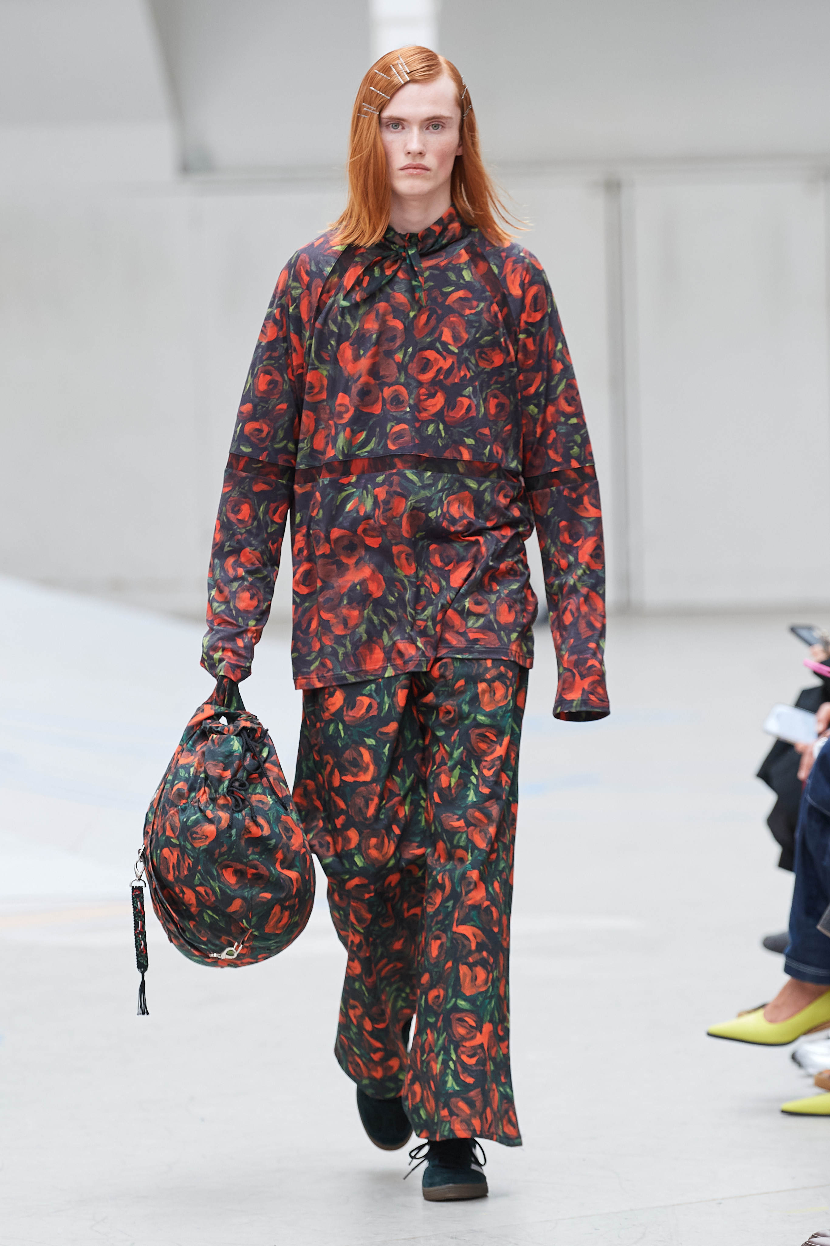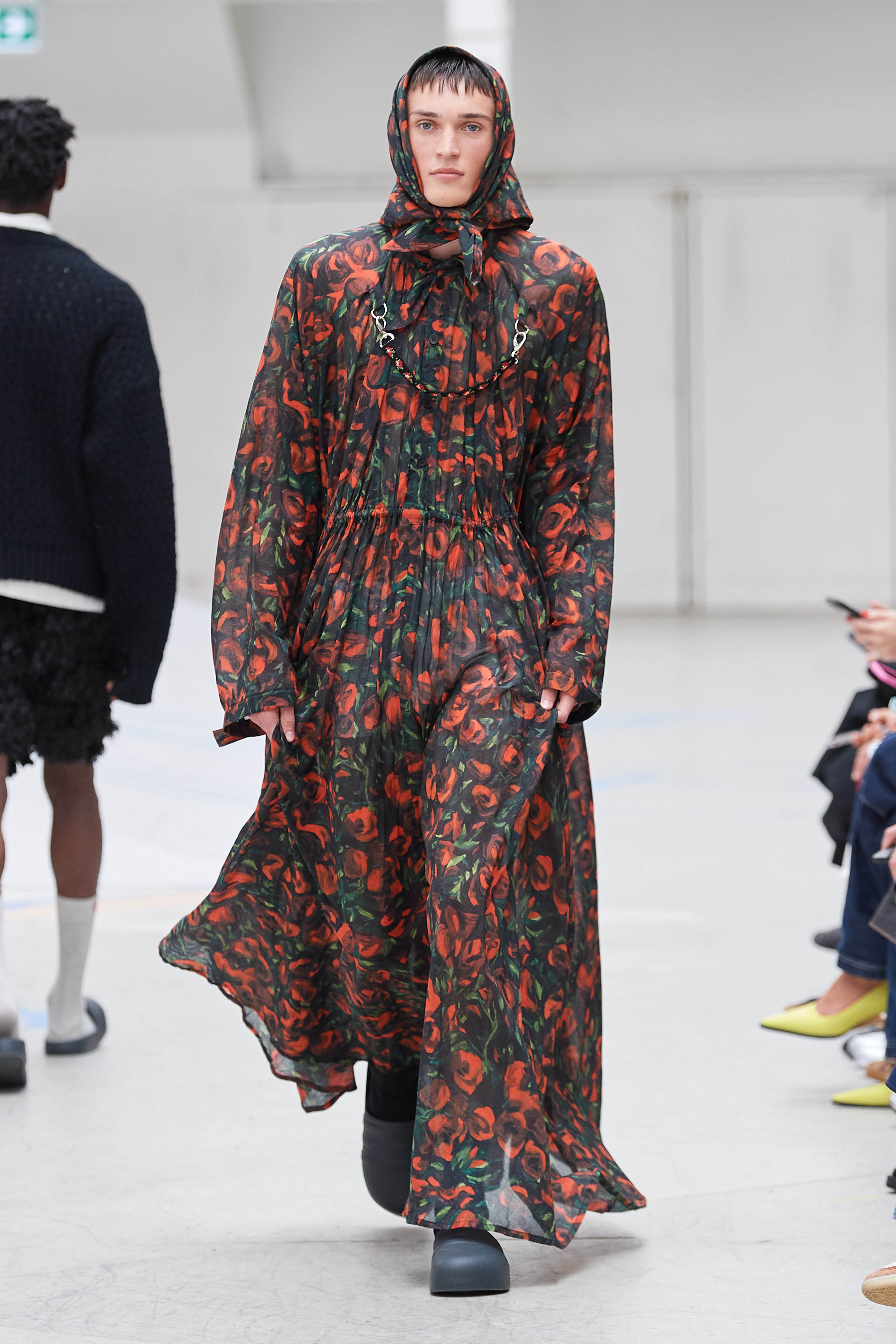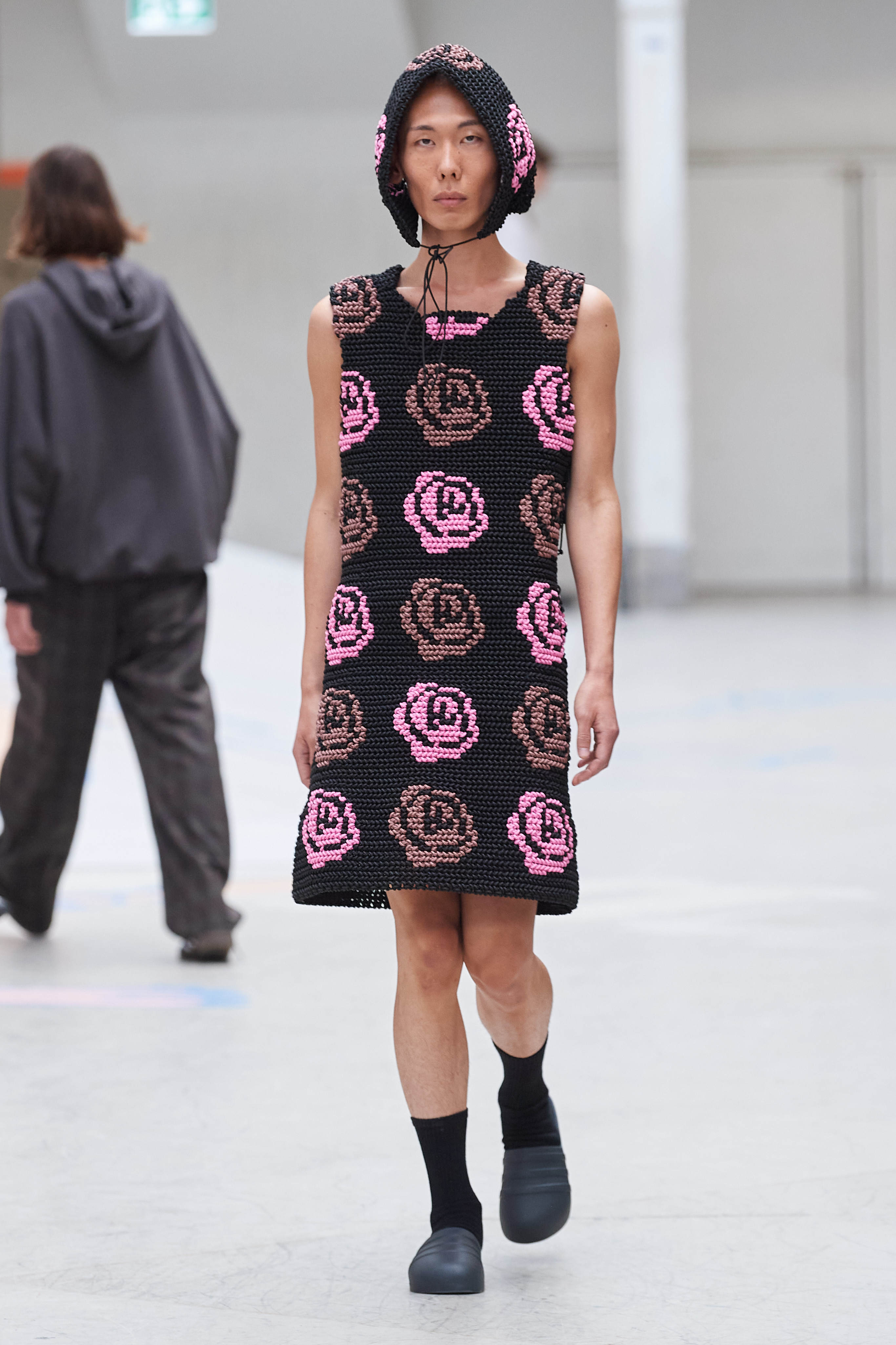 Випускник престижної фінської школи моди Aalto Рольф Екрот усім запам'ятався своїми яскравими презентаціями на фестивалі молодих дизайнерів у Єрі, а потім минулого січня на ярмарку чоловічої моди Pitti Uomo. Для свого найпершого шоу Рольфу захотілося покликати якомога більше гостей, тому він зібрав усіх у критому скейтпарку, де моделі крокували подіумом у комбінезонах, жакетах, кардиганах, сукнях і хустках з принтами і нашивками з дикими трояндами. Чому саме ця квітка? Все просто, саме кущові троянди ростуть біля будинку його мами, яка допомагала йому вишивати вручну кілька предметів з колекції.