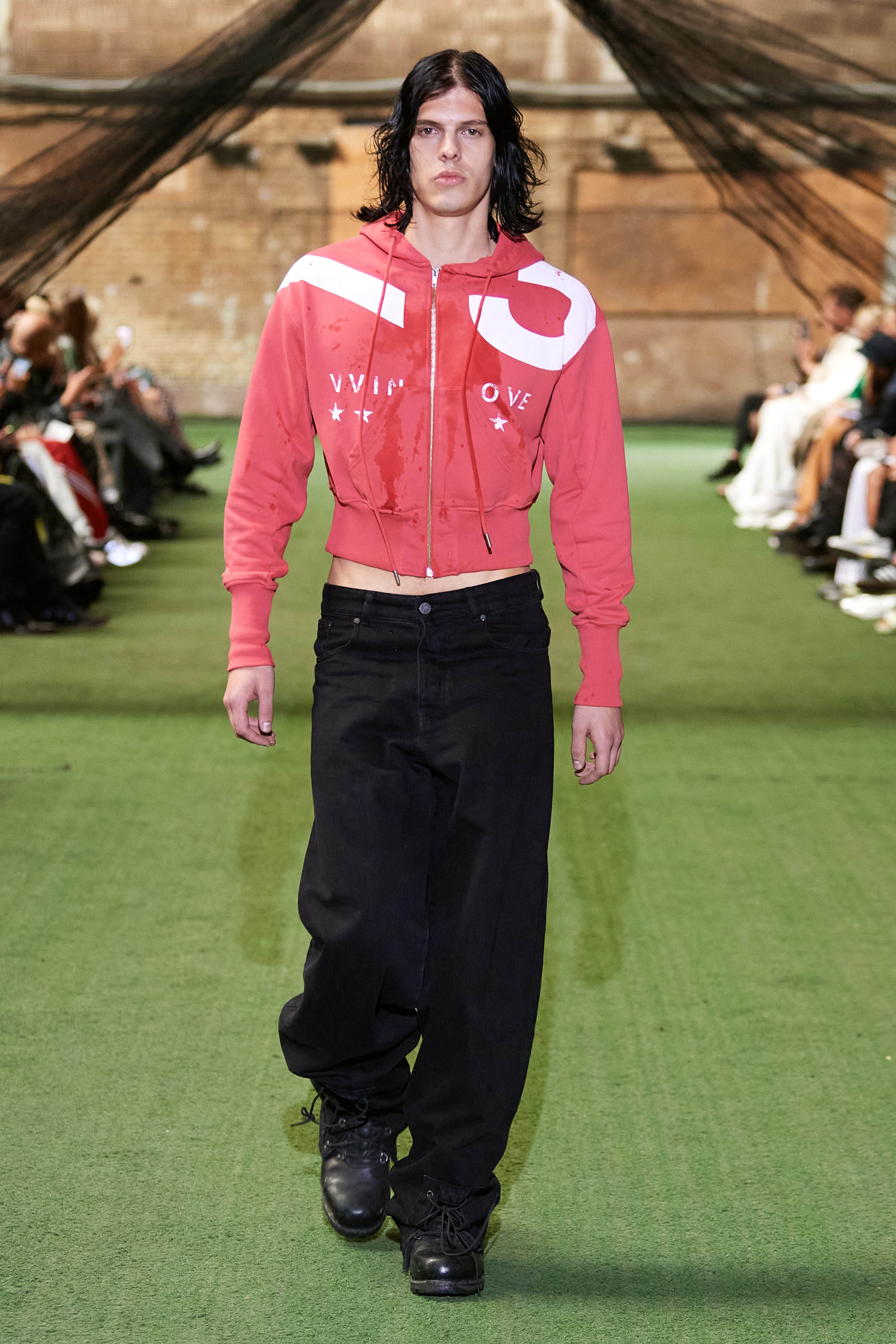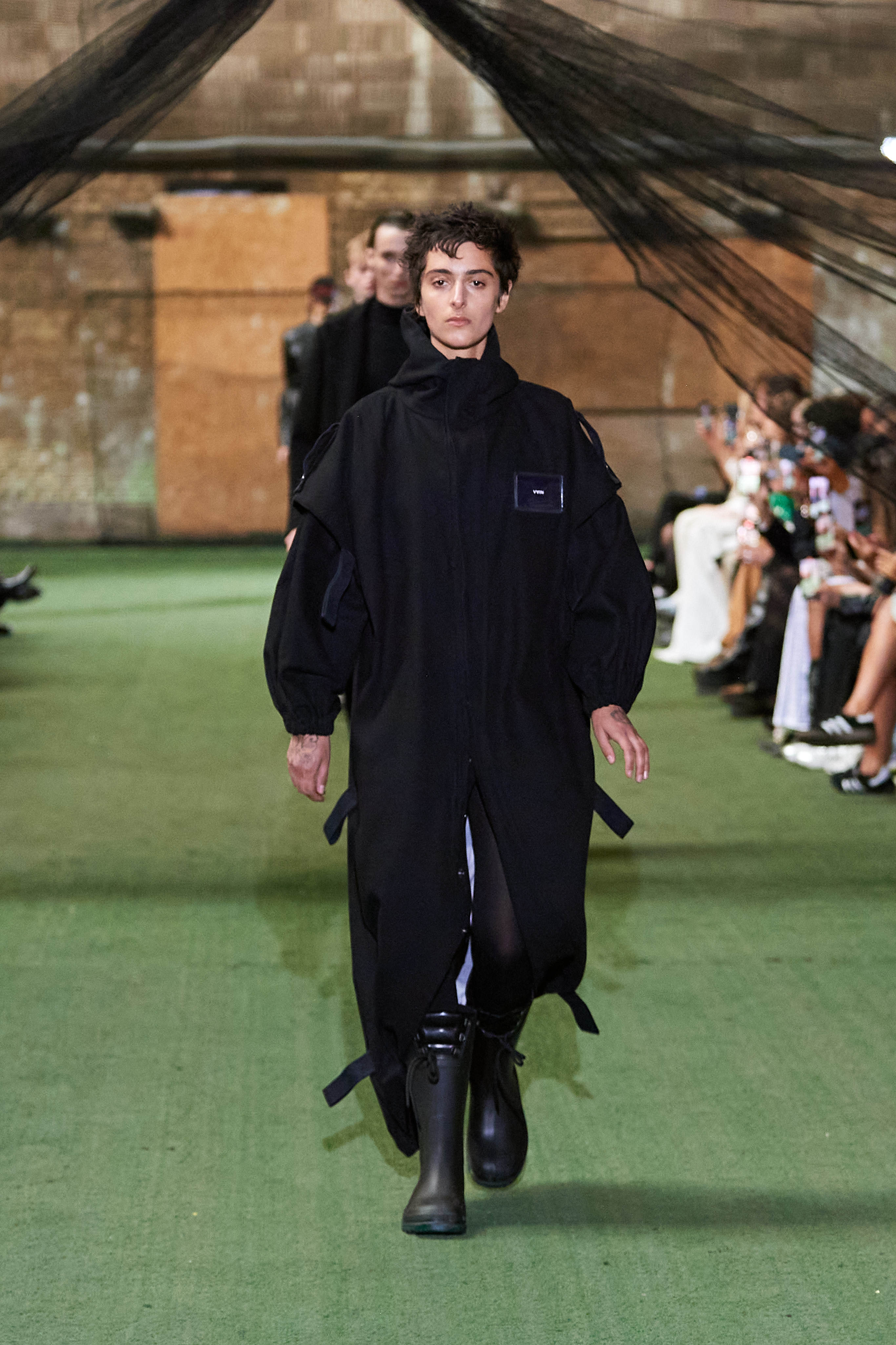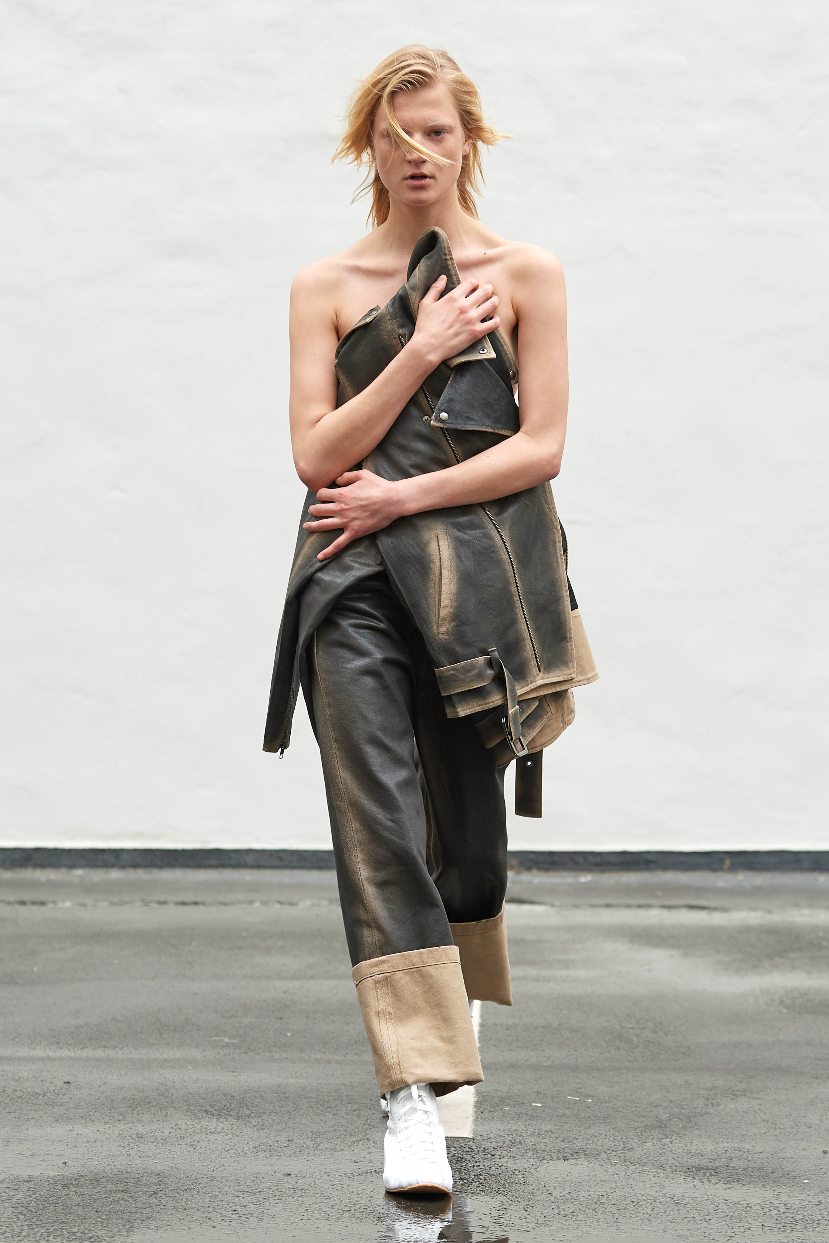 Фінський бренд Vain став діджитал сенсацією, коли в листопаді минулого року засновники марки Джимі Вейн і Роопе Рейнола випустили колекцію зі старих уніформ співробітників Макдональдса. У Копенгагені вони влаштували шоу на околиці міста на складі з контейнерами, де моделі ходили швидкою ходою в шкіряних куртках, плащах і штанах вільного крою.