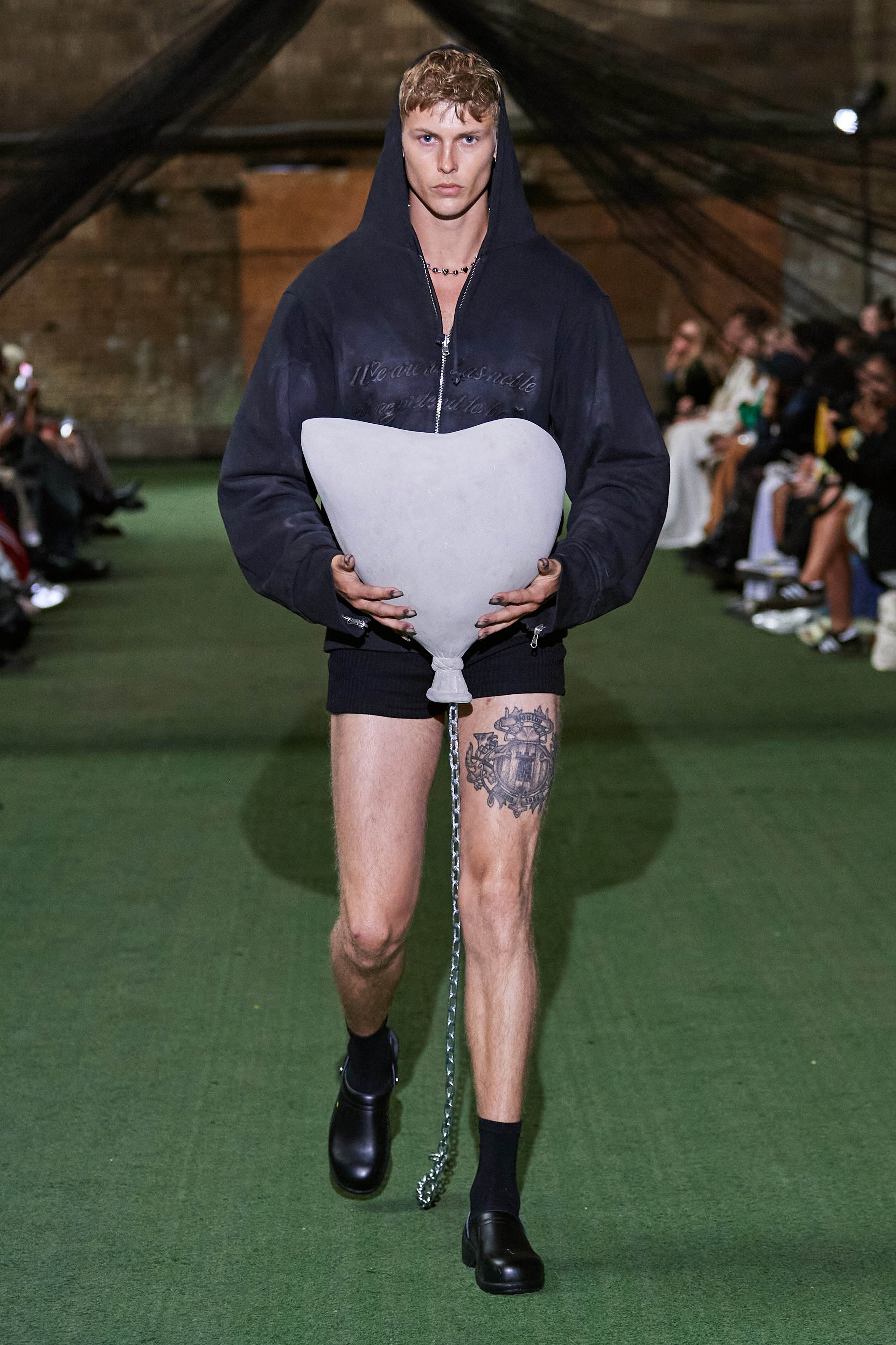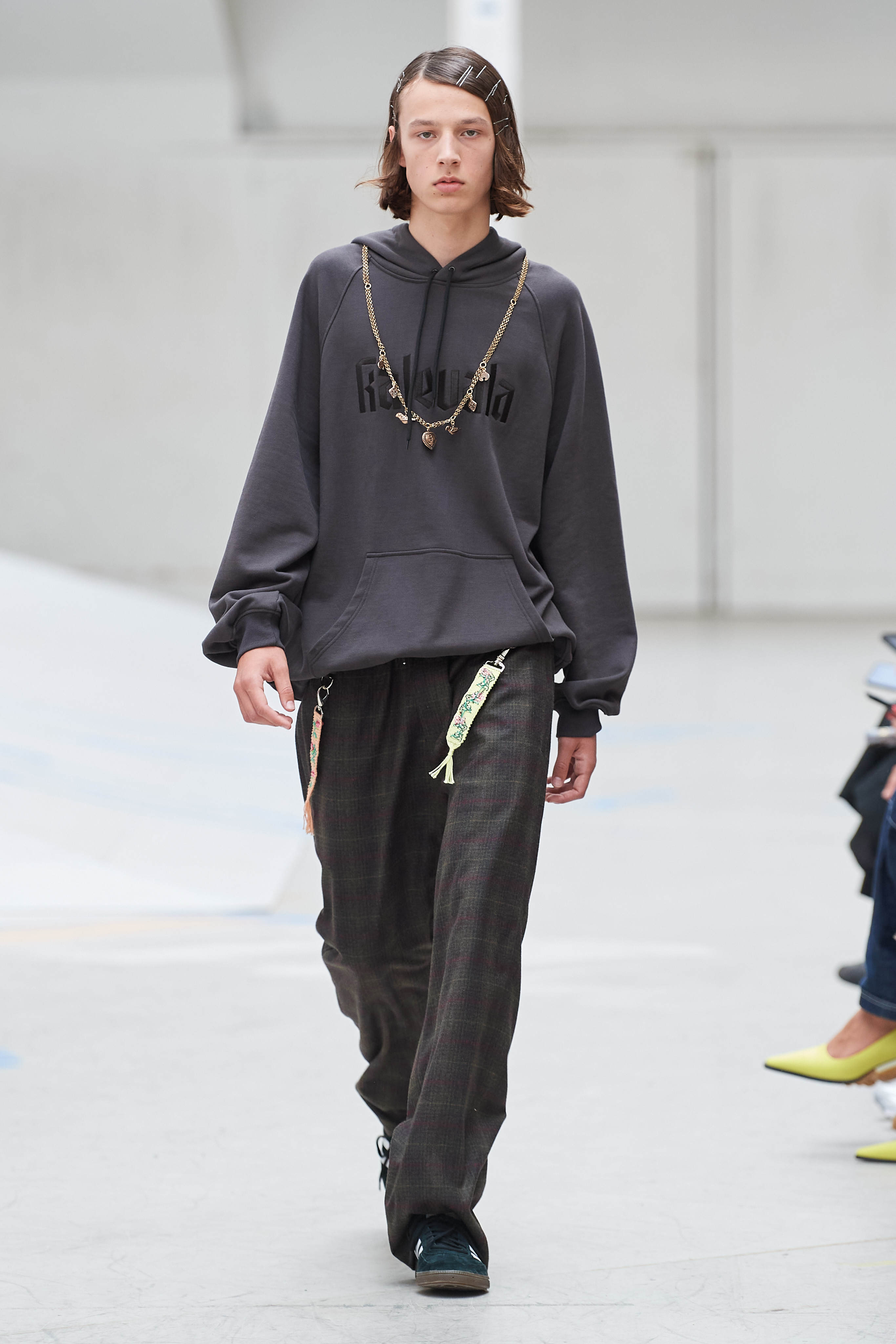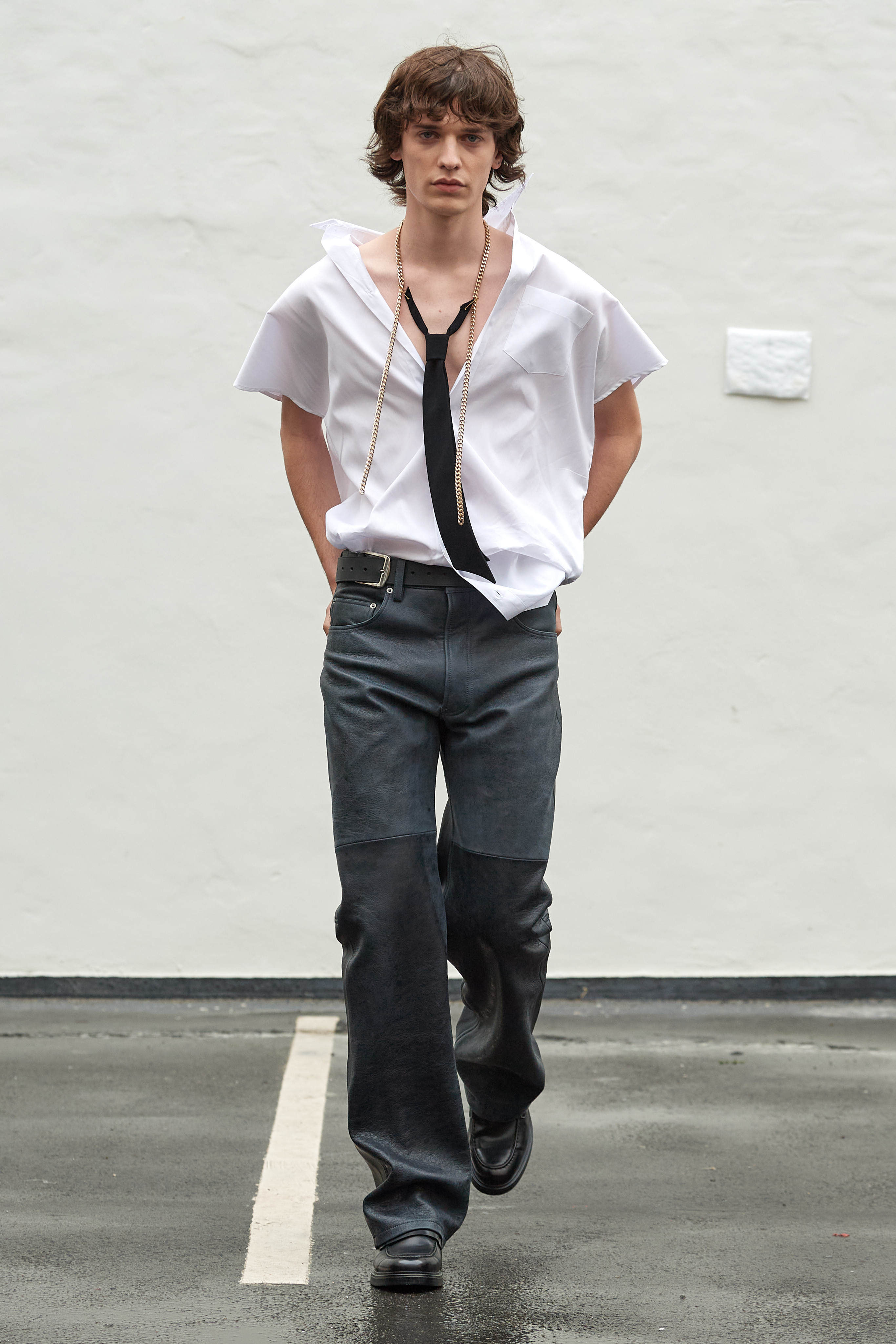 Фінський бренд Vain став діджитал сенсацією, коли в листопаді минулого року засновники марки Джимі Вейн і Роопе Рейнола випустили колекцію зі старих уніформ співробітників Макдональдса. У Копенгагені вони влаштували шоу на околиці міста на складі з контейнерами, де моделі ходили швидкою ходою в шкіряних куртках, плащах і штанах вільного крою.