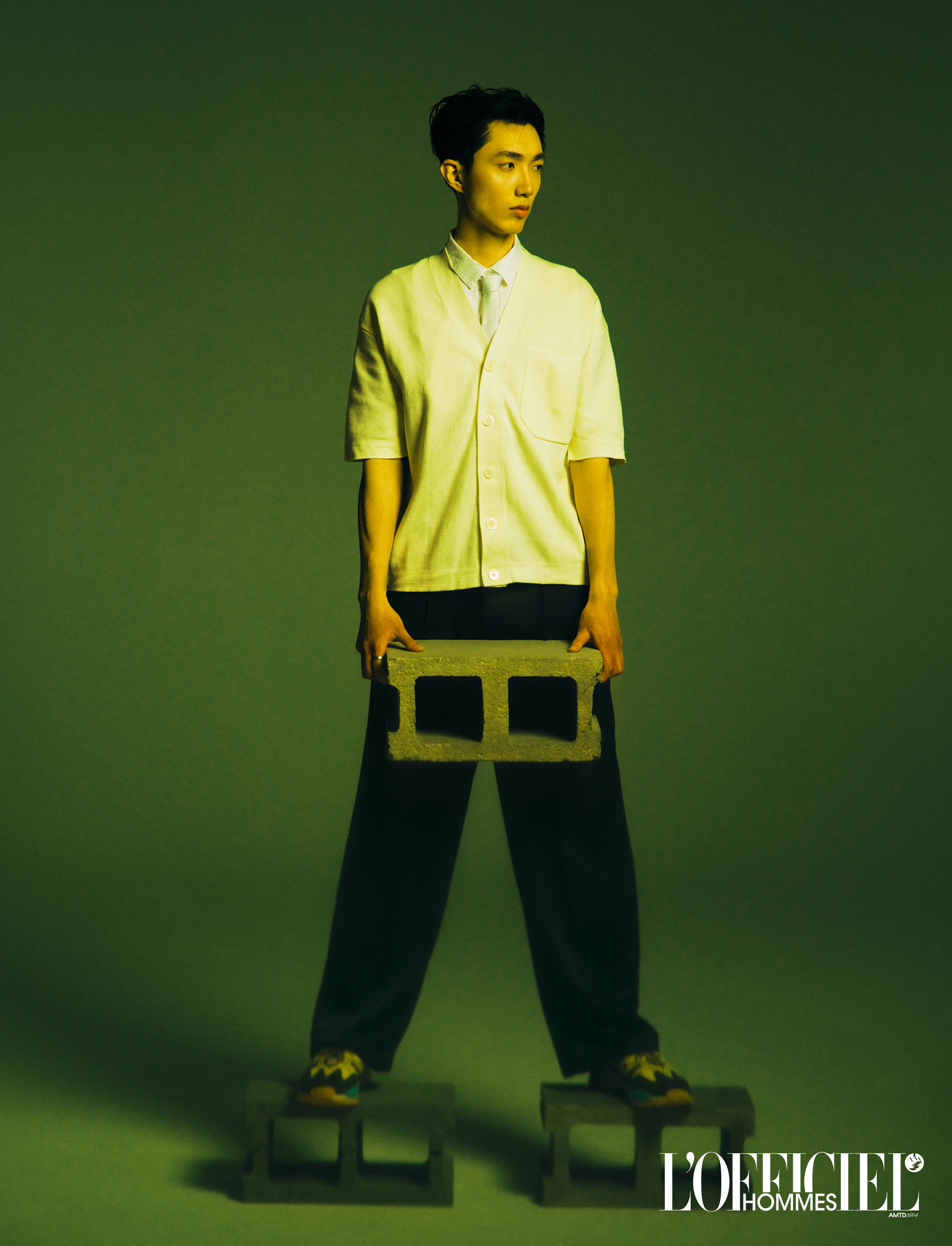 Сорочка Saint Laurent; кардиган New Bottega; краватка, штани Valentino; шкарпетки Rick Owens; взуття Adidas Originals; окуляри Bottega Veneta