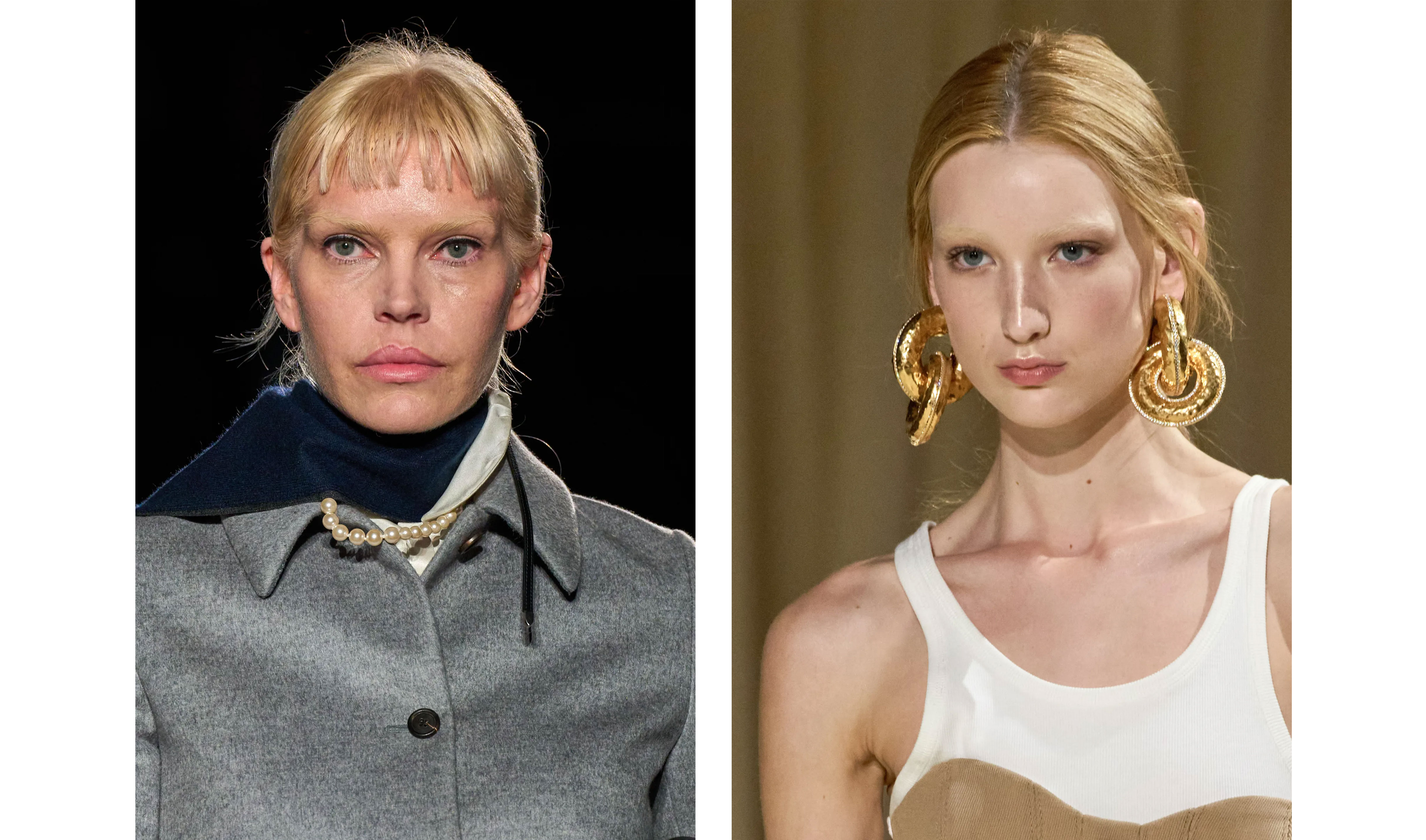 Інша тенденція з 90-х — висвітлені брови — не втрачає своєї популярності уже кілька сезонів, пропонуючи авангардний і сміливий ефект. Від Леді Гаги, Джулії Фокс до Кайлі Дженнер — протягом 2024-го знаменитості також експериментували з б’юті-трендом, і модні покази цього фешн-місяця не стали винятком. На шоу Schiaparelli осінь-зима 2024/2025 висвітлені брови з’являлися в комбінації з природним макіяжем, заразом у Miu Miu цей образ поєднувався з макіяжем очей, що включав невеликі тонкі стрілки й сріблясті тіні.