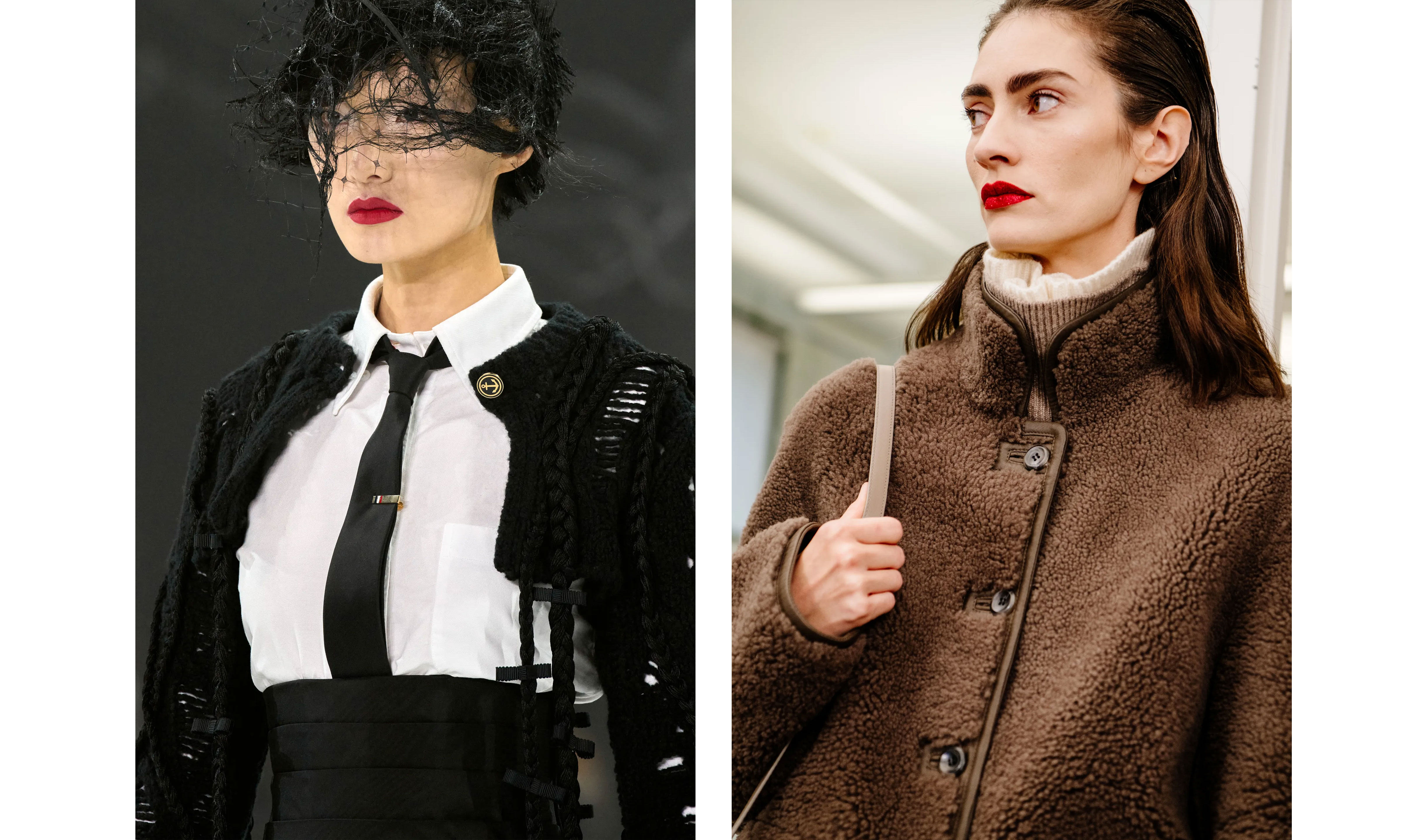 Попри універсальність нюдових відтінків, позачасова любов до червоних губ залишається з нами в сезоні осінь-зима 2024/2025. Сексуальні та яскраві, різноманітні відтінки червоного прикрашали покази Khaite, Carolina Herrera та Fforme. На готичному й фентезійному шоу Thom Brown б’юті-образ моделей складався з червоних губ, пишних і помітних вій та сріблястих тіней для повік, а в Altazurra, використовуючи цей колір, зробили ставку на мінімалізм на інших частинах обличчя.