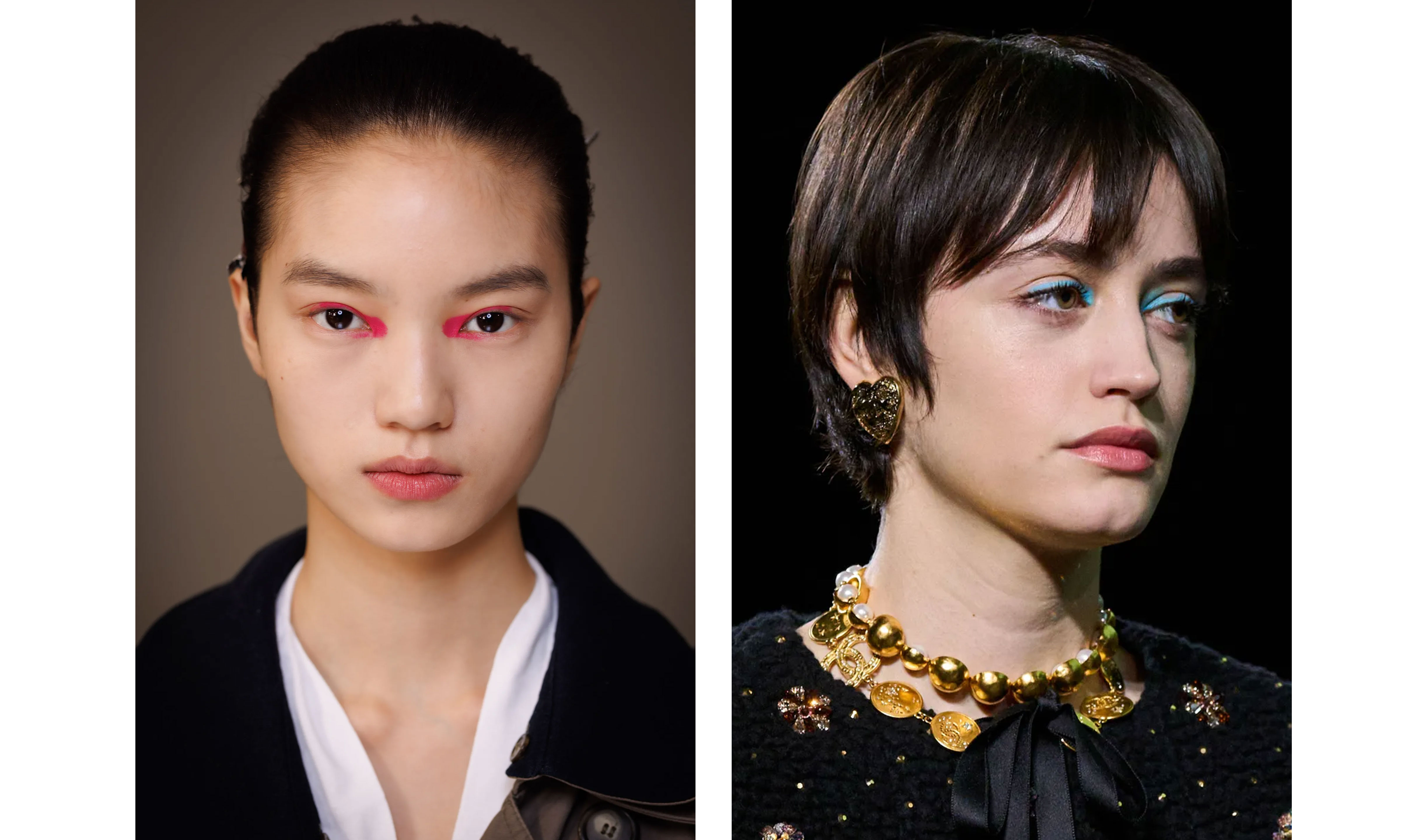 Якщо ви не готові до занадто сміливих експериментів, але прагнете яскравості, додайте дещицю барвистості на ваші повіки. Б’юті-образи із такою стилізацією набули популярності упродовж фешн-місяця, зокрема на показах Collina Strada, Etro й Connor Ives. Представили свої виточені опції також флагмани модної індустрії: візажисти Dior додали в куточки очей яскраво-рожевий відтінок із виразною формою, а в Chanel електричний бірюзовий прикрашав повіки.