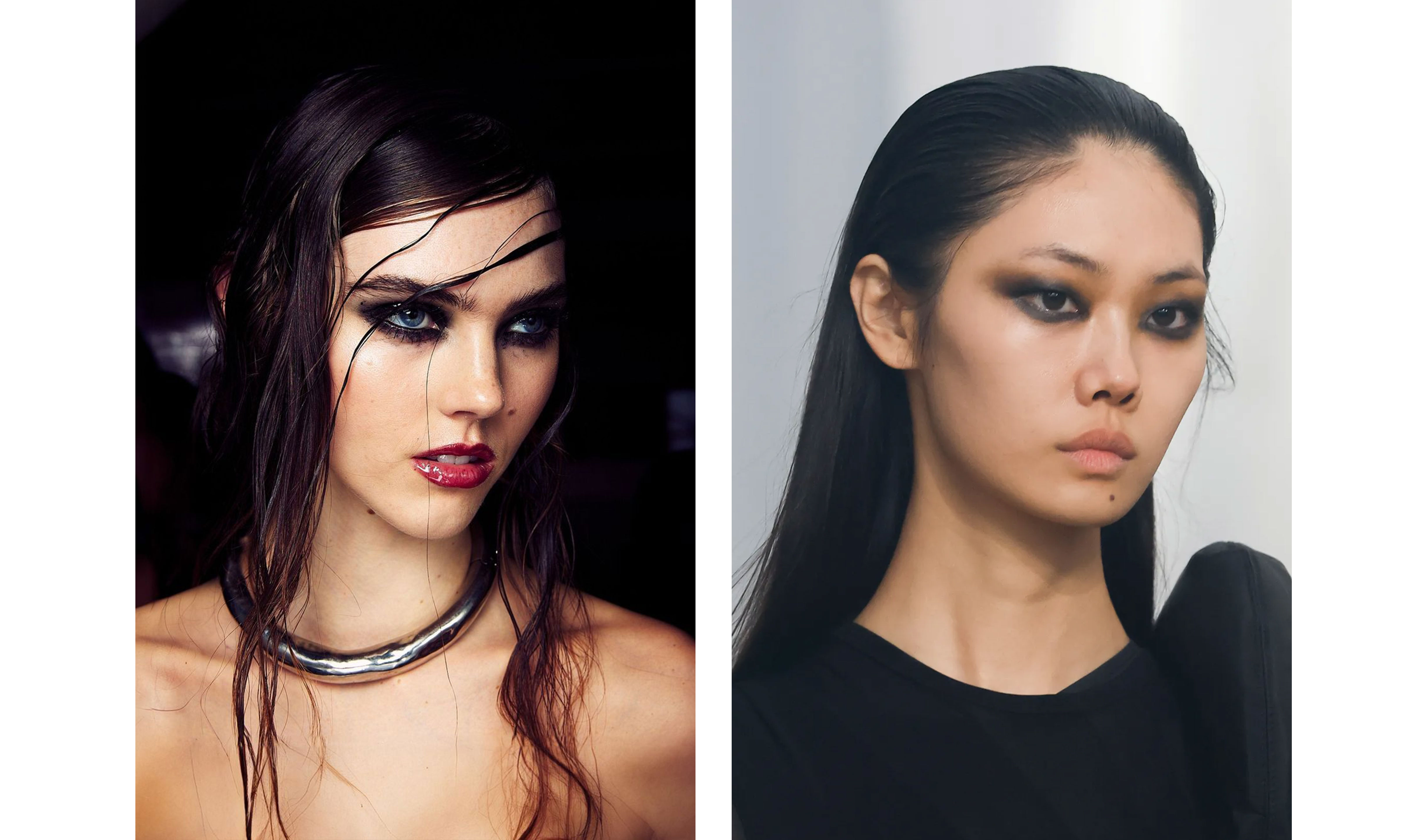Циклічність тенденцій призвела до ренесансу макіяжу в стилі гранж, популярного в 80-х і 90-х, як у соціальних мережах, серед знаменитостей, так і на подіумах. Розмазані чорні тіні або олівець на повіках, сяйливі нюдові або яскраві губи — ось сучасна інтерпретація, до якої вдавалися на показах осінь-зима 2024/2025 бренди Jason Wu, Area та Altuzarra. У Prabal Gurung цей б’юті-тренд втілився у хаотичному макіяжі очей, що був доповнений пишно зачесаними бровами та вишневим відтінком на губах, а в Helmut Lang представили версією з коричнево-чорними smoky eyes.